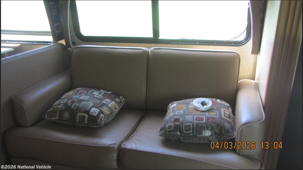Step inside and you?re greeted by a warm, residential-style interior featuring rich cabinetry and a smart open floorplan. Up front, there?s an older TV mounted in the cab-over area, and a second TV in the rear bedroom, providing entertainment wherever you settle in.
