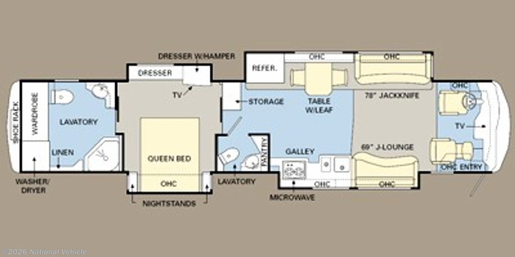 Powered by a 425HP Cummins diesel engine on the semi-monocoque Roadmaster chassis with tag axle, paired with an Allison 3000 6-speed transmission, this coach delivers a smooth, stable ride with excellent handling thanks to air suspension and air brakes. It?s also pre-DEF, a big plus for many buyers. The Onan 10KW diesel generator provides more than enough power for all systems.