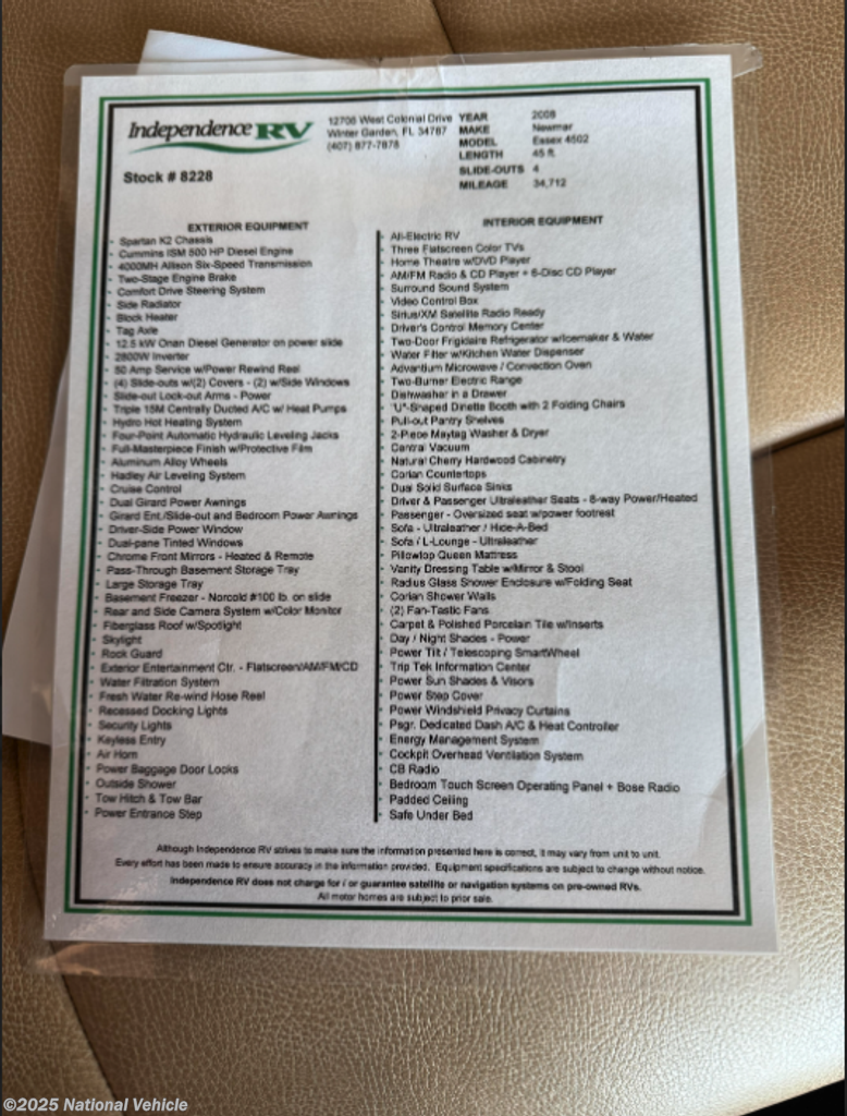 Request More Info on this 2008 Newmar Essex 4502 Offered for sale by National Vehicle