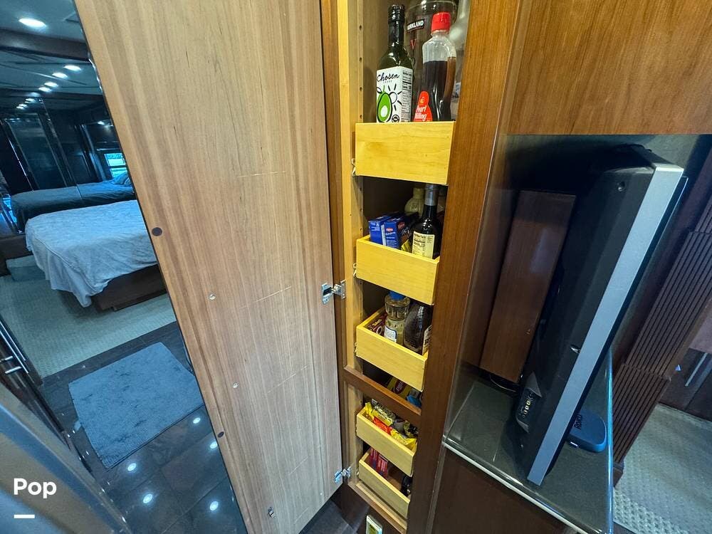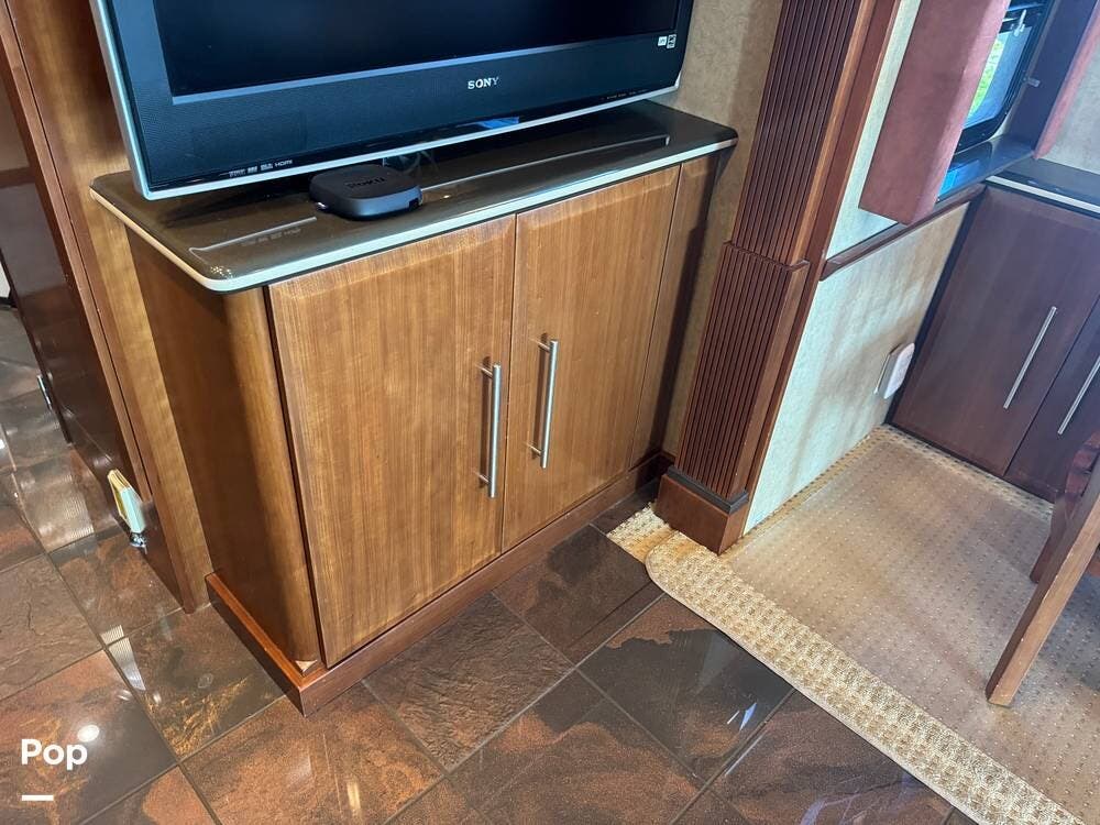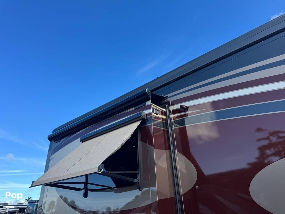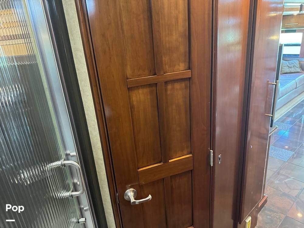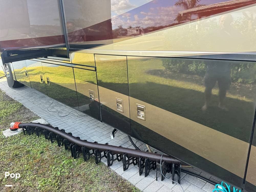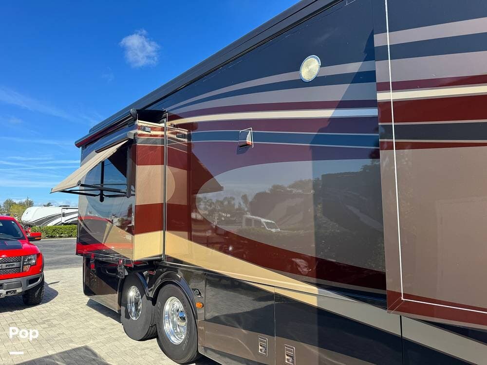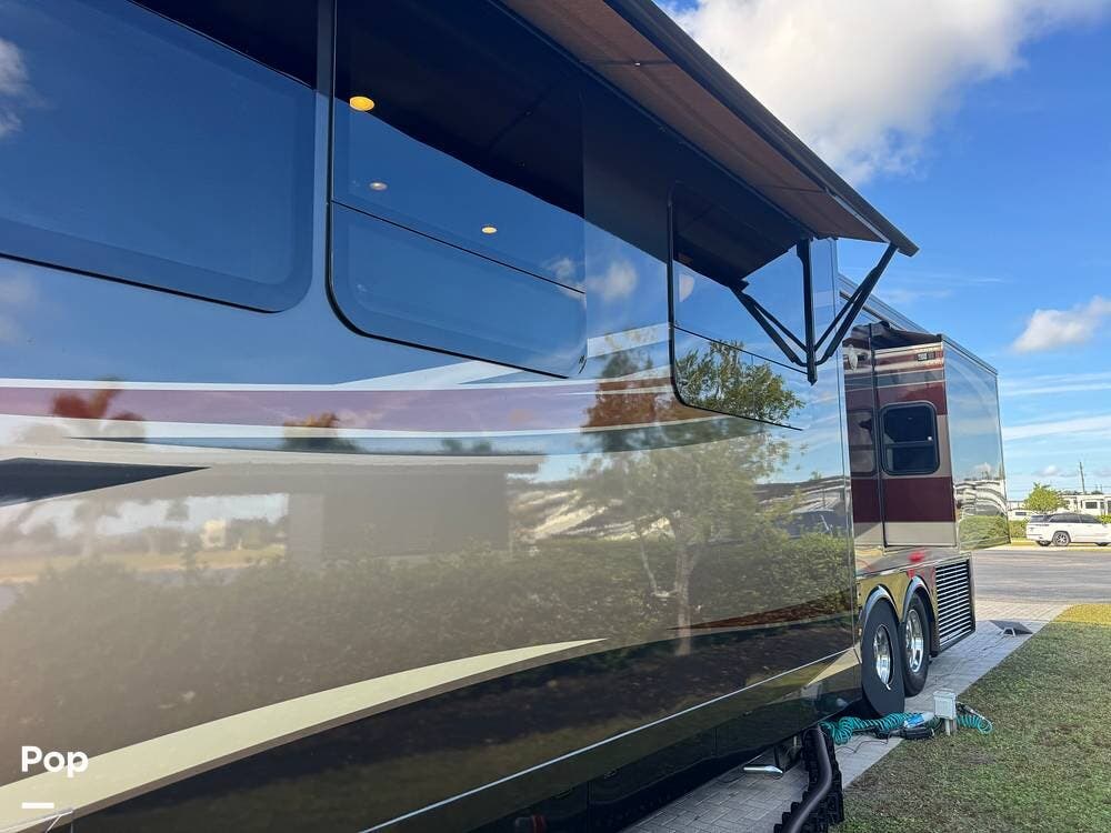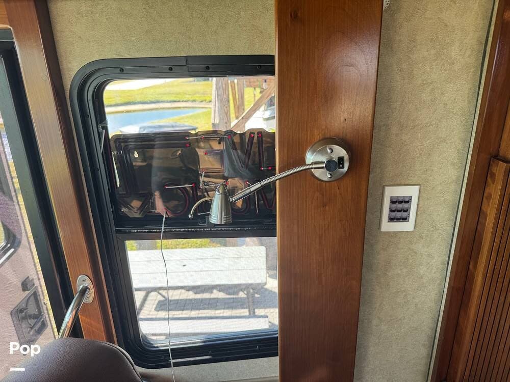 Step inside and you're welcomed by a refined residential interior finished with solid hardwood cabinetry, handcrafted details, and premium materials throughout. The spacious quad-slide floorplan creates a wide-open living area perfect for entertaining or simply stretching out and enjoying the journey. Plush seating, elegant dcor, and expansive windows provide a bright, inviting atmosphere that feels more like a luxury condo than a motorhome.