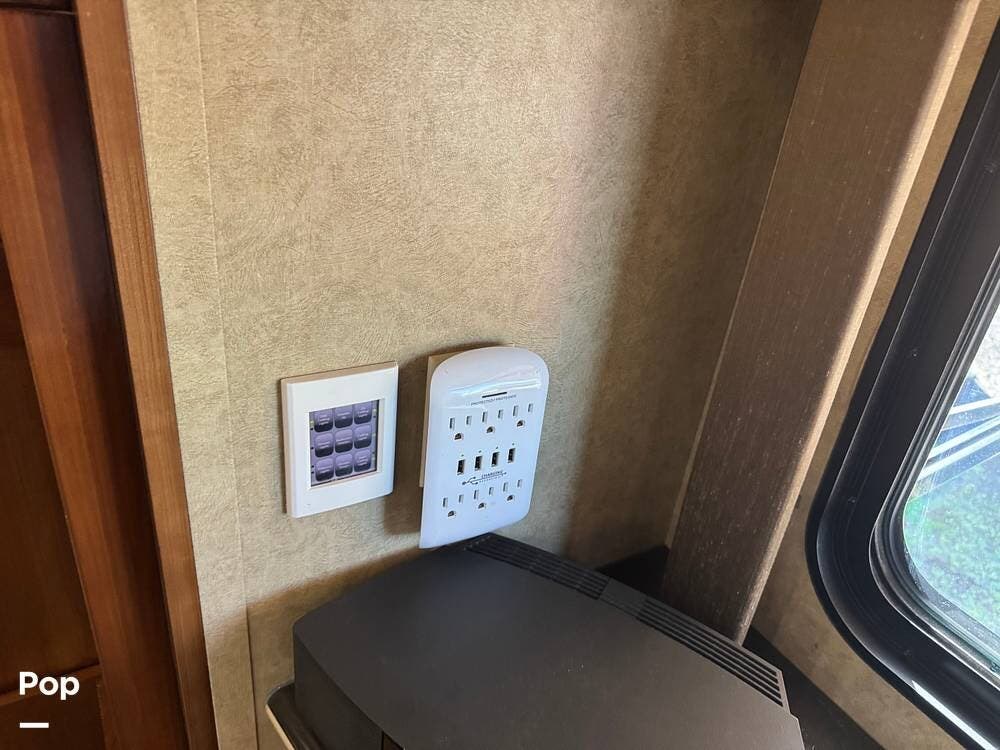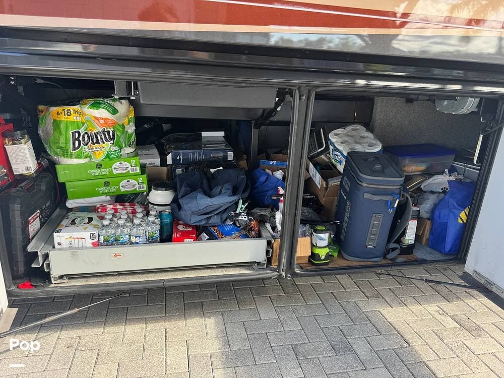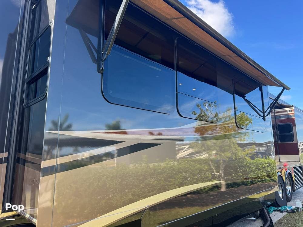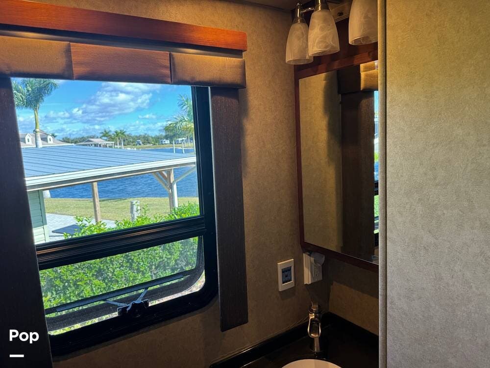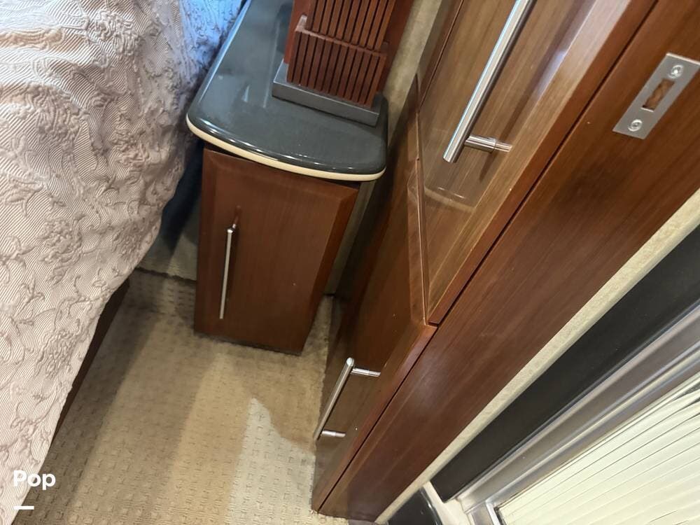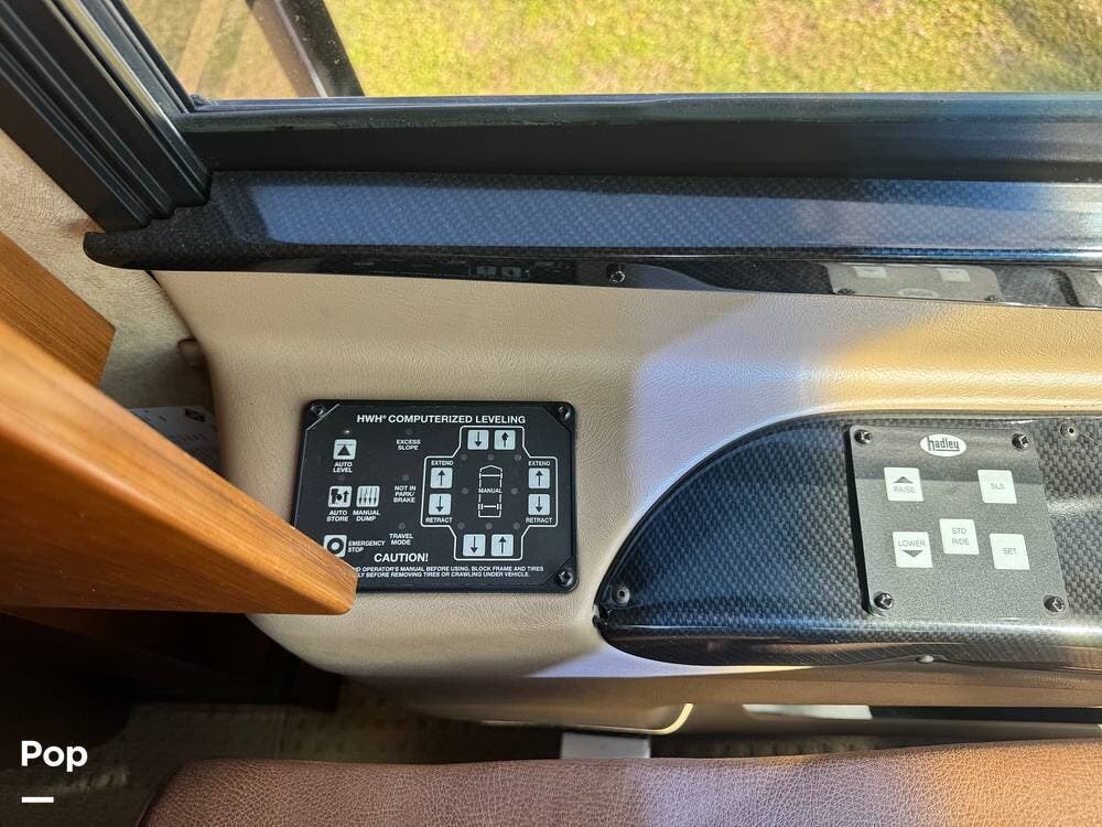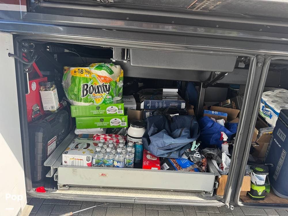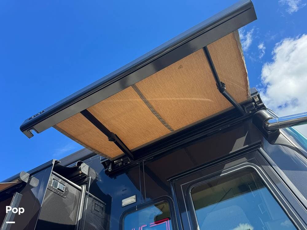 Step inside and you're welcomed by a refined residential interior finished with solid hardwood cabinetry, handcrafted details, and premium materials throughout. The spacious quad-slide floorplan creates a wide-open living area perfect for entertaining or simply stretching out and enjoying the journey. Plush seating, elegant dcor, and expansive windows provide a bright, inviting atmosphere that feels more like a luxury condo than a motorhome.