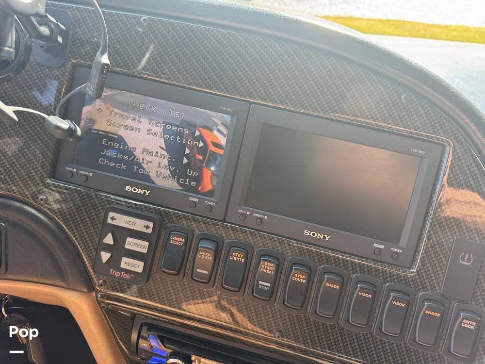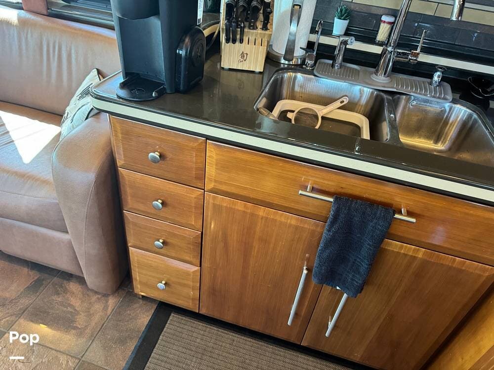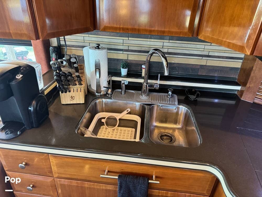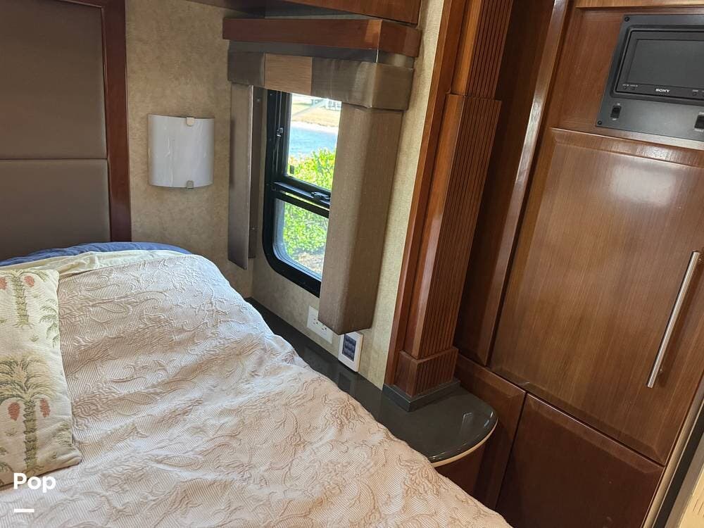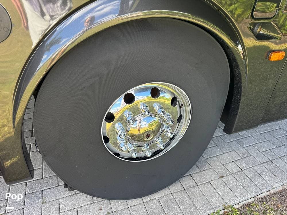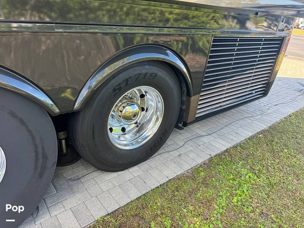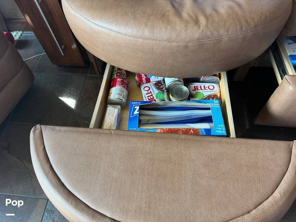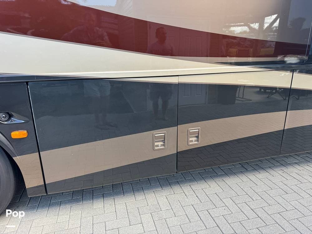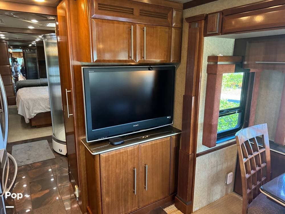 Step inside and you're welcomed by a refined residential interior finished with solid hardwood cabinetry, handcrafted details, and premium materials throughout. The spacious quad-slide floorplan creates a wide-open living area perfect for entertaining or simply stretching out and enjoying the journey. Plush seating, elegant dcor, and expansive windows provide a bright, inviting atmosphere that feels more like a luxury condo than a motorhome.