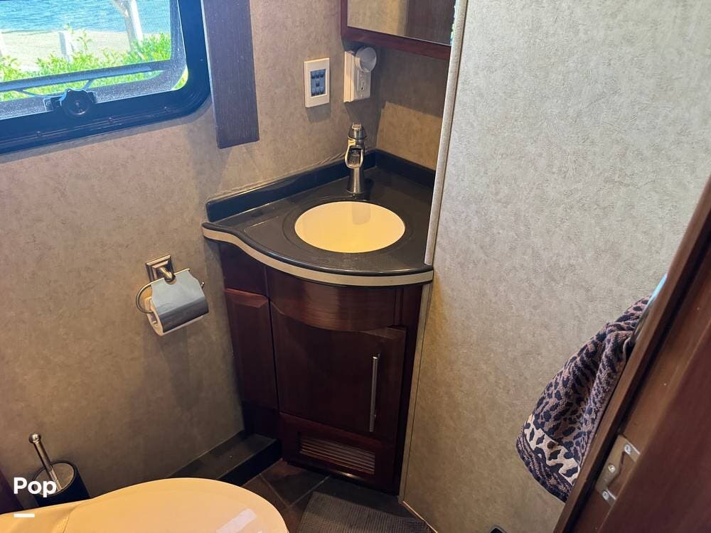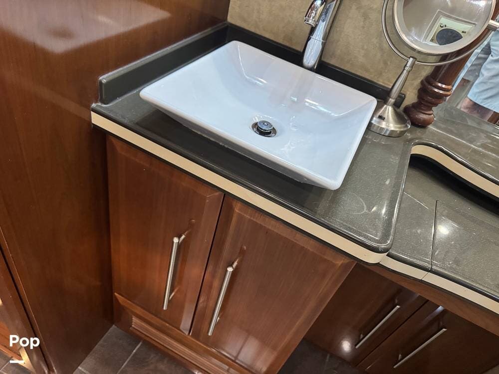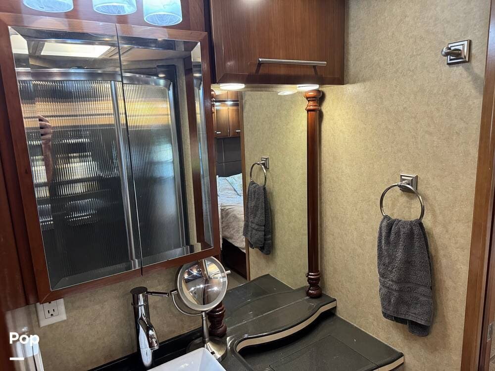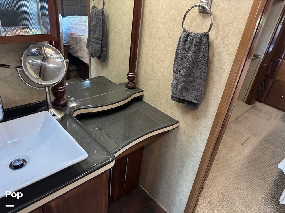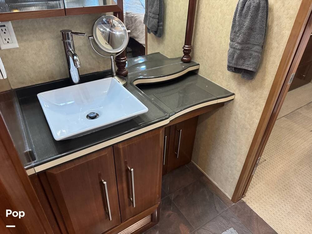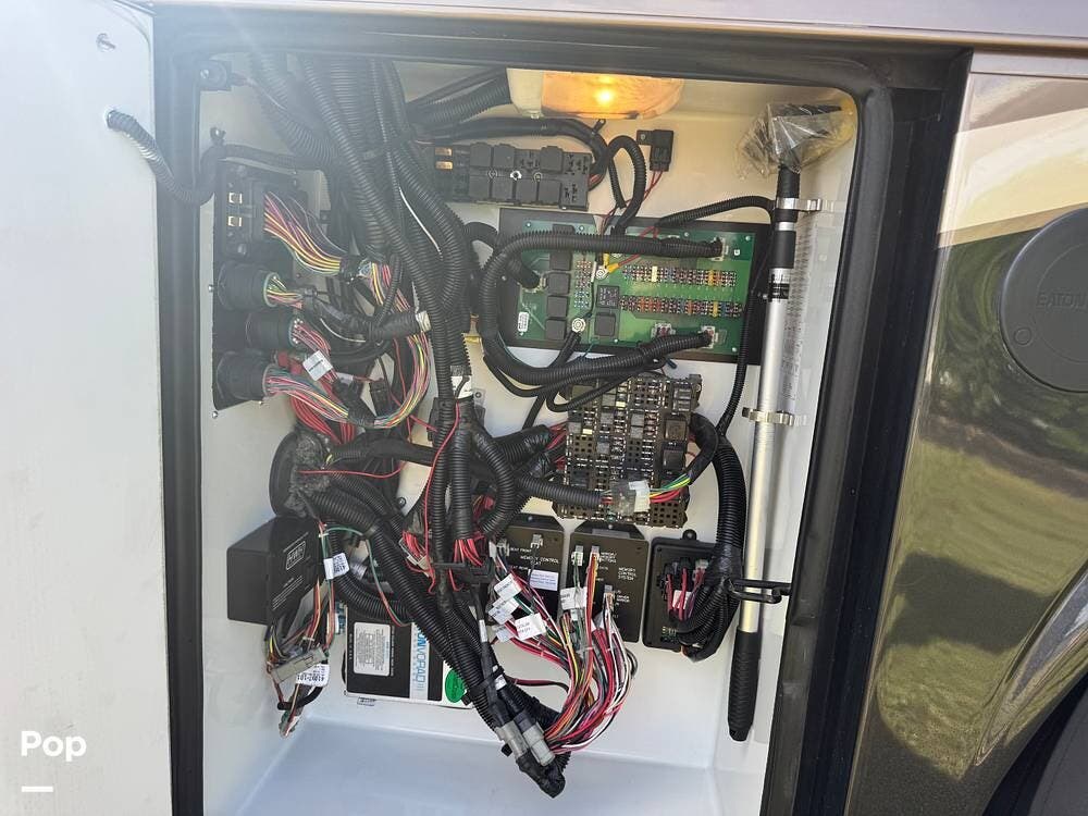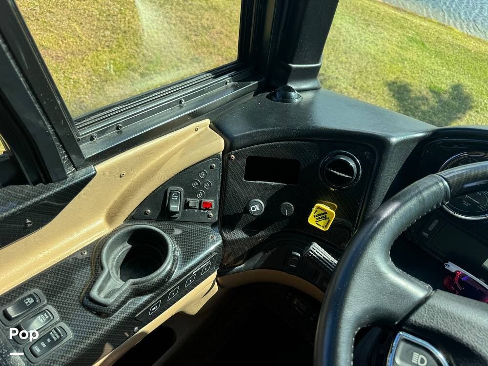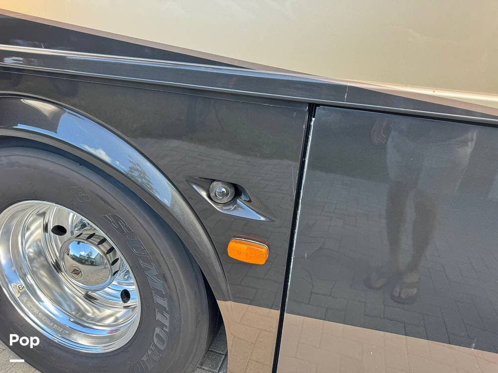 Step inside and you're welcomed by a refined residential interior finished with solid hardwood cabinetry, handcrafted details, and premium materials throughout. The spacious quad-slide floorplan creates a wide-open living area perfect for entertaining or simply stretching out and enjoying the journey. Plush seating, elegant dcor, and expansive windows provide a bright, inviting atmosphere that feels more like a luxury condo than a motorhome.