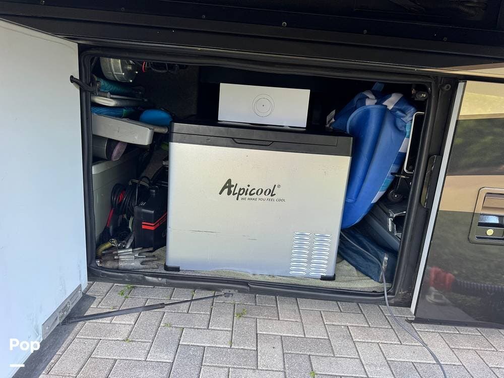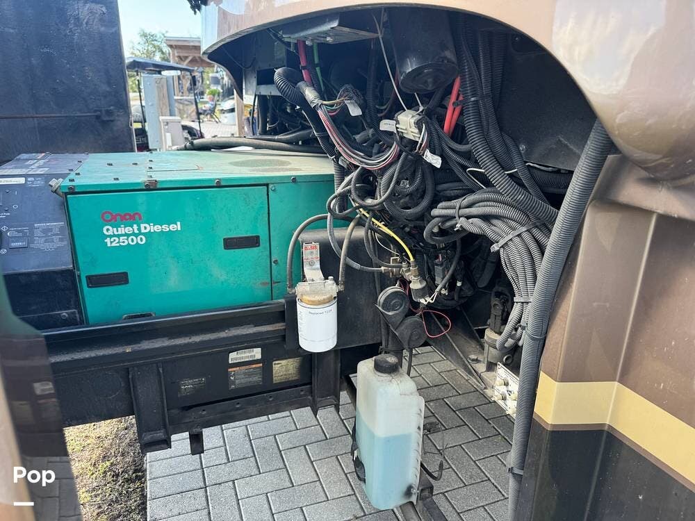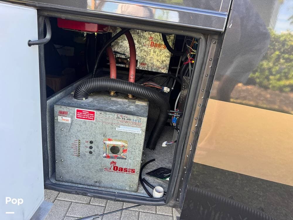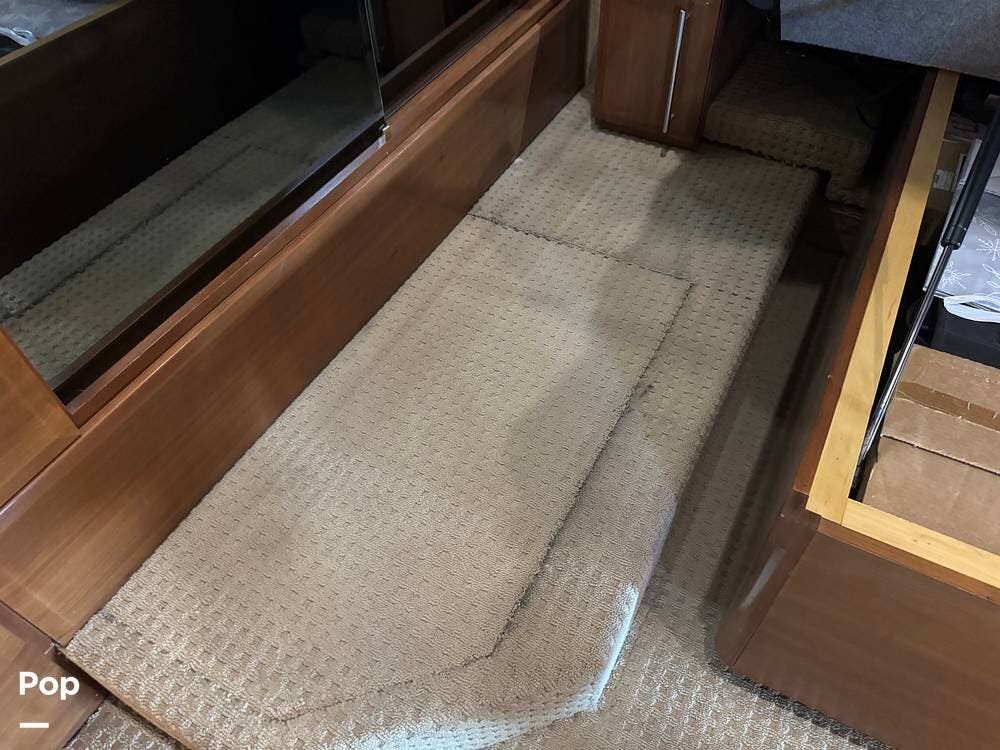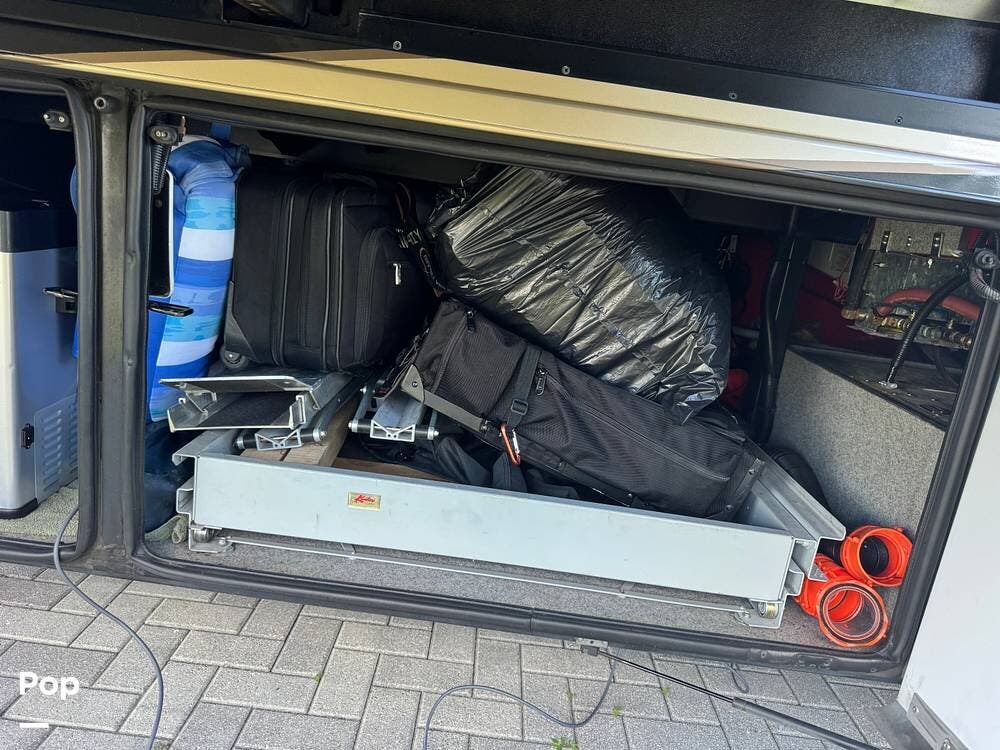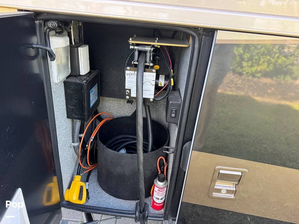 Technology and convenience were ahead of their time in the King Aire. Features include Aqua-Hot hydronic heating, multi-zone climate control, power shades, integrated entertainment systems, and robust electrical systems designed to support extended off-grid stays. Outside, the basement storage is expansive and well-organized, easily accommodating golf clubs, patio furniture, tools, and everything needed for long adventures.