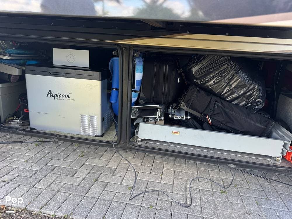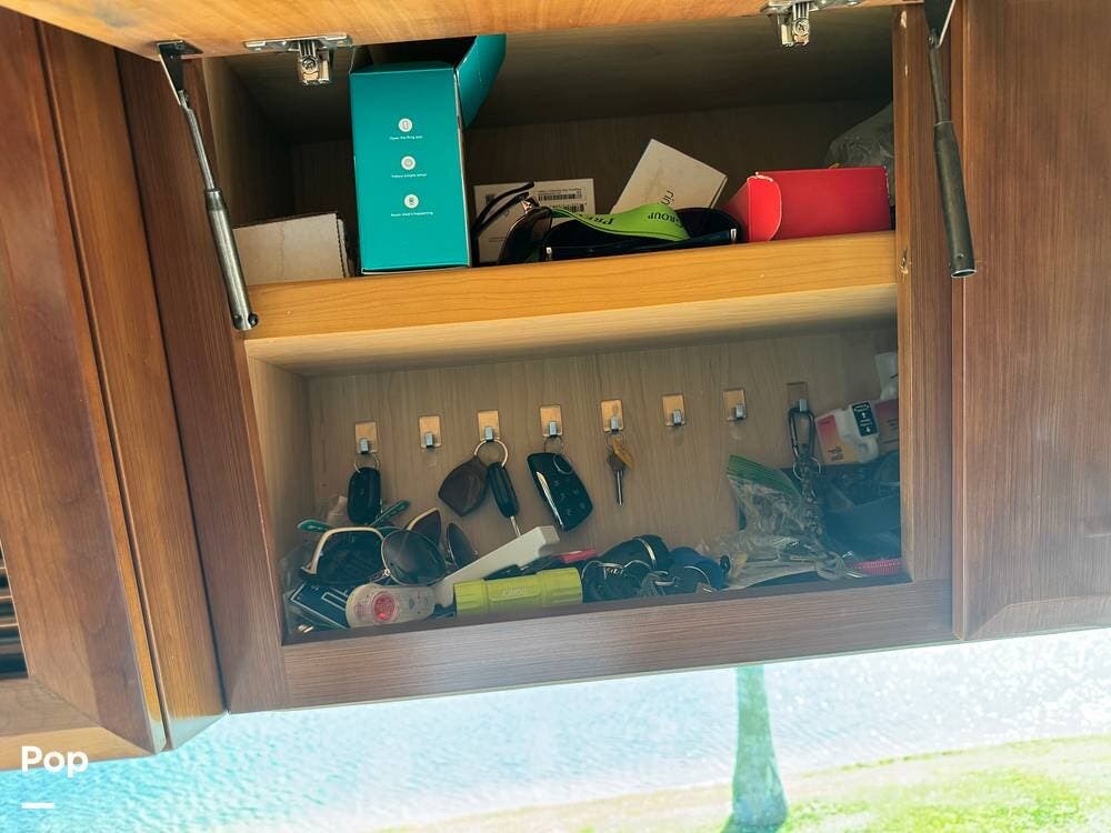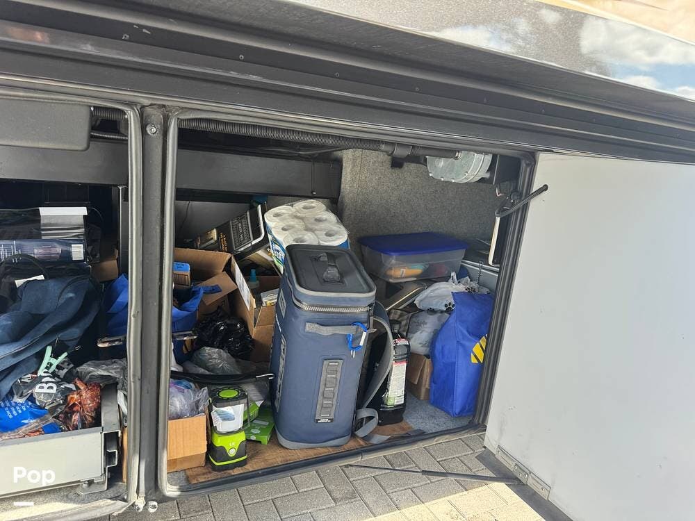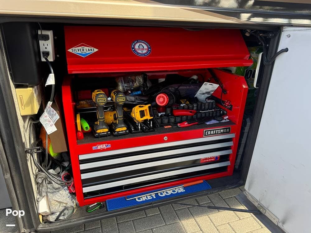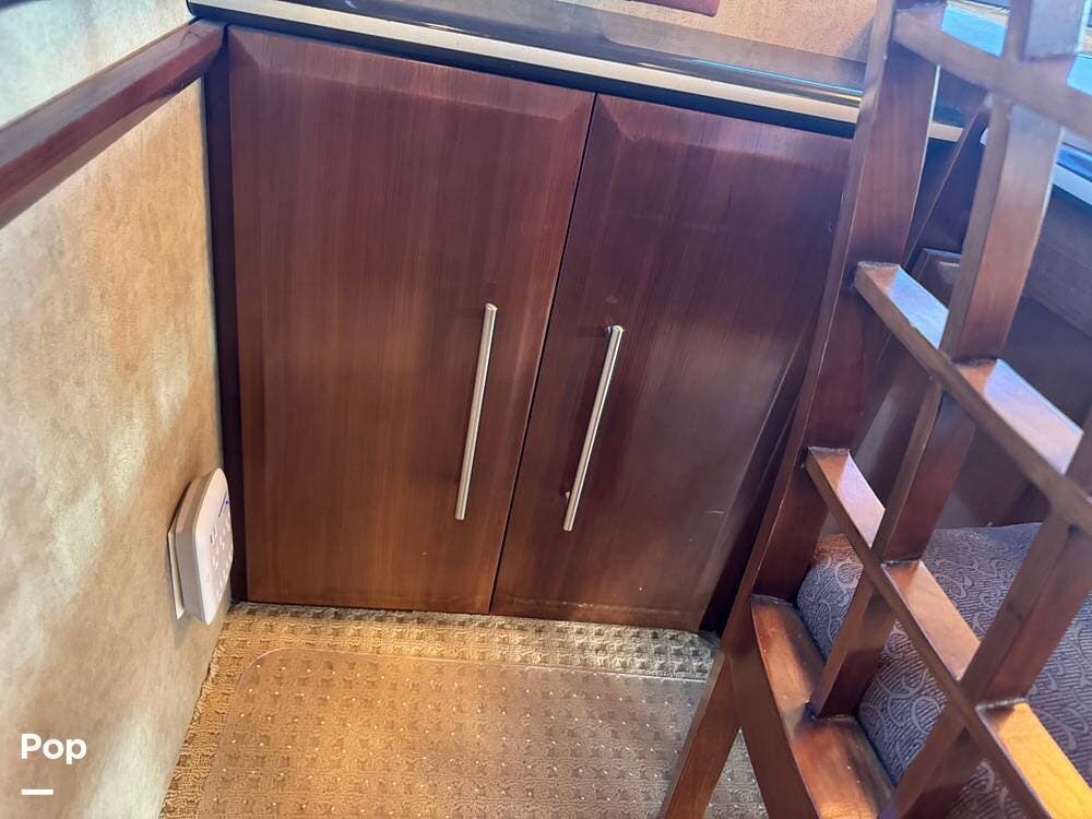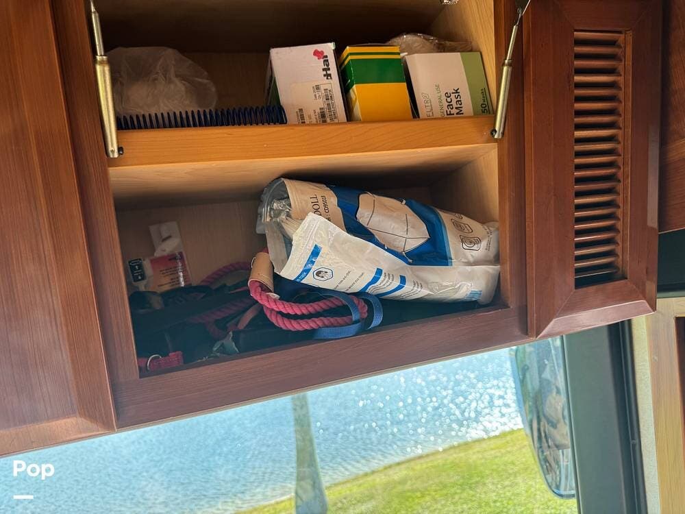Technology and convenience were ahead of their time in the King Aire. Features include Aqua-Hot hydronic heating, multi-zone climate control, power shades, integrated entertainment systems, and robust electrical systems designed to support extended off-grid stays. Outside, the basement storage is expansive and well-organized, easily accommodating golf clubs, patio furniture, tools, and everything needed for long adventures.