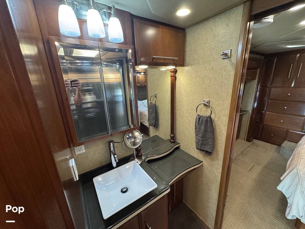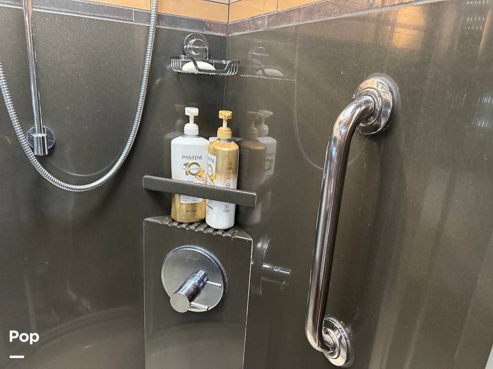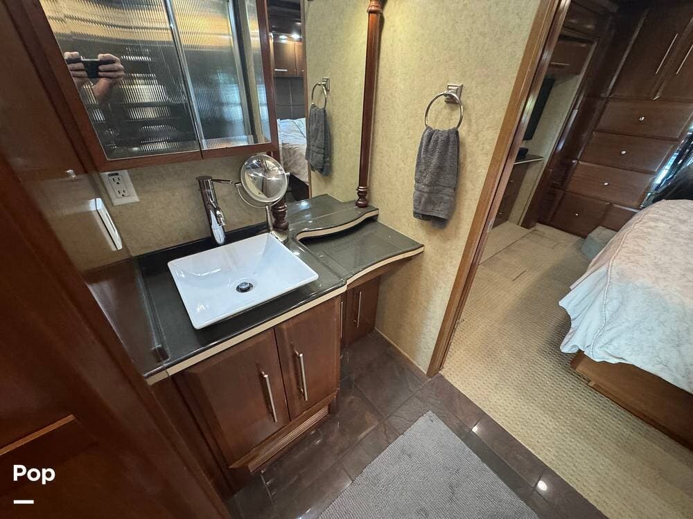 The master suite offers a true retreat at the end of the day. A comfortable king bed, generous wardrobe storage, washer and dryer, and a private bath with high-end fixtures allow you to travel without sacrificing the comforts of home. The spa-like bathroom features a large shower, quality finishes, and excellent storage--perfect for long-term or full-time living.