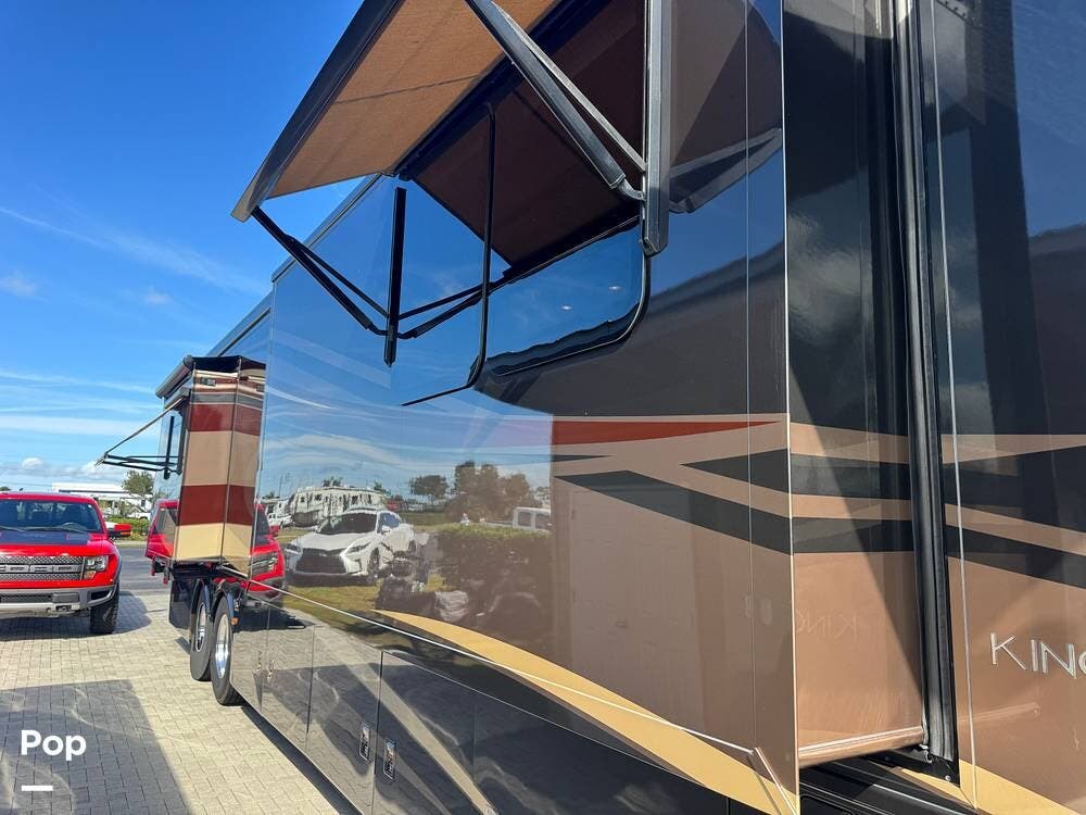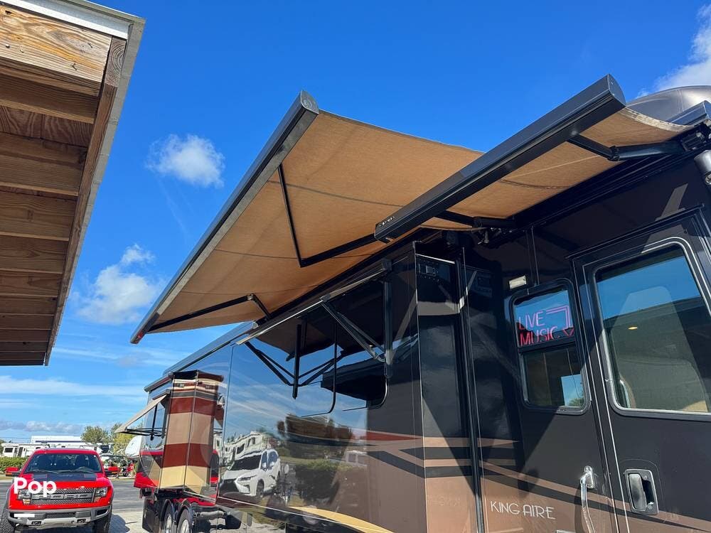 On the exterior, the King Aire's bold styling, high-gloss full-body paint, and quality construction signal its flagship status. Automatic leveling, power awnings, side-hinged baggage doors, and thoughtful utility hookups make setup and teardown quick and stress-free, so you can spend more time enjoying your destination.