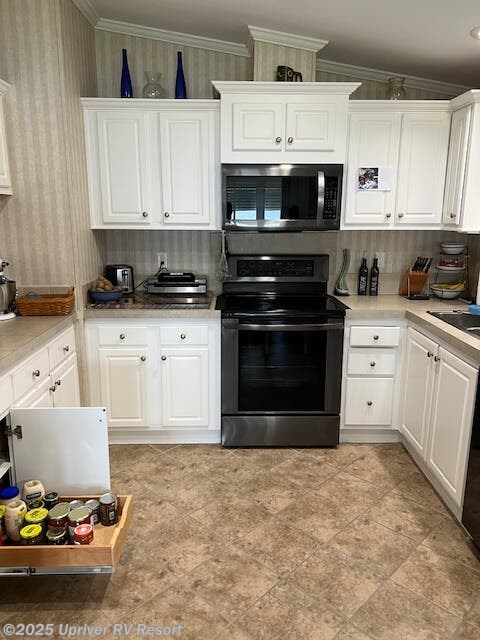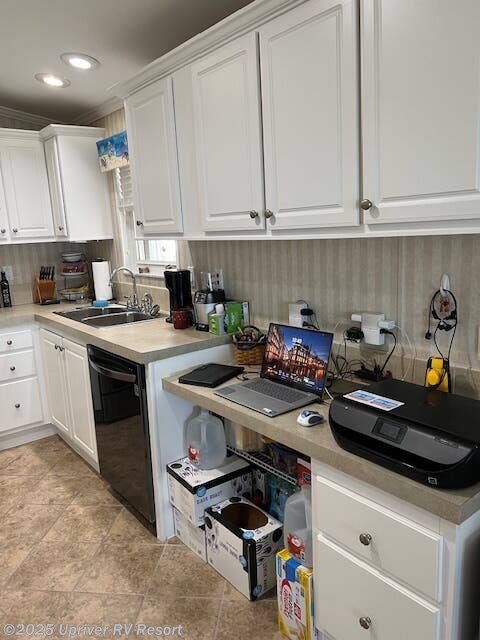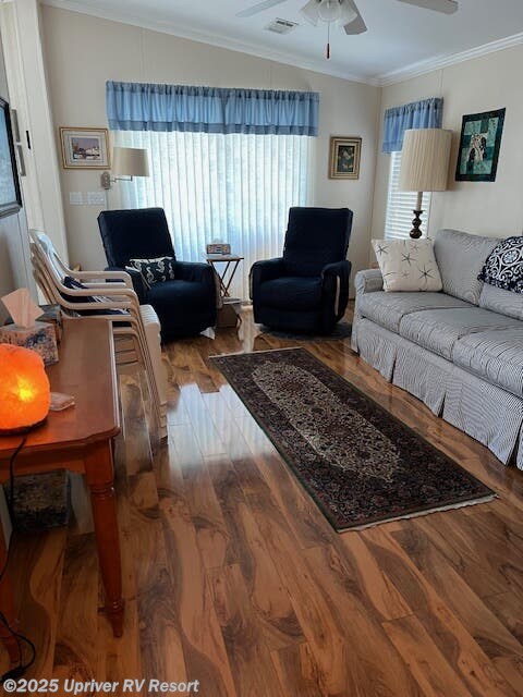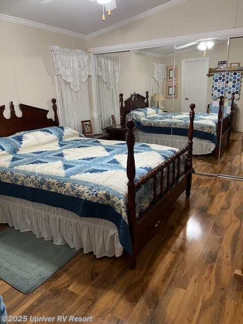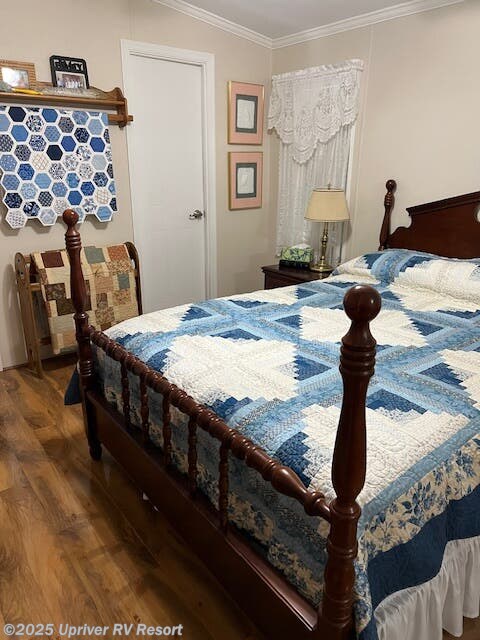 are two bedrooms and two baths. Master bedroom (11’by 15’) has a queen adjustable bed. Second bedroom has a full Murphey bed. Imagine having 11’ of closet space in each bedroom with Closetmaid shelving. Enter your home on steps and porch made of cement. Entertain friends in a spacious living room (18’by11’). The large eat in kitchen (18’by11’) has more than enough cabinets. Behind double doors in the hallway is the washer and dryer with lighting and closet maid shelving. There is also a linen closet. The exterior has a large driveway and carport with an attached 8’ by 10’ shed. View the canal, landscaped lot, and the wooden dock that has electric and water installed. Parking for multiple vehicles. Under home, storage is available through custom double doors. A spread sheet is available with information on all upgrades, appliances, windows, doors and flooring with dates of purchase or installation.