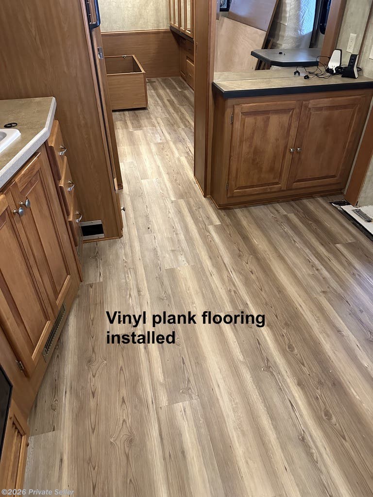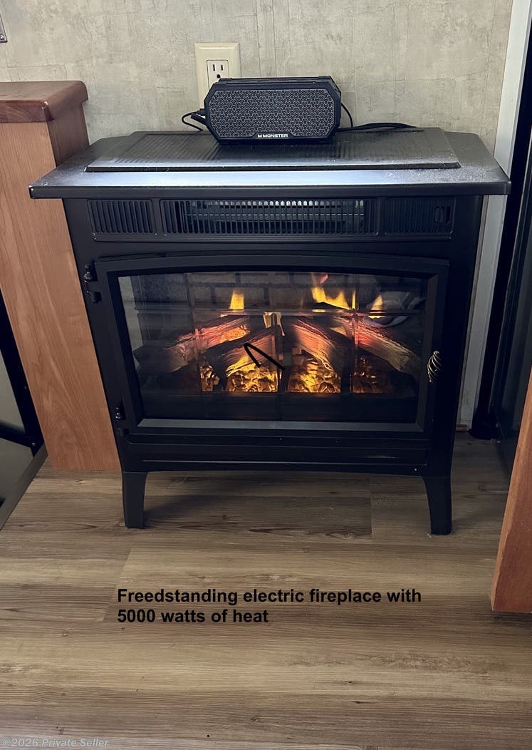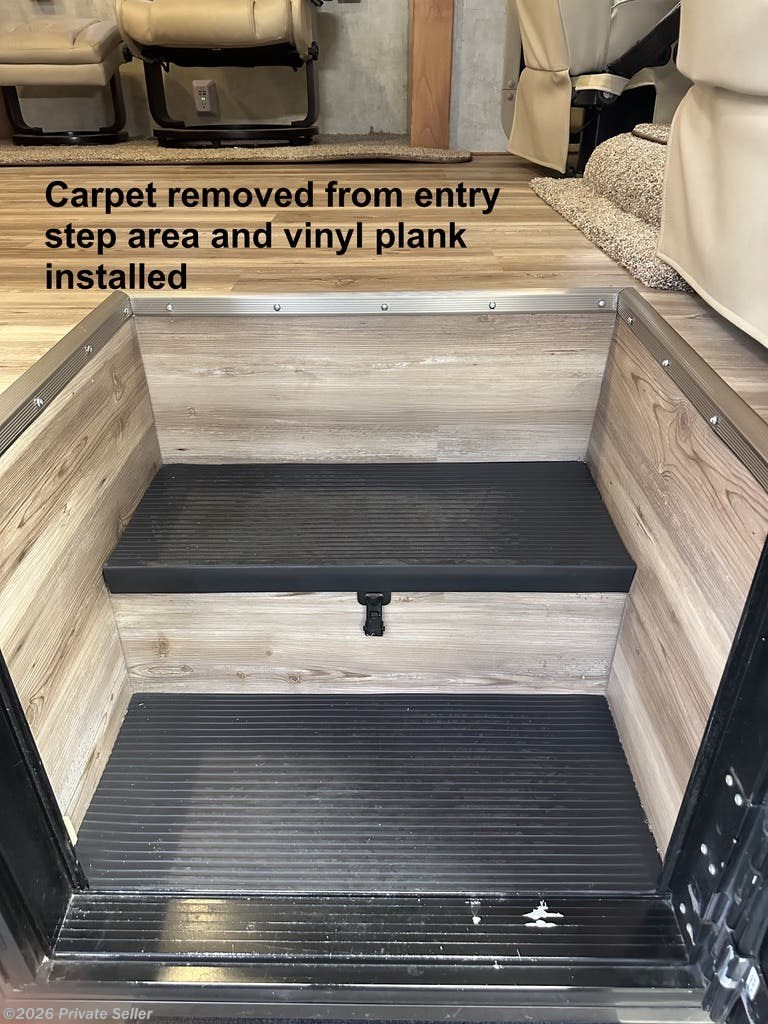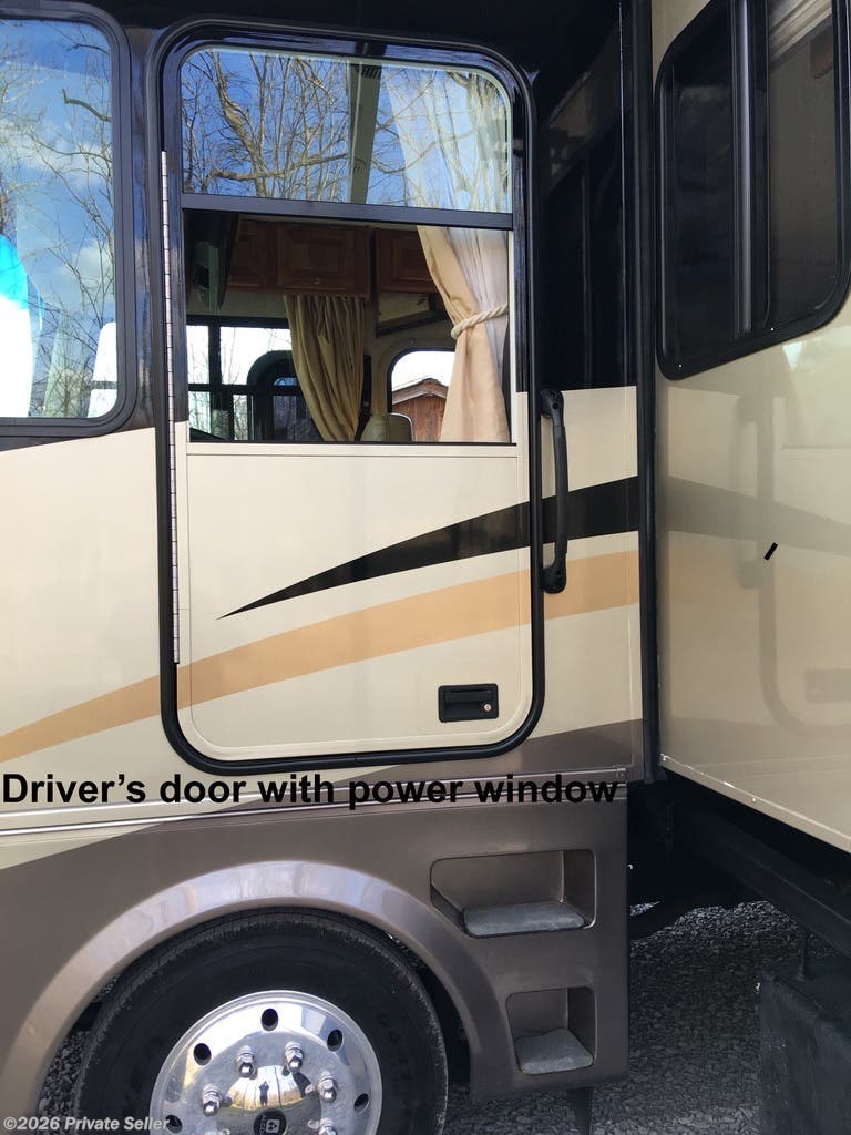 Full Body Paint - Silver Sand Color; Medium Alder Wood Cabinets; Length - 34’10”; Interior Height - 78”; Overall Width - 101”; Fresh Water - 53 gal; Black Water - 35 gal; Gray Water - 70 gal; LP Gas 24 gal; Min Garage Height - 13’; Basement Storage - 69 cuft; Generator - 5.5kw Onan Gold Marquis - 206 hrs; Driver’s Door w/Power Window; Heated Power Mirrors; Michelin 245/70R19.5 ZXE tires; Manual Patio Awning; Sunbrella Slideout Awnings; Sunbrella Drivers’s Side Window Awning; Main AC - 15,000 BTU Ducted; Bedroom AC - 13,500 BTU Ducted; Exterior Cameras - 2 Side View - Activated w/Turn Signals; Rear Camera - With Dash Display & Sound; Dash AM/FM Radio with Single CD player & Satellite Speaker in Bedroom; Garmin RV770 Navigation System; TireMinder I10 RV Tire Pressure/Heat Sensor System. Includes 10 Sensors (4 for Toad); Double Power Theater Seats w/Center Console Storage and Charging Ports and Wireless Charging; Front Driver & Passenger Power Seats; 32” Flat Screen TV in Front; Winegard 360+ Omni Directional Amplified TV Antenna; Free Standing Electric Fireplace w/5000 Watt Heater; Satin Nickel Finish Kitchen and Bath Fixtures; Double Bowl Kitchen Sink; Ceramic Toilet w/Washdown Nozzle; Wood Refrigerator Panels; 3 Burner Gas Stove w/Oven; Panasonic Microwave; Dirt Devil Central Vacuum System; Smoke Detectors & CO Detector; Power Rood Vents; 9” Memory Foam Mattress; Gear Deck Rear Cargo Box; Double Height Hi/Lo Receiver Hitch; much much more…………