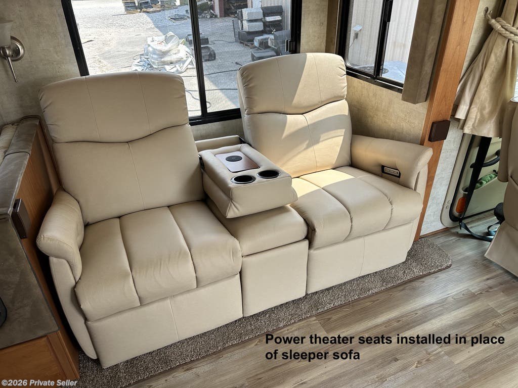 6-Way Power Driver's Seat, Booth Dinette, Central Vacuum, Dinette, Dinette Bed, Fireplace, Glass Shower Door, Kitchen Sink, Leather Furniture, Medicine Cabinet, Pleated Shades, Pocket Door(s), Power Seats, Queen Bed, Queen Mattress, Recliner(s), Roof Vents, Theater Seating, Wardrobe(s)