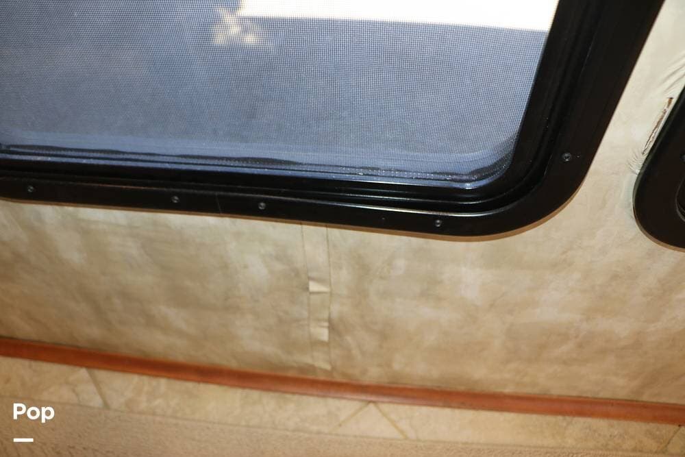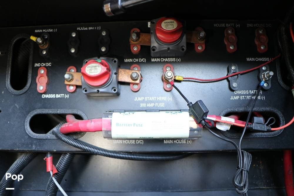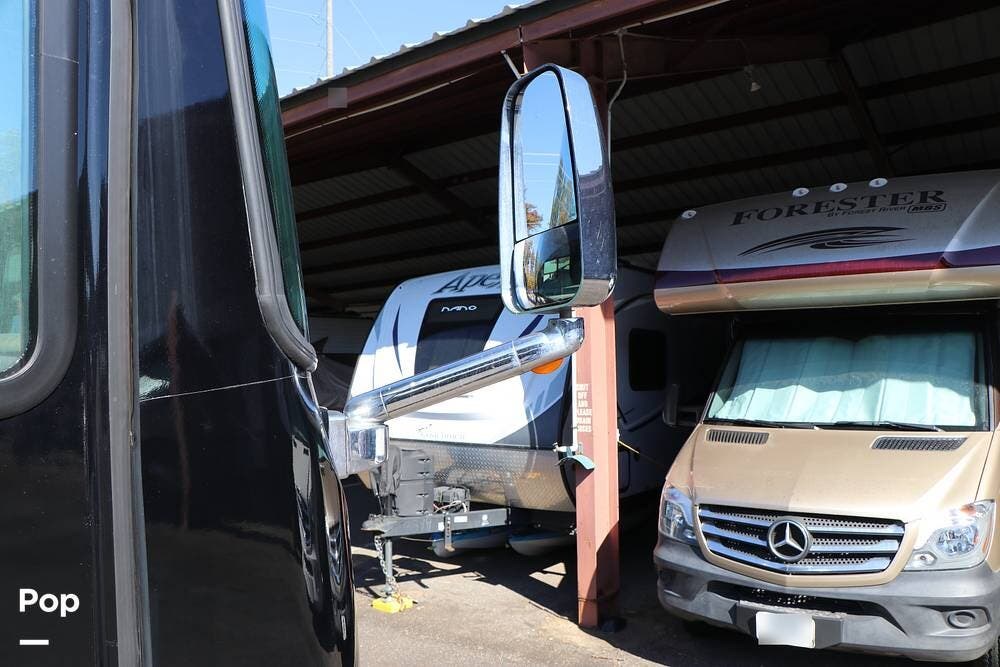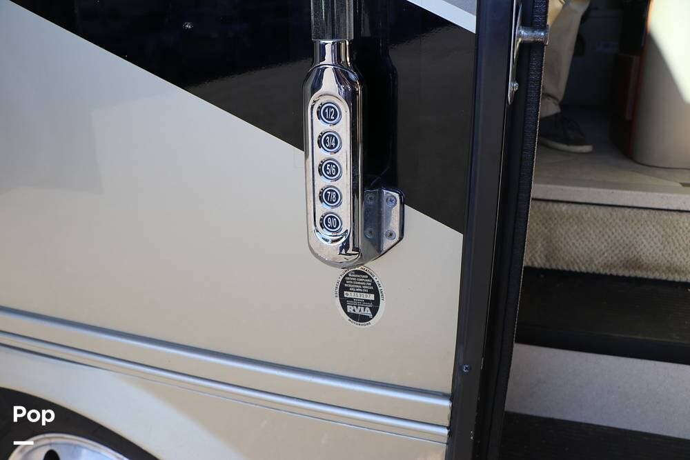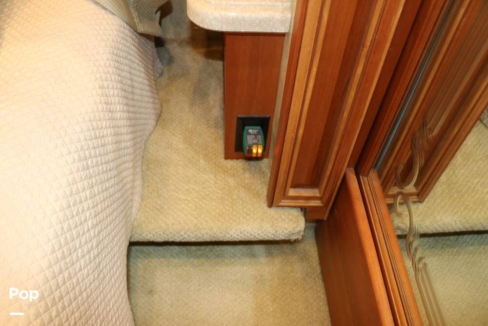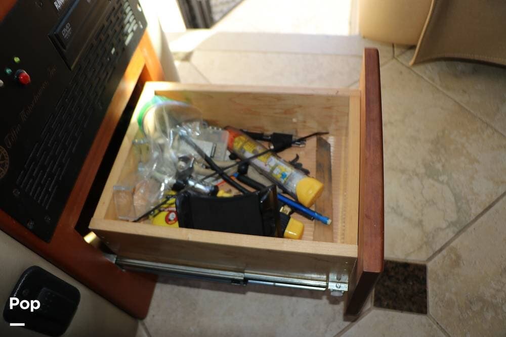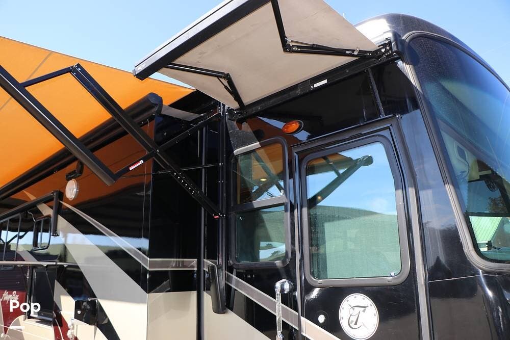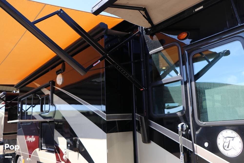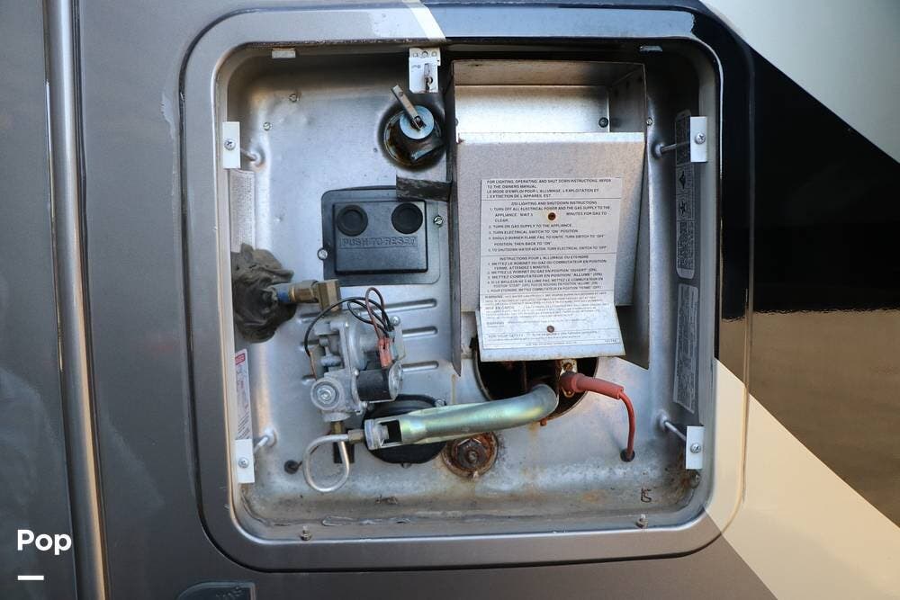 The two easy-access slide storage trays provide quick and easy access to stored items in the full-width storage compartments. There is a roof-mounted Solar Panel and a corresponding solar converter to keep the house batteries fully charged when on the go. The three 13,500 BTU roof AC systems each have heat pumps, and the unit is equipped with two 30,000 BTU furnaces as well, so keeping warm is not an issue.