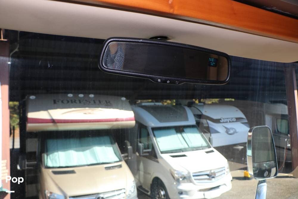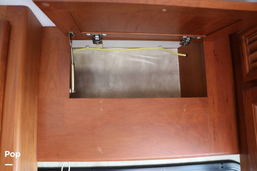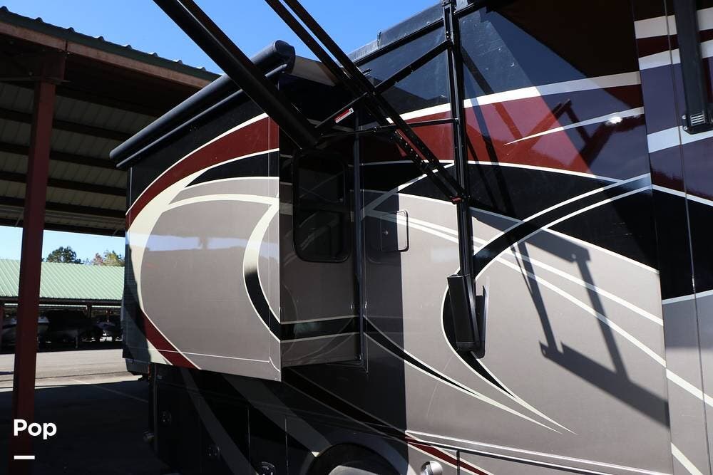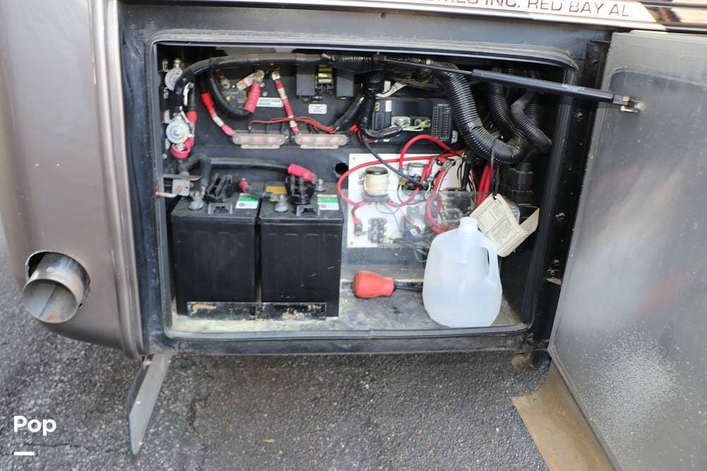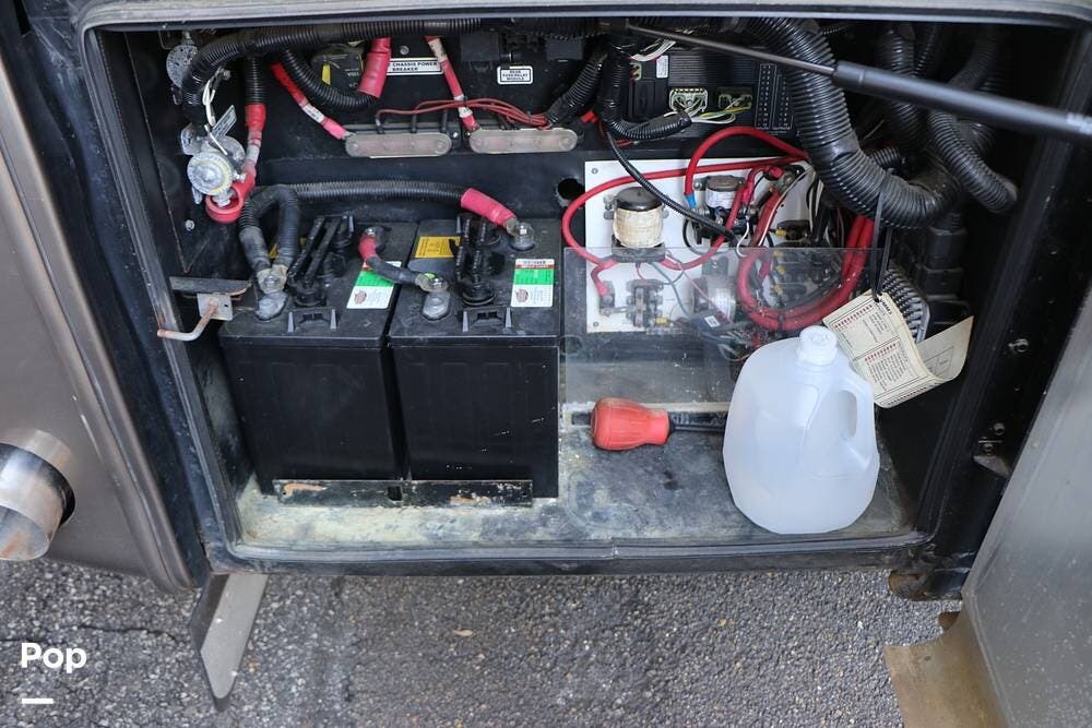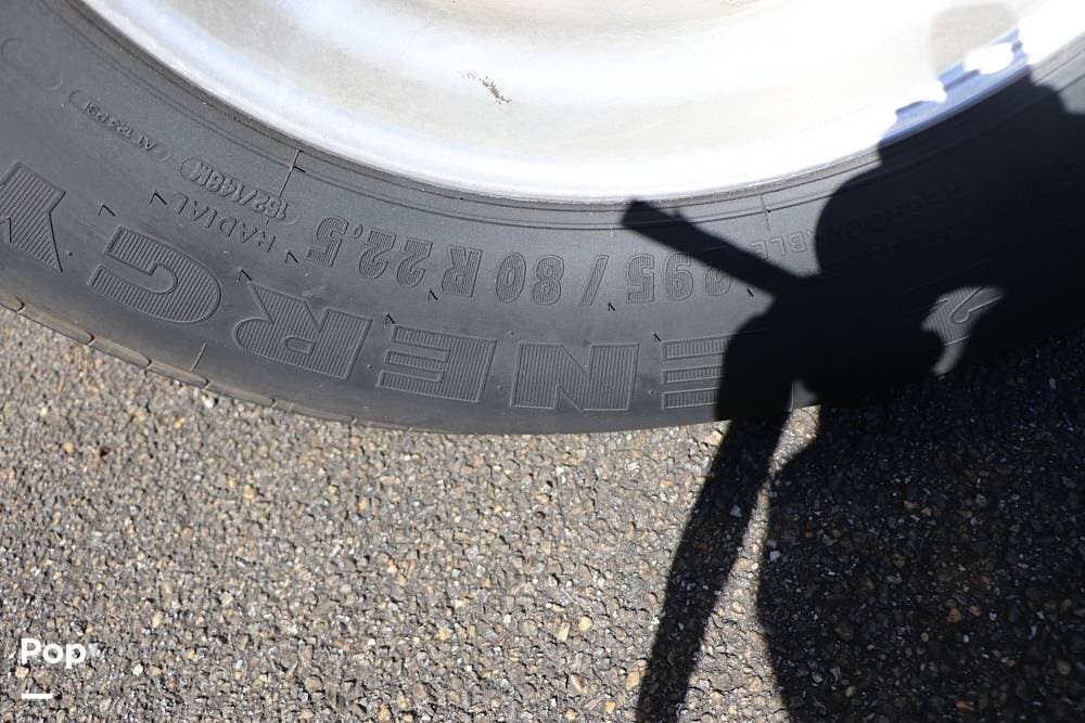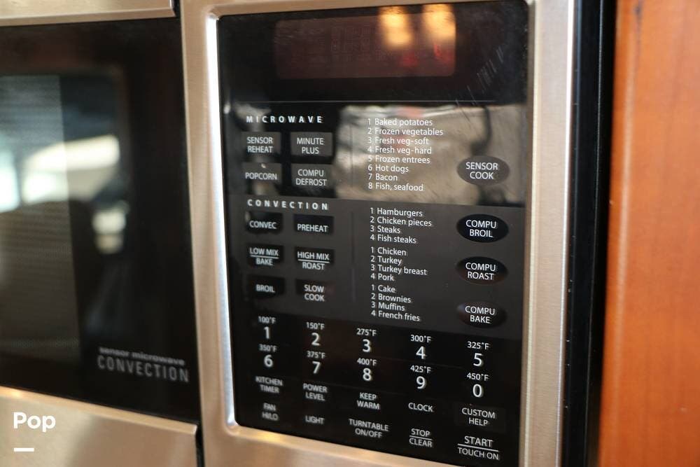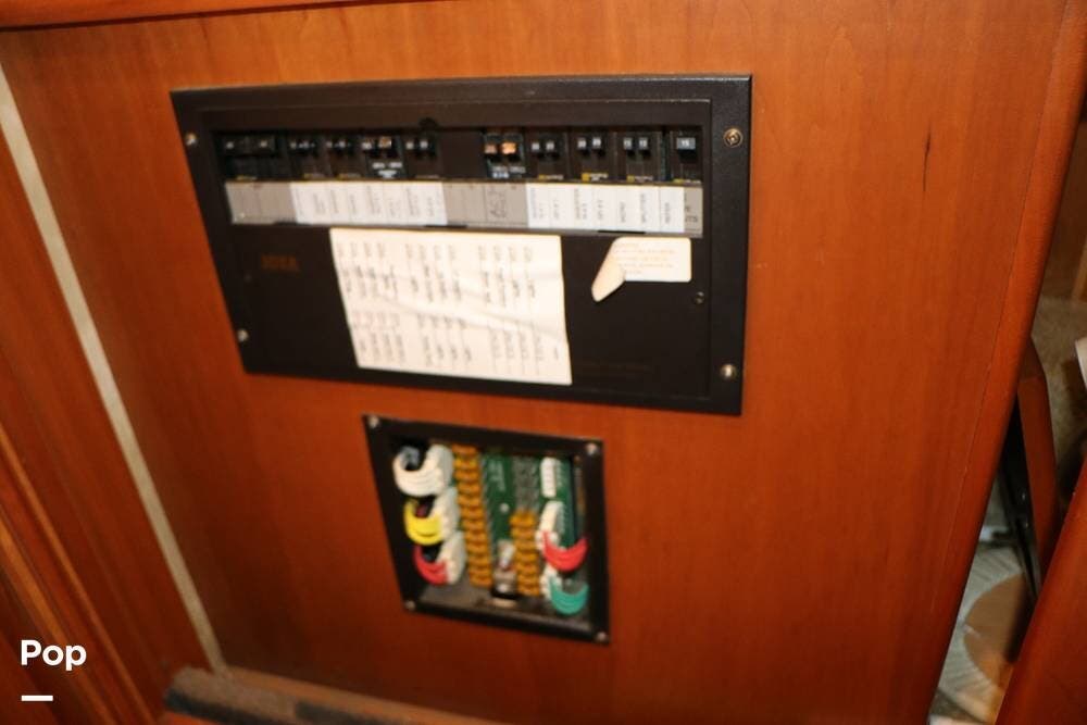 The two easy-access slide storage trays provide quick and easy access to stored items in the full-width storage compartments. There is a roof-mounted Solar Panel and a corresponding solar converter to keep the house batteries fully charged when on the go. The three 13,500 BTU roof AC systems each have heat pumps, and the unit is equipped with two 30,000 BTU furnaces as well, so keeping warm is not an issue.