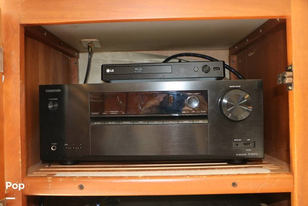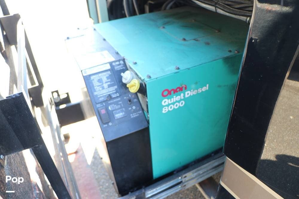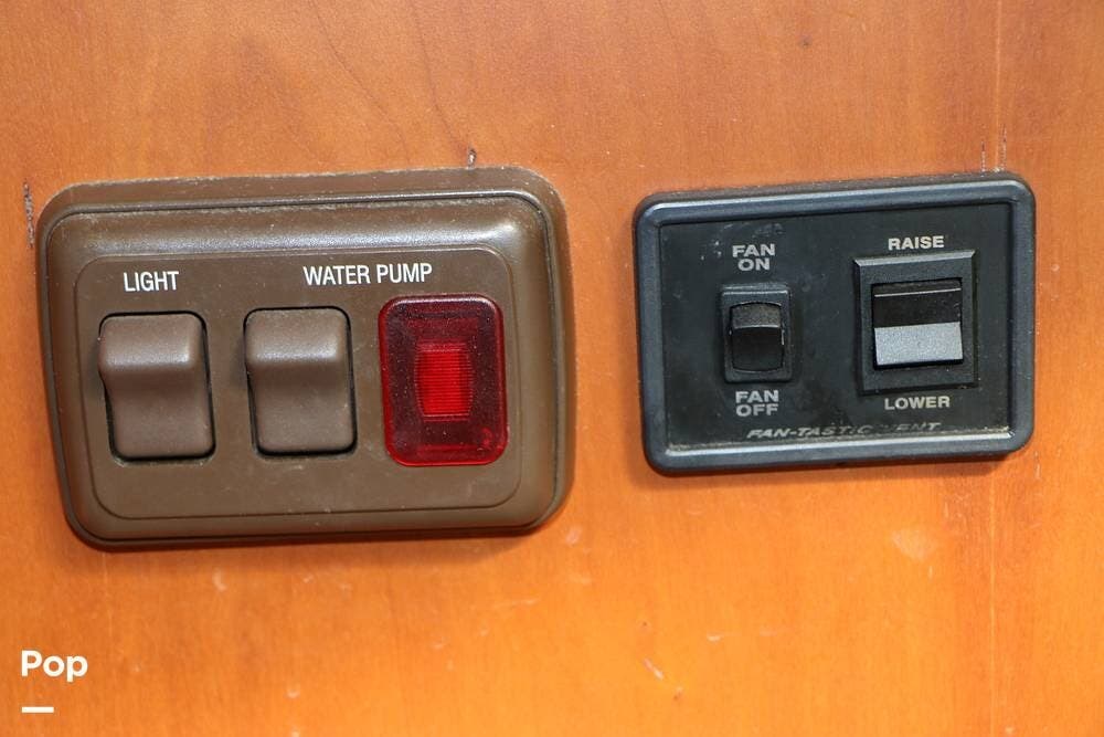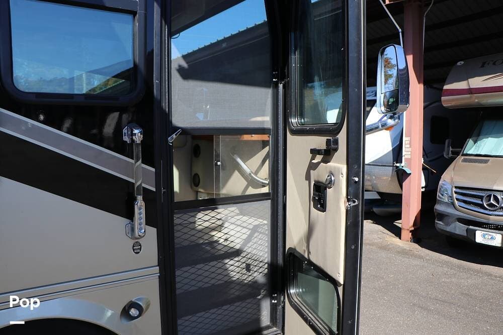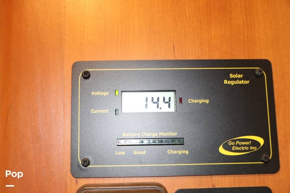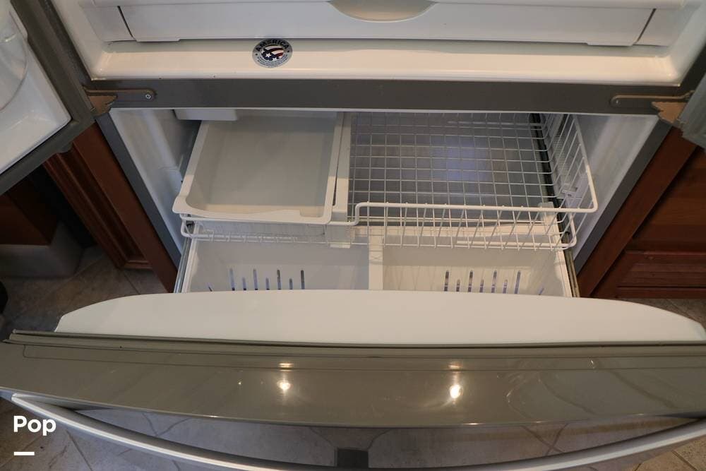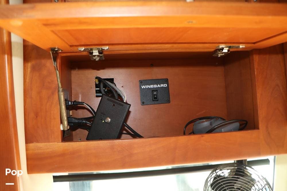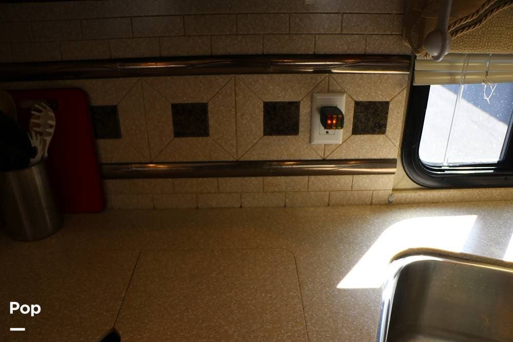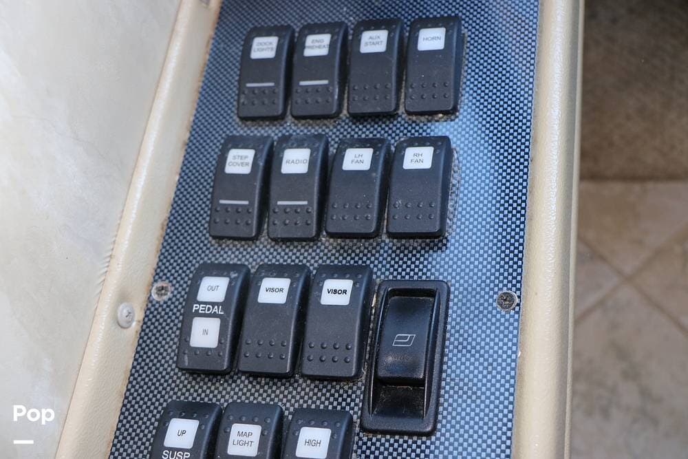 The two easy-access slide storage trays provide quick and easy access to stored items in the full-width storage compartments. There is a roof-mounted Solar Panel and a corresponding solar converter to keep the house batteries fully charged when on the go. The three 13,500 BTU roof AC systems each have heat pumps, and the unit is equipped with two 30,000 BTU furnaces as well, so keeping warm is not an issue.