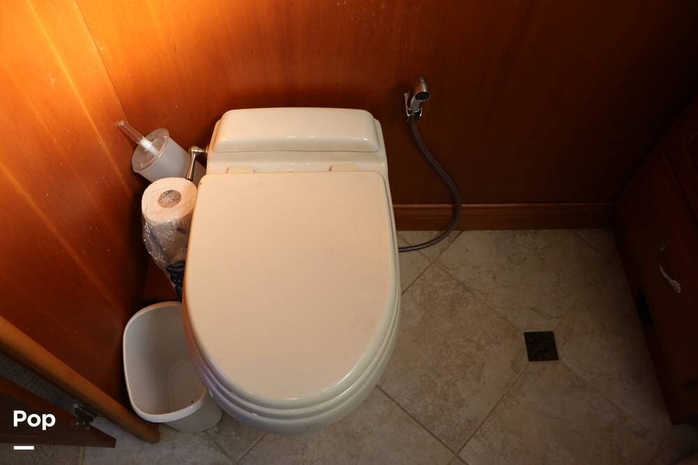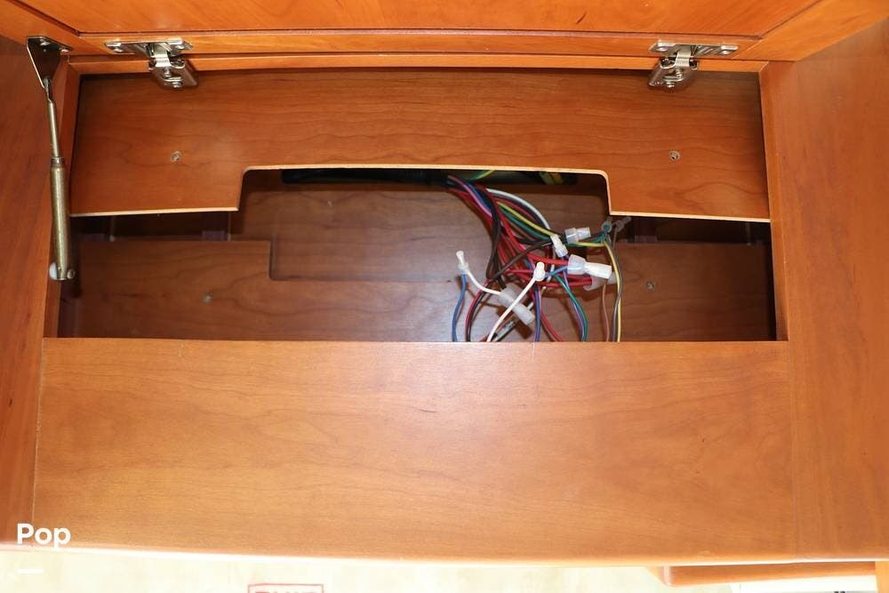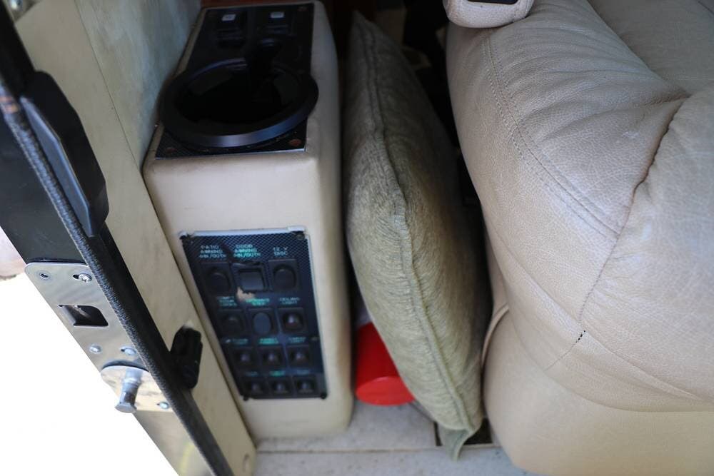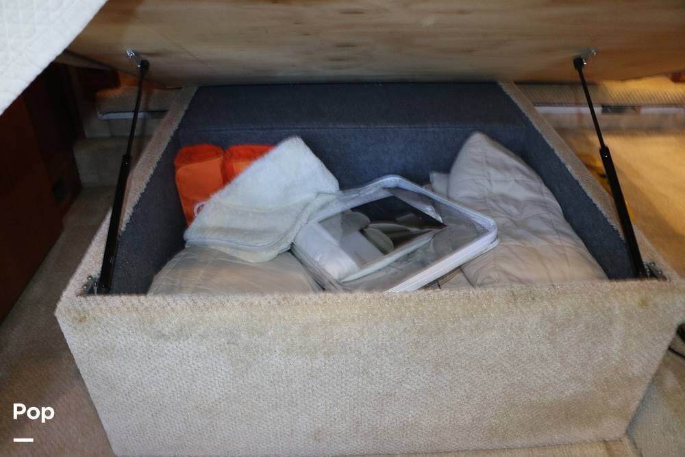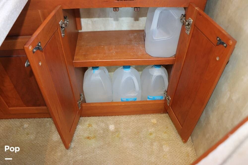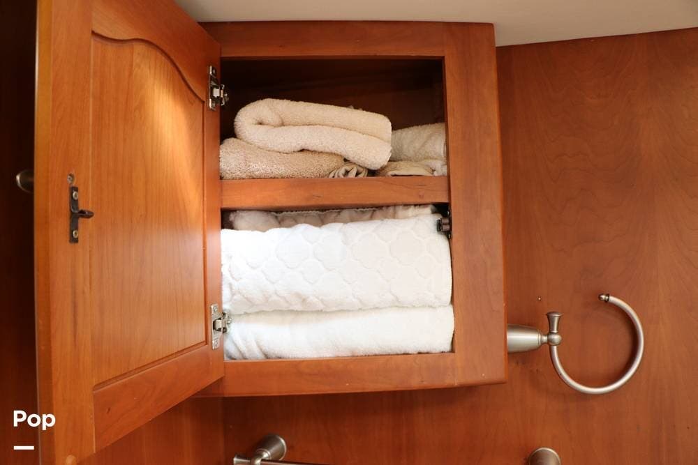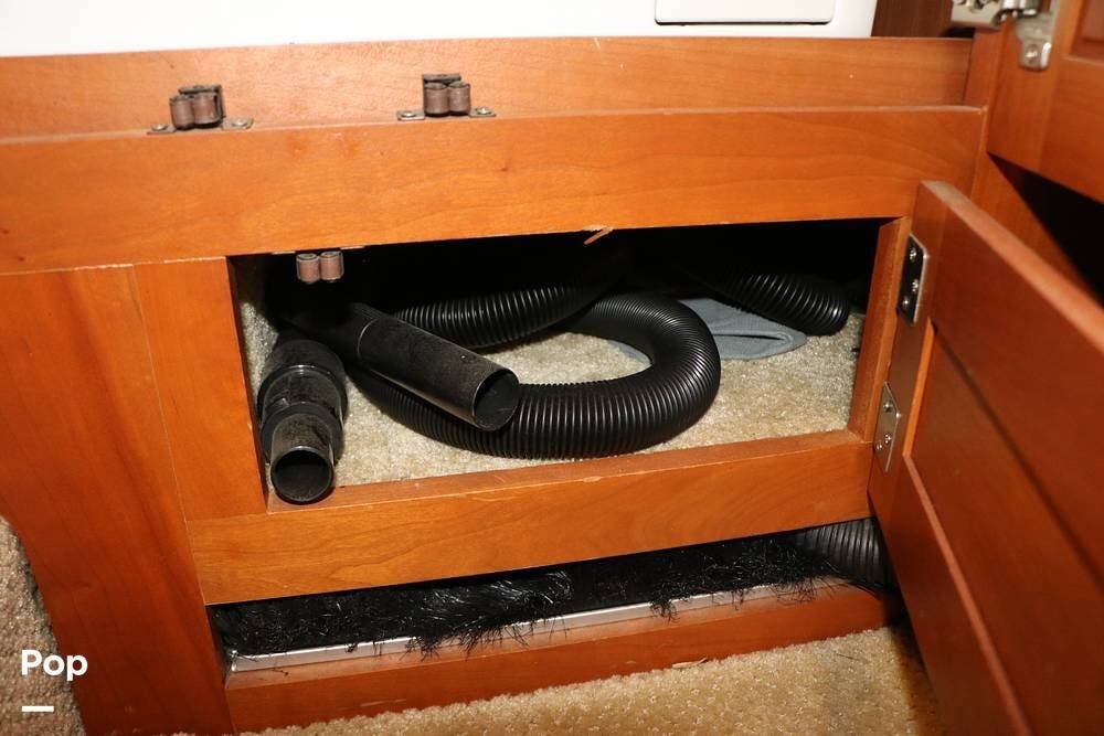 The master bedroom features a Queen bed with overhead cabinet space and storage space below the bed. The wall of cabinets and countertop at the foot of the bed provides plenty of storage when combined with the large cedar-lined sliding wardrobe closet at the rear of the room. There is also a stacked washer-dryer unit. The RV features a central Vacuum system and a 10-gallon water heater that runs on either propane or electric power, so you never have to worry about running out of hot water!