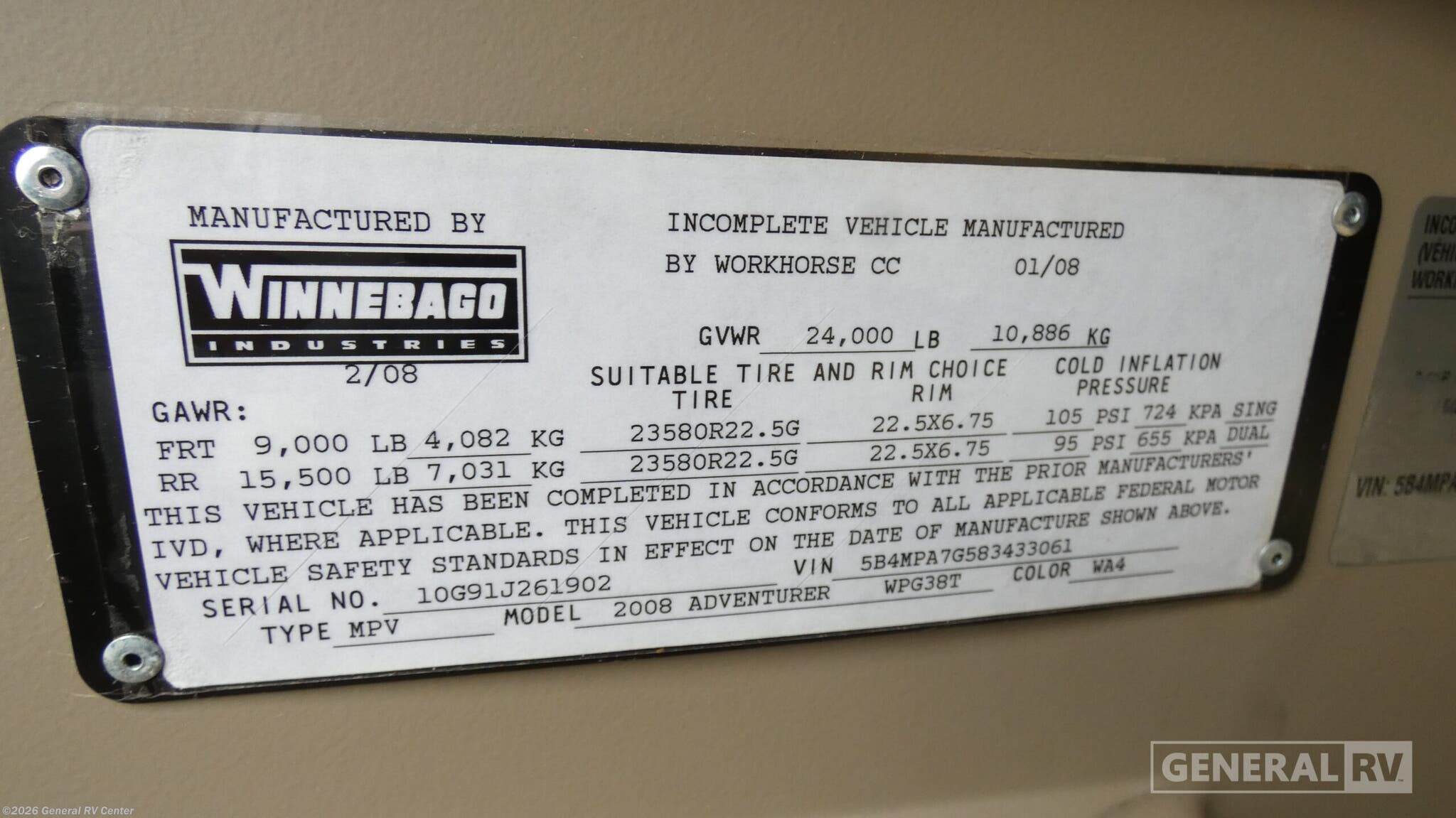 Request More Info on this 2008 Winnebago Adventurer 38T Offered for sale by General RV Center