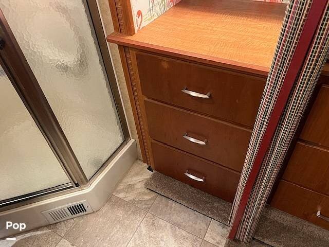 All the comforts of home with a built-in chest of drawers in the primary cabin, so a long trip is a breeze with bringing everything you need.