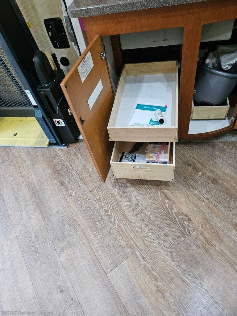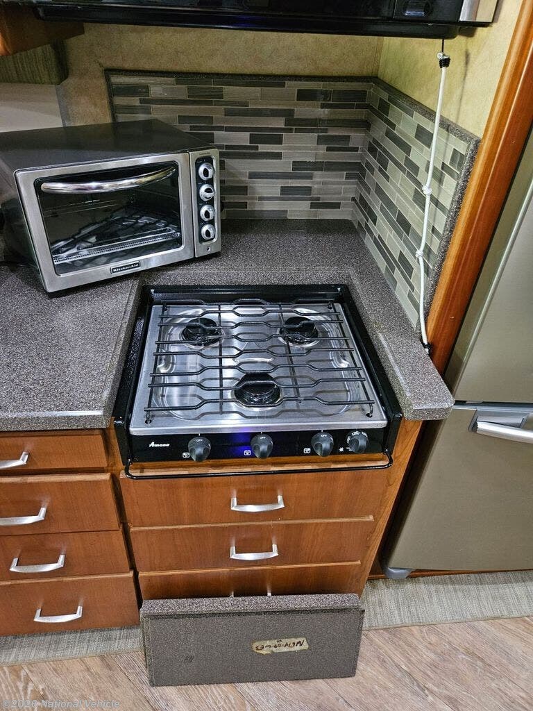 Step inside and take a look back at all of the convenient features that would make any journey enjoyable. The kitchen area features everything you need to prepare great meals on the go including a sink, a three burner range with microwave/convection oven, and a refrigerator/freezer. There is also plenty of storage for all of your dry and canned goods. Have a seat at the comfortable dinette, where you can enjoy meals with your family.