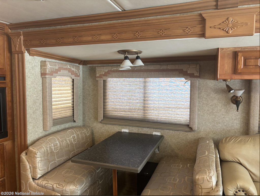 Step inside and take a look back at all of the convenient features that would make any journey enjoyable. The kitchen area features everything you need to prepare great meals on the go including a sink, a three burner range with microwave/convection oven, and a refrigerator/freezer. There is also plenty of storage for all of your dry and canned goods. Have a seat at the comfortable dinette, where you can enjoy meals with your family.