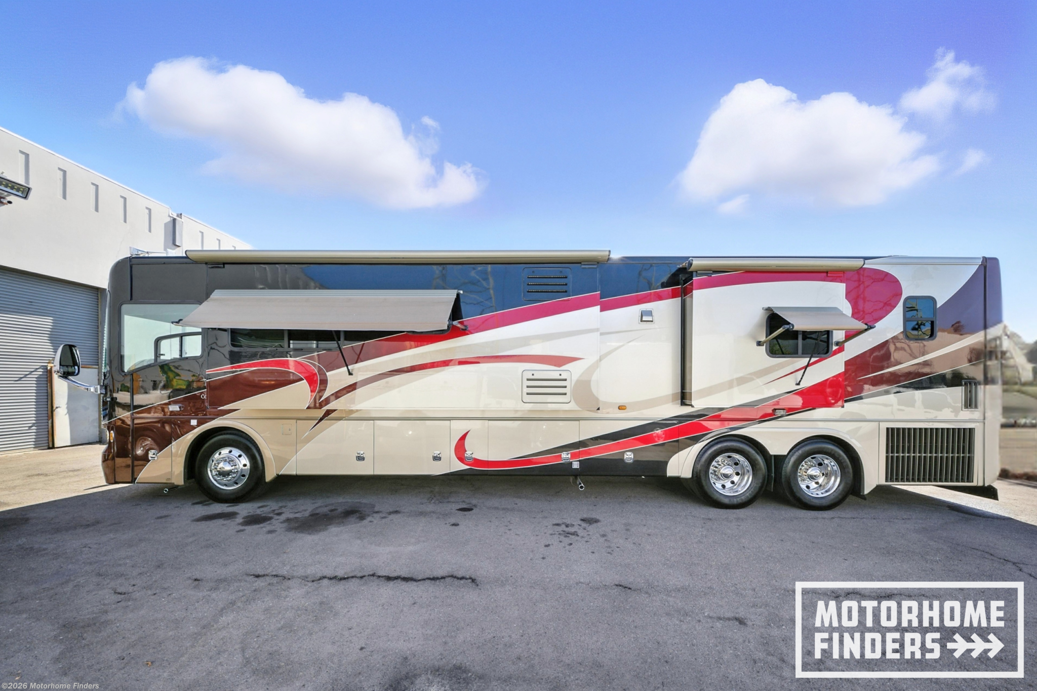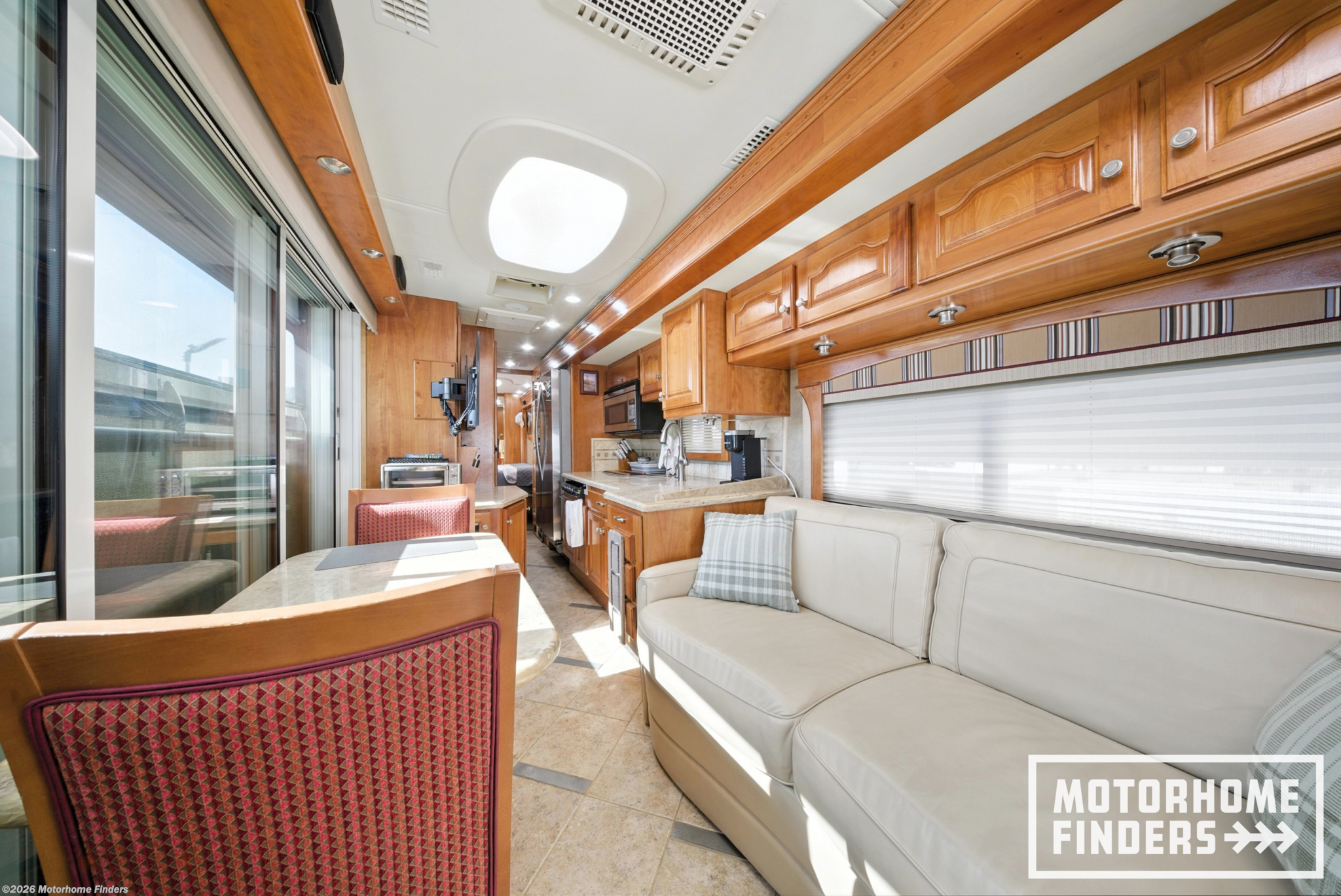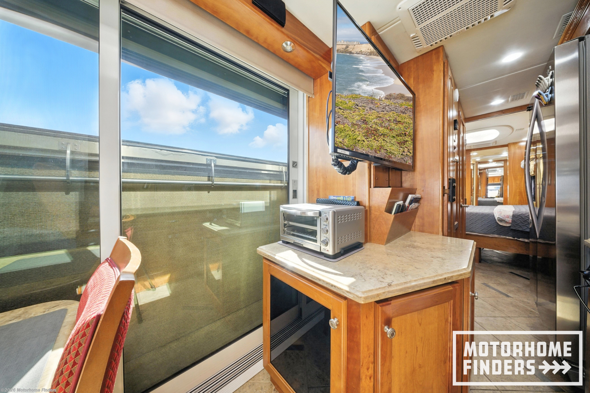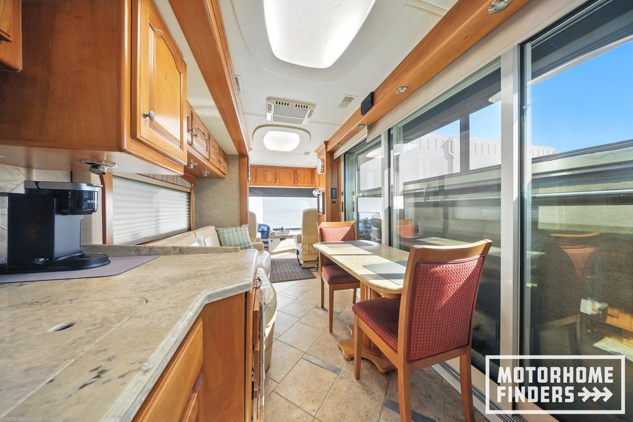 This one-of-a-kind luxury motorhome is one of only 30 built in 2009–2010, making it a true conversation piece wherever you travel. The hallmark feature is the hydraulic drop-down porch—bringing the outdoors in through three hurricane-rated sliding glass doors with screens for unmatched ventilation and panoramic views. Designed for comfort, style, and extended travel, this 43' diesel pusher blends high-end craftsmanship with rare functionality.