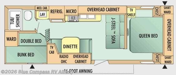 Jay Flight Travel Trailer, Rear Bath w/Tub Shower, Lav., Medicine Cabinet, Rear Bunkhouse w/Wardrobe, Lower Double Bed w/Bunk Above, TV Cabinet, Booth Dinette w/Radio Above, Refrigerator, Microwave, 3 Burner Range, Double Kitchen Sink, J-Steel Sofa, Front Queen Bed w/TV Shelf, Chests & Shirt Wardrobes, Overhead Cabinets Throughout, Pass Thru Storage and Much More!