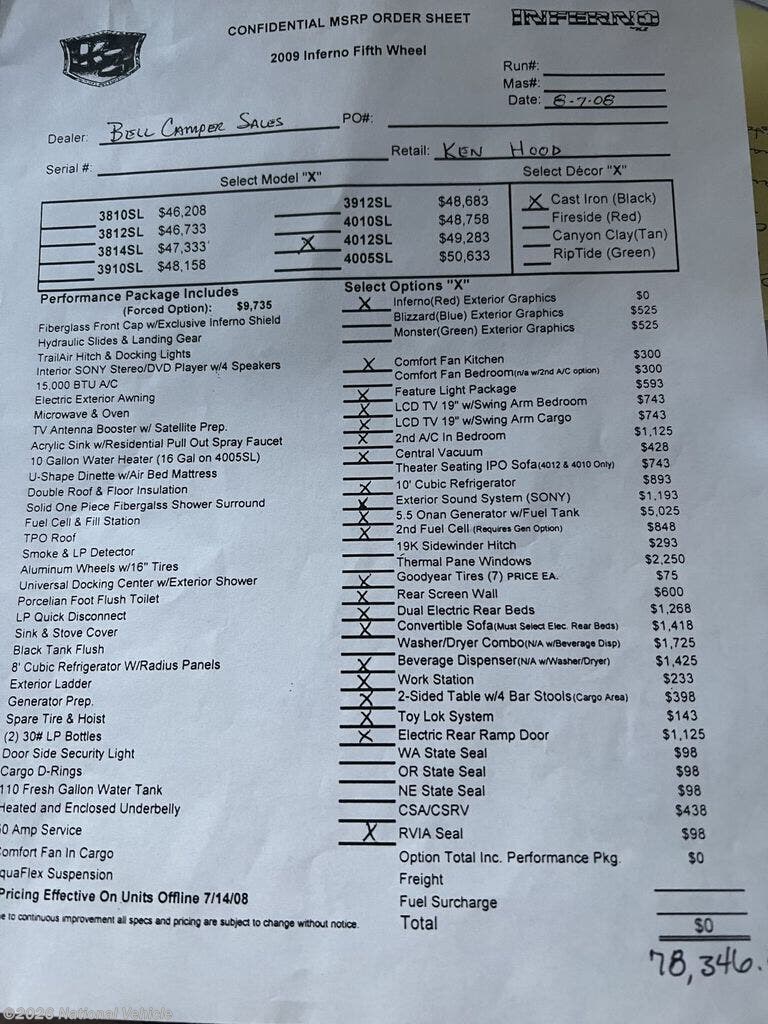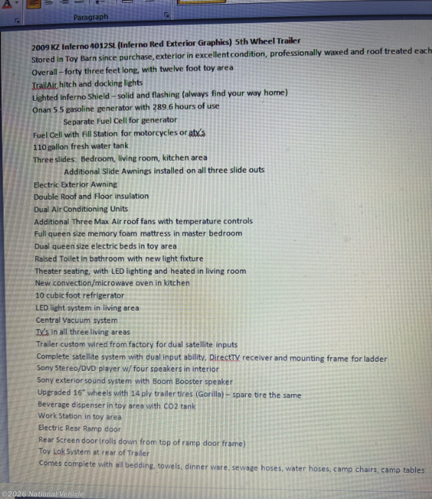 Request More Info on this 2009 K-Z Inferno 4012SL Offered for sale by National Vehicle