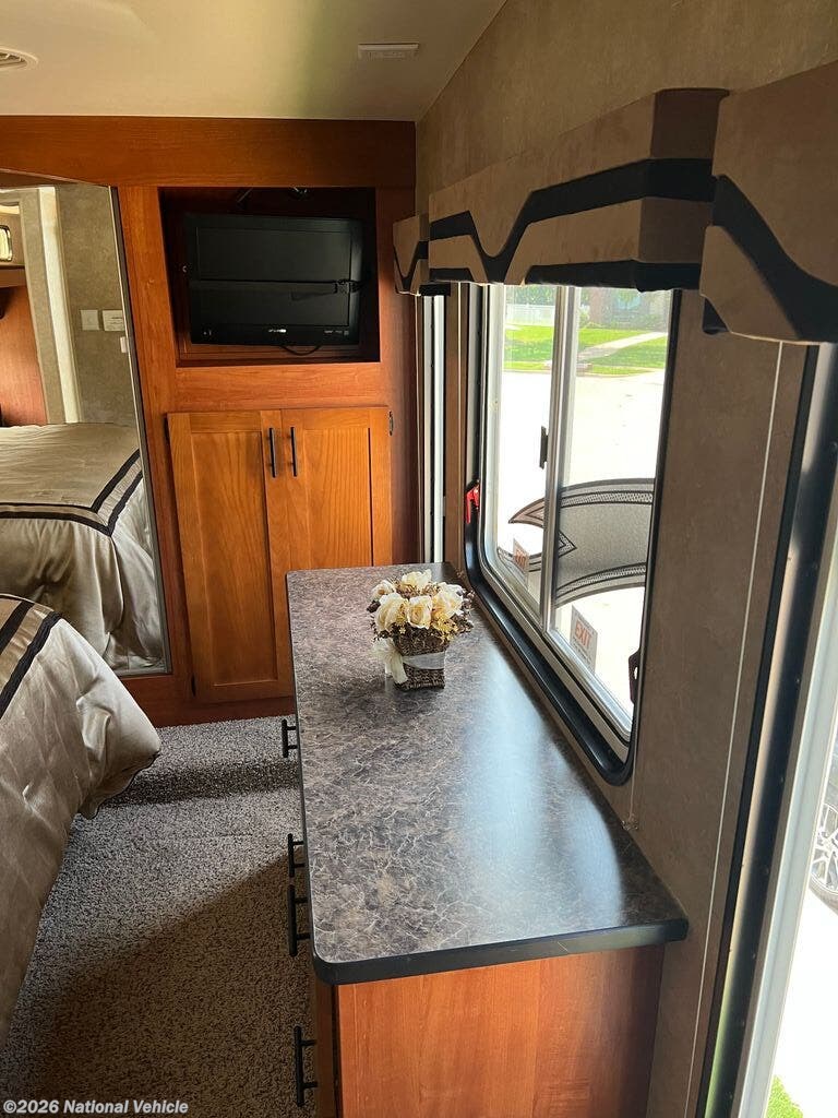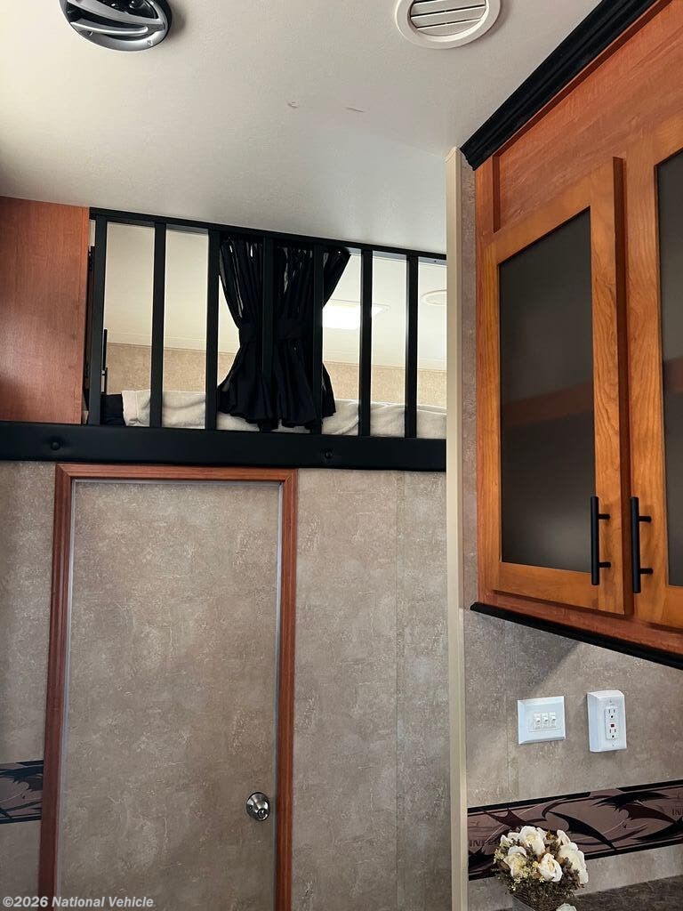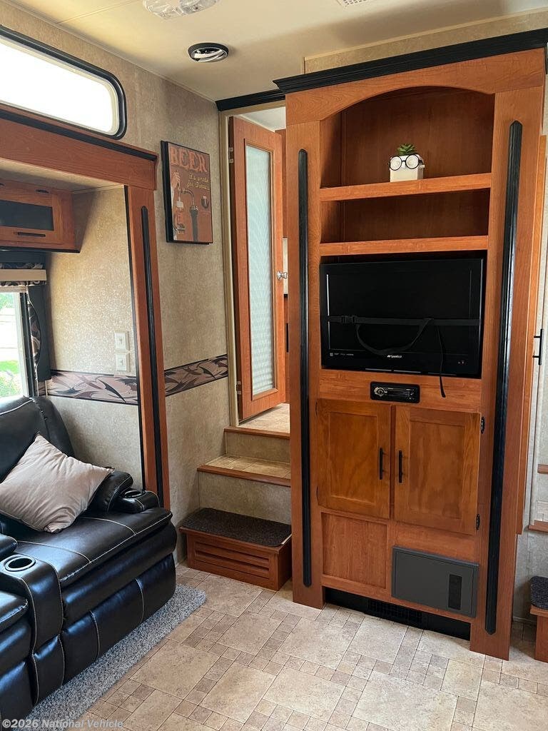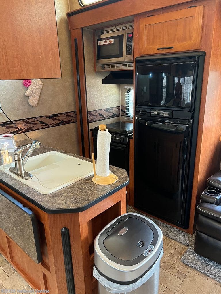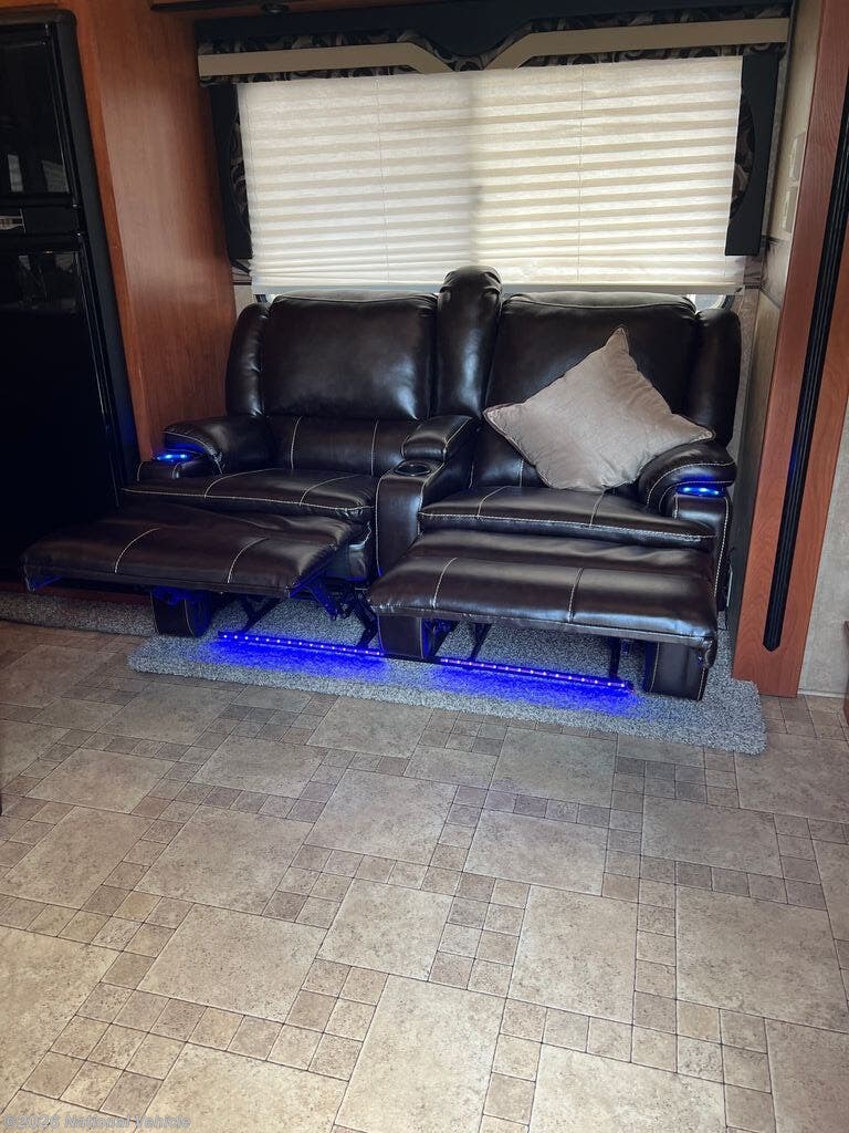 Inside the main living area, you?ll find a spacious and functional layout enhanced by multiple slide-outs. Comfortable seating, a dinette, and an entertainment center create a welcoming space to relax after a day of riding. The kitchen is fully equipped with a 3-burner range, oven, a new convection microwave, a residential refrigerator, and ample cabinetry, making it easy to prepare meals whether you?re on a weekend trip or an extended stay.