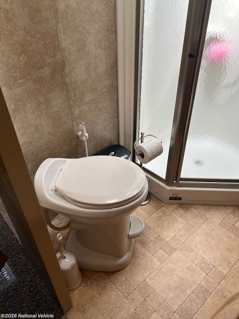 Up front, the private master bedroom offers a king bed, wardrobe storage, and overhead cabinets, providing a quiet retreat. The centrally located bathroom includes a shower, porcelain toilet, vanity, and storage, delivering the essentials of home wherever you travel.