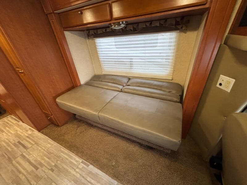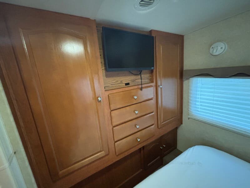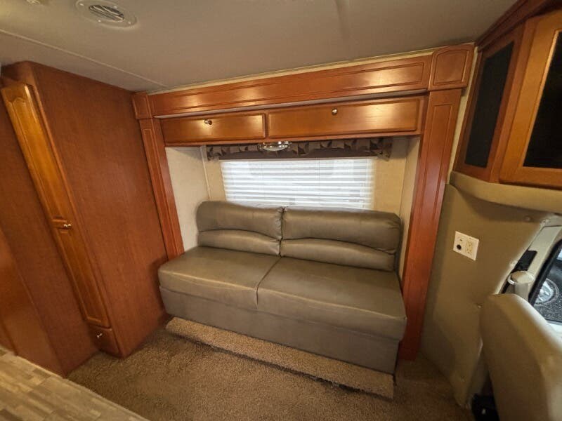 2009 Lexington GTS 255DS (Class C RV) Step into the world of comfort and adventure with the 2009 Lexington GTS 255DS, a Class C RV that promises an enjoyable traveling experience. This used recreational vehicle is built on a robust Ford chassis, ensuring reliability and performance on every journey. Exterior Features: - Heated power mirrors for optimal visibility in varying weather conditions - High-gloss gel-coat finish for an attractive and durable exterior - Filon fiberglass exterior and fiberglass roof for longevity - Running boards for easy entry and exit - Rotocast storage for convenient and durable storage solutions - Curved arm awning and slide awnings for shade and weather protection - Generator prep and auto generator transfer features for seamless power management - Arctic Package for enhanced insulation, making it suitable for colder climates - Outside shower for washing up without stepping indoors Interior Comforts: - Cab privacy curtain providing separation and privacy - Soft-touch ceilings for a luxurious feel - Night shades for a restful night’s sleep - Fantastic Fan for efficient air circulation - Entertainment system with premium sound for endless enjoyment - Outside entertainment center for open-air leisure - Raised panel doors for an elegant touch - Solid surface countertop with sink and range covers for seamless food preparation - Convection microwave offering quick and versatile cooking Convenience: - Gas/electric/DSI hot water system ensures a reliable hot water supply - Water filtration for clean water access at all times - Cedar-lined wardrobes for a fresh and clean storage area - Bath power vent providing efficient ventilation in the bathroom - Porcelain toilet offering durability and ease of cleaning Whether you are planning a weekend getaway or an extended road trip, the 2009 Lexington GTS 255DS is equipped to meet your travel needs with its richly appointed features and sturdy build. Prepare for comfort, adventure, and unforgettable memories on the road.
