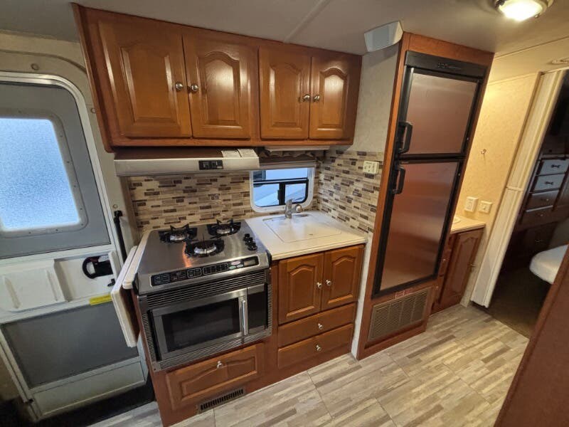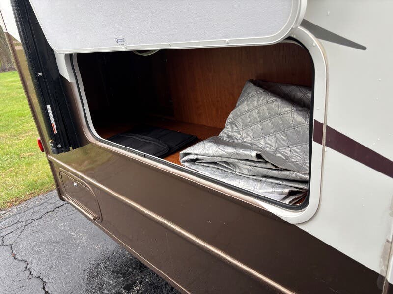 Features Include: Heated Power Mirrors, High Gloss Gel-Coat, Running Boards, Fiberglass Roof, Rotocast Storage, Generator Prep, Arctic Package, Curved Arm Awning, Slide Awnings, Water Filtration, Outside Shower, 13.5 Ducted A/C, Cab Privacy Curtain, Soft-Touch Ceilings, Night Shades, Fantastic Fan, Entertainment System, Premium Sound System, Raised Panel Doors, Sink Cover, Range Cover, Convection Microwave, Bath Power Vent, Porcelain Toilet