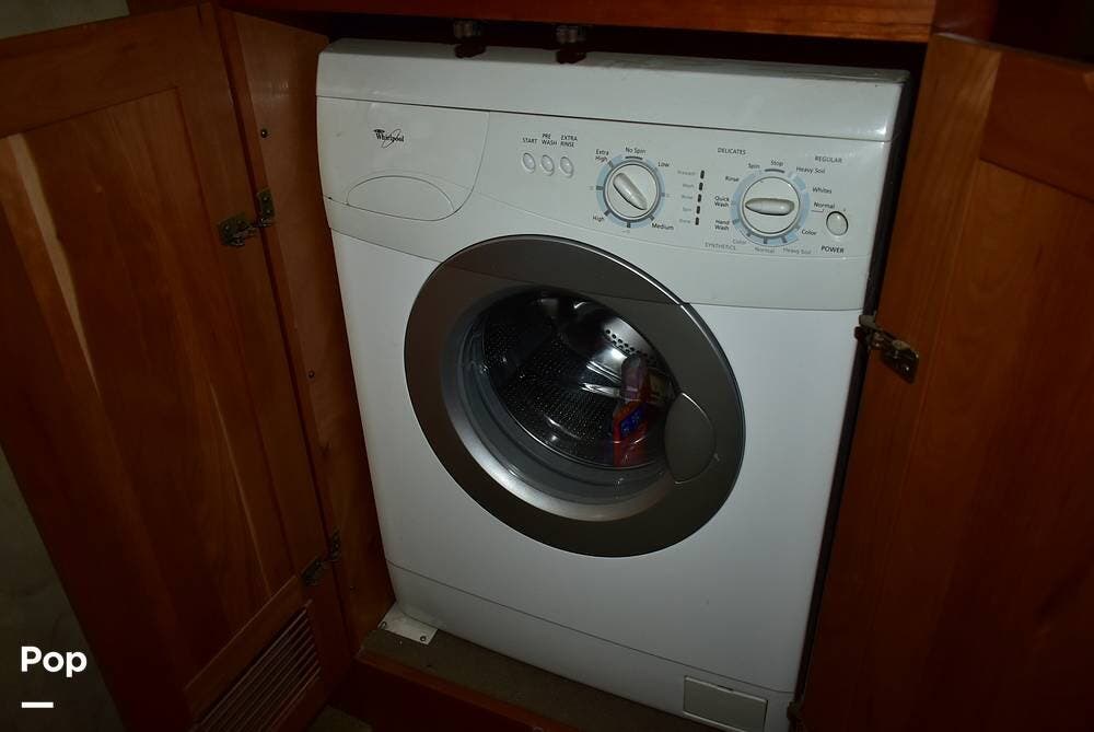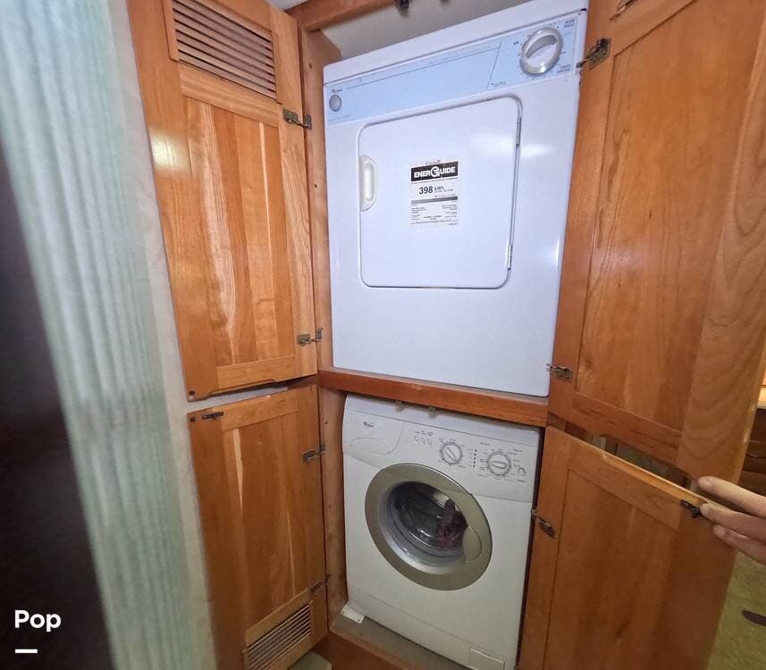 The master bedroom features a king-size bed, ample closet space, and a washer/dryer combo in the spacious rear bath with a separate shower.