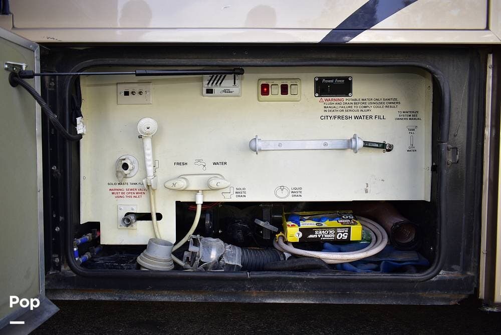 This 42-foot Class A diesel pusher, built on a robust Roadmaster chassis and powered by a 425 HP Cummins ISL engine, offers a smooth ride and plenty of towing capacity.