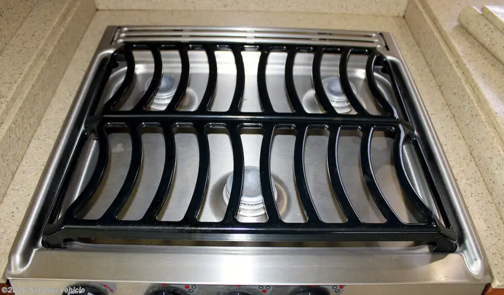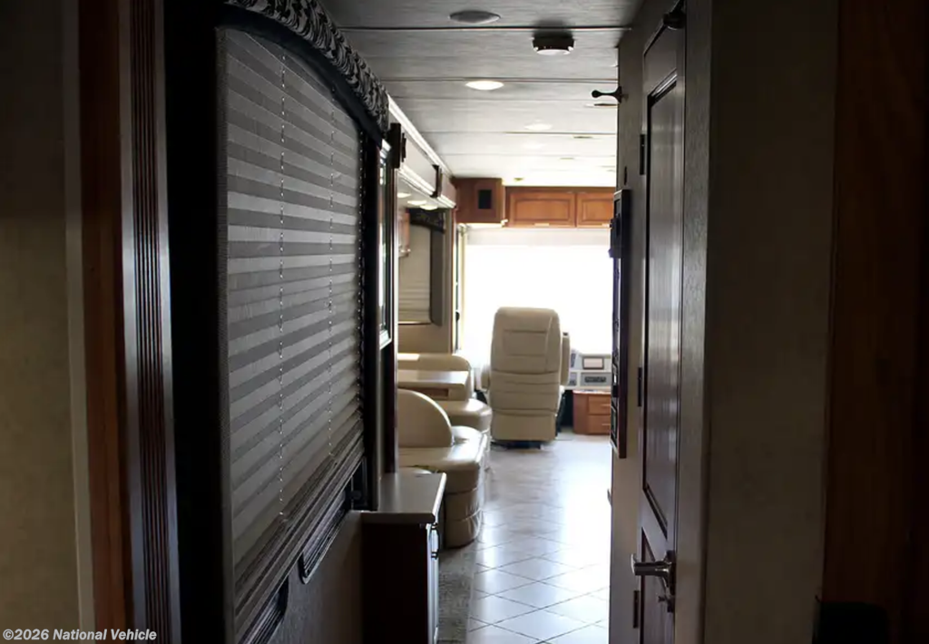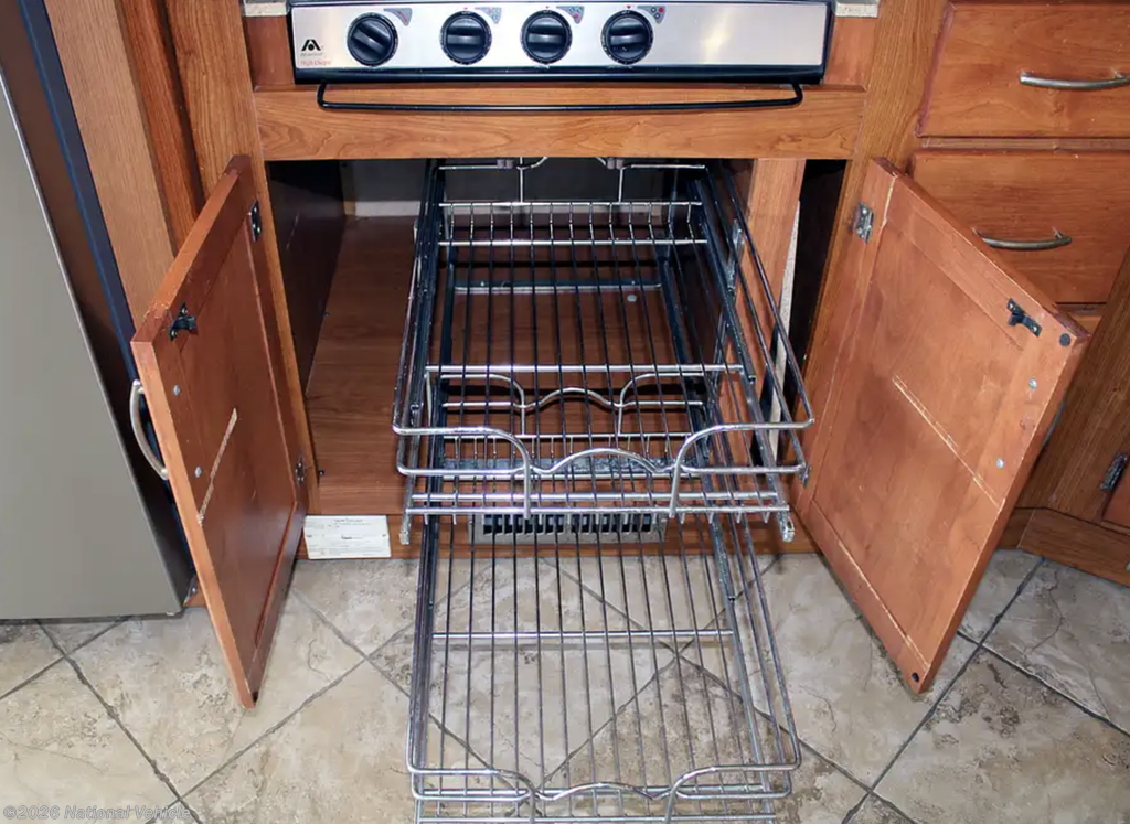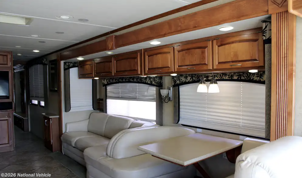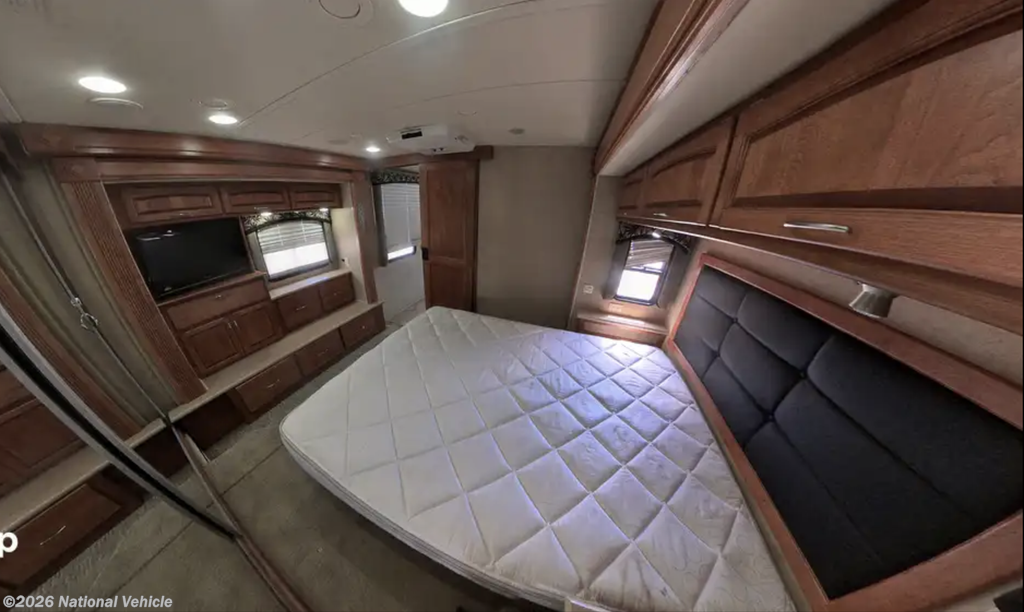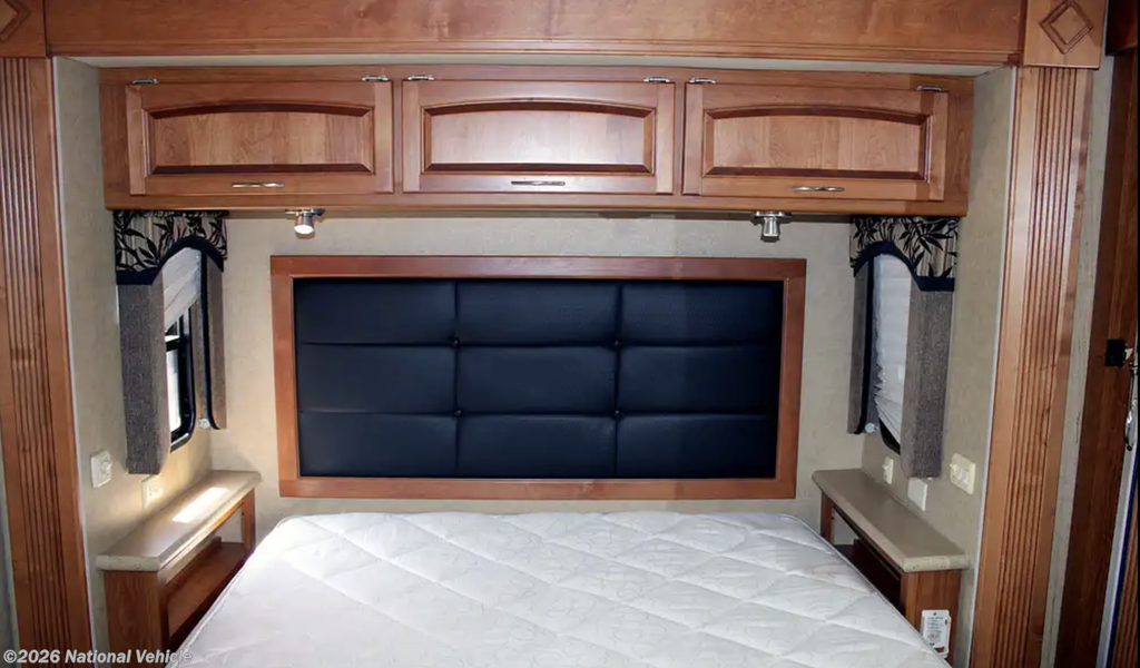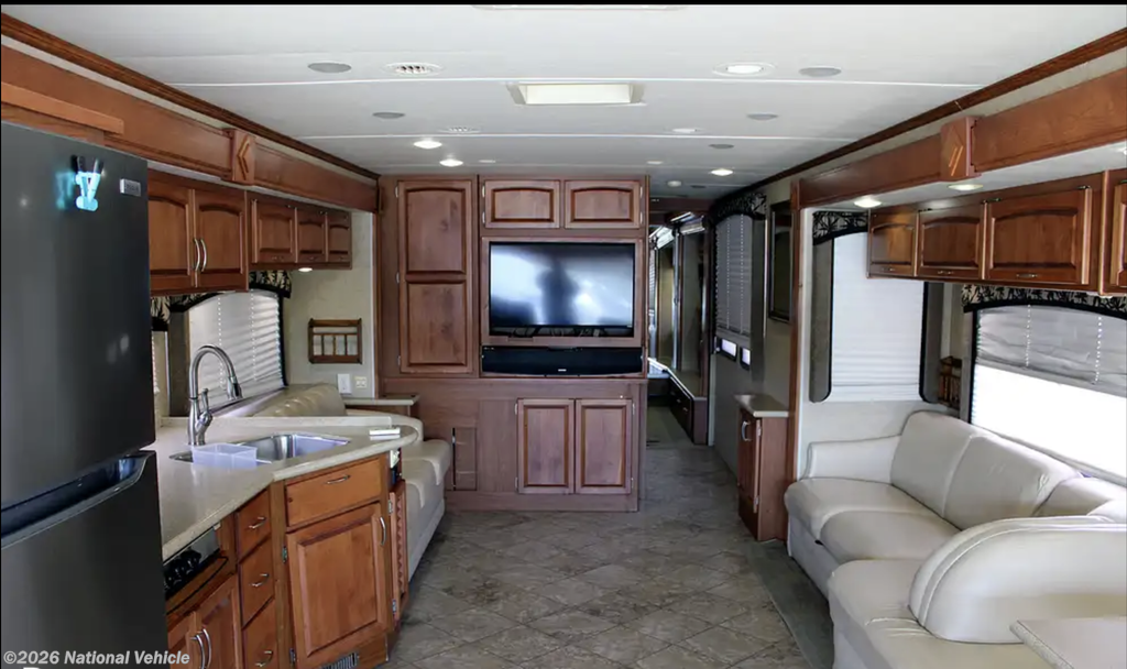 From the moment you enter, the Knight impresses with its residential-style layout, quad slide-outs, and rich oak cabinetry, creating an expansive, refined interior that feels more like a high-end condo than a motorhome.