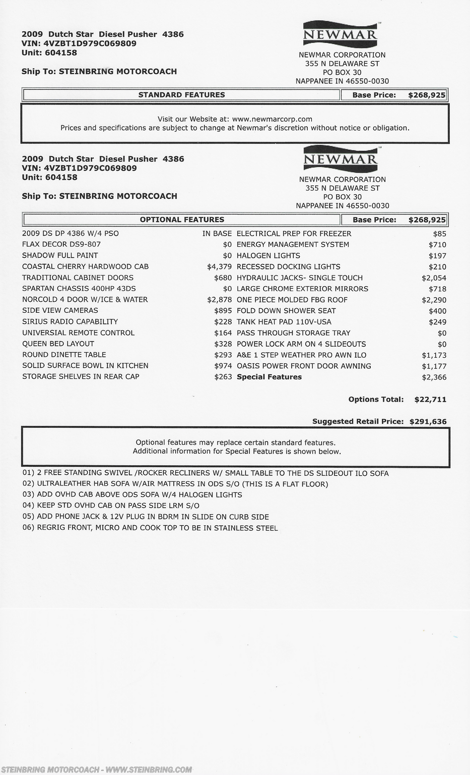 Request More Info on this 2009 Newmar Dutch Star 4386 Offered for sale by Steinbring Motorcoach