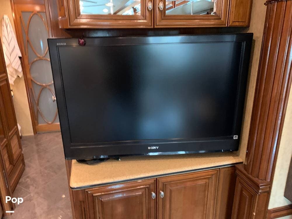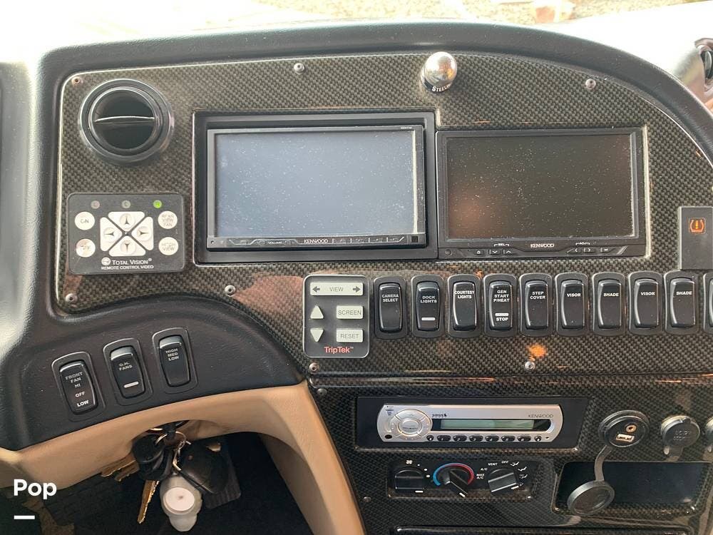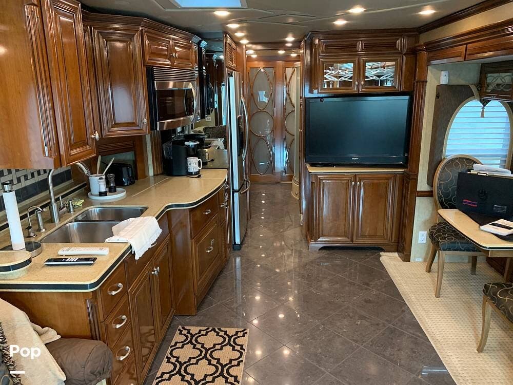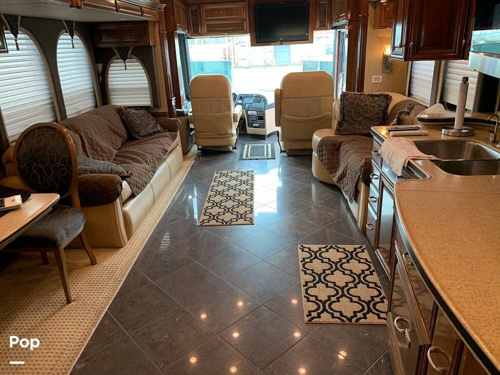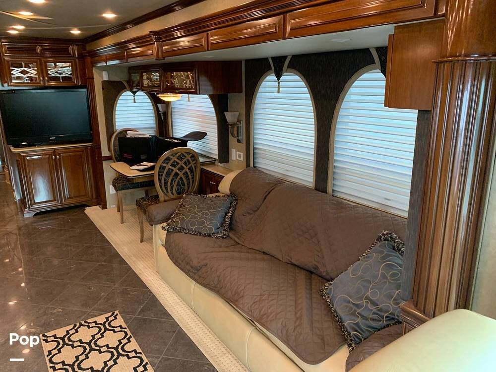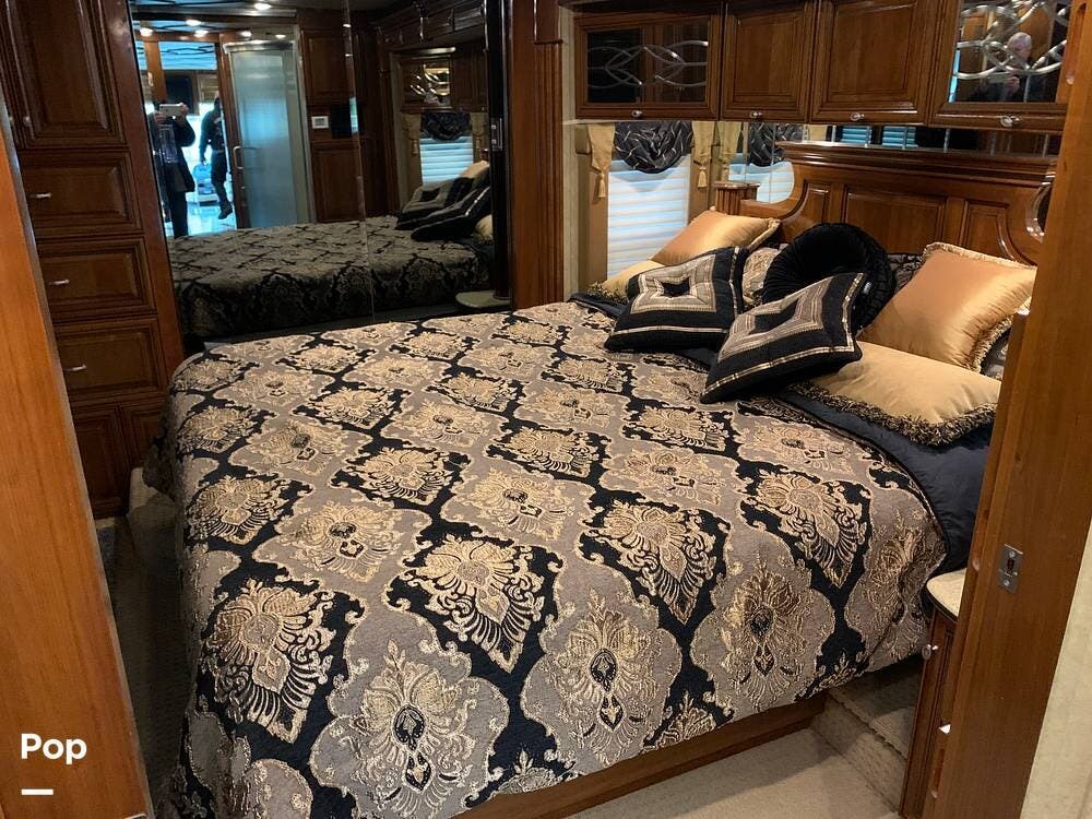 It features a powerful Cummins ISX 650 HP engine, four slide-outs, and residential amenities such as a dishwasher, a full-size refrigerator/freezer, a washer/dryer, a central vacuum, and multiple TVs.