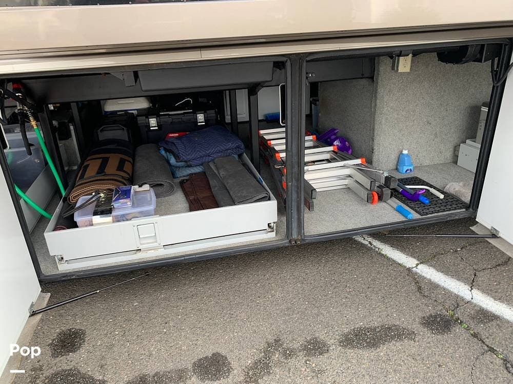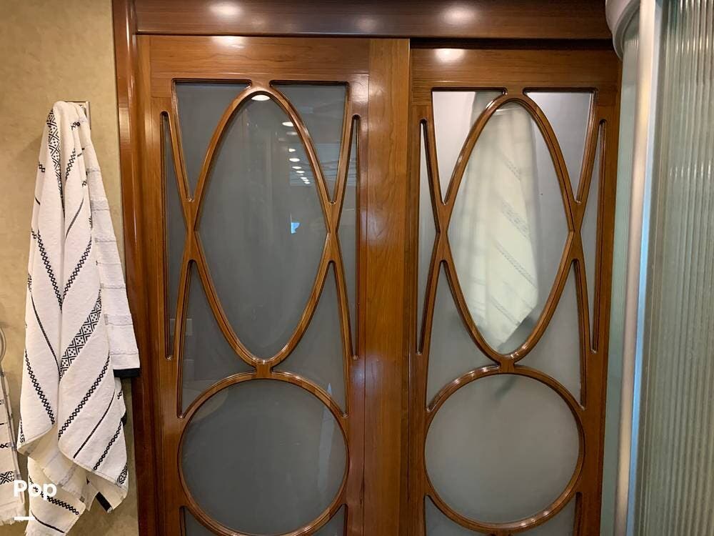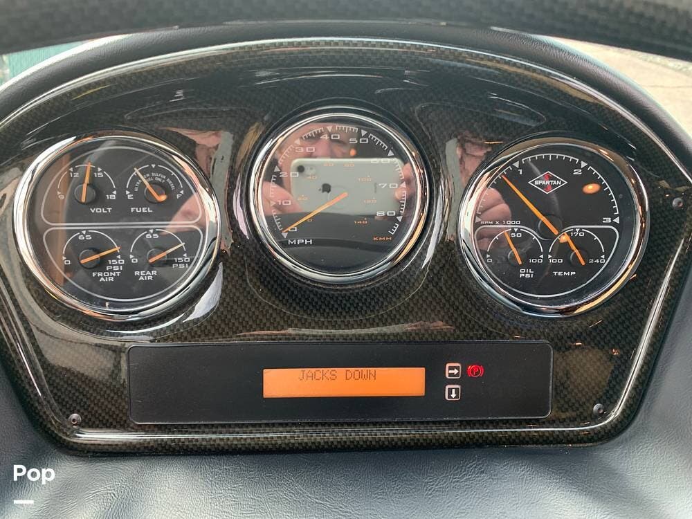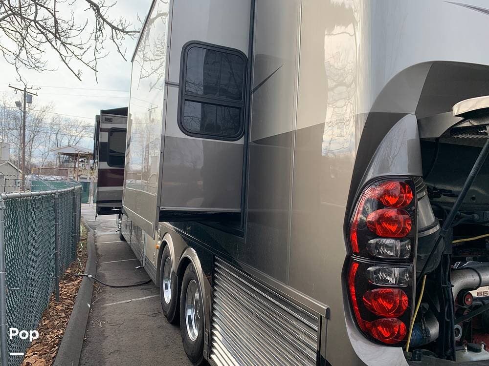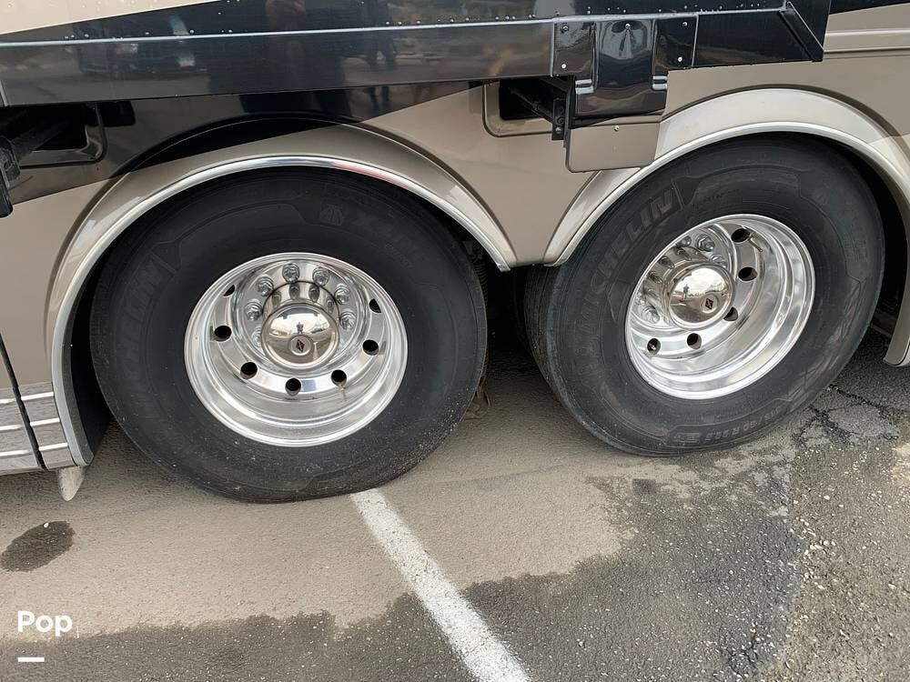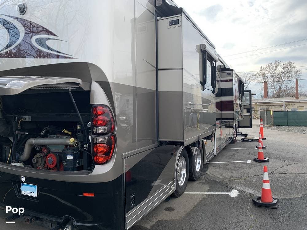 It features a powerful Cummins ISX 650 HP engine, four slide-outs, and residential amenities such as a dishwasher, a full-size refrigerator/freezer, a washer/dryer, a central vacuum, and multiple TVs.