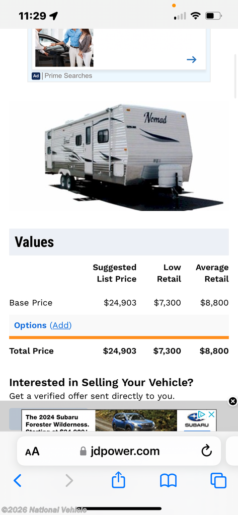 Request More Info on this 2009 Skyline Nomad 297 Offered for sale by National Vehicle