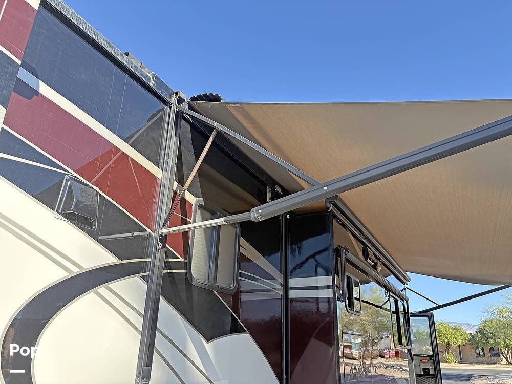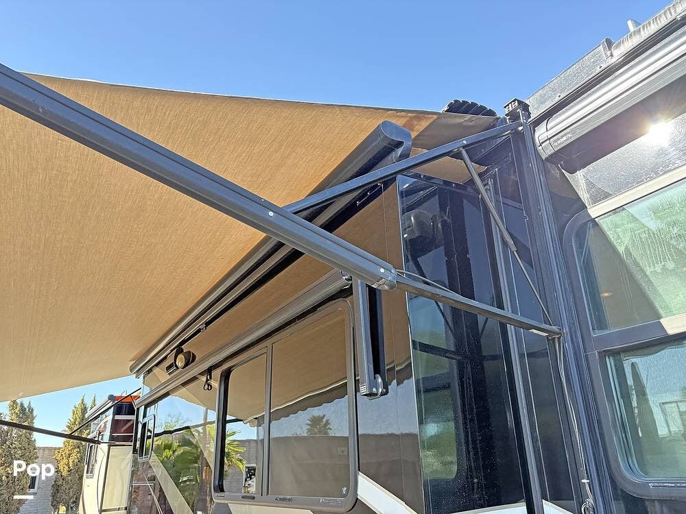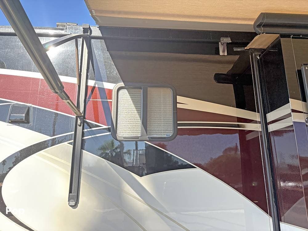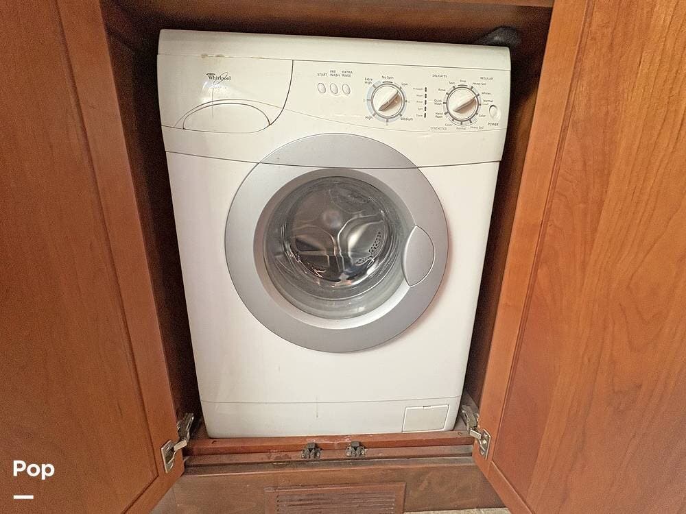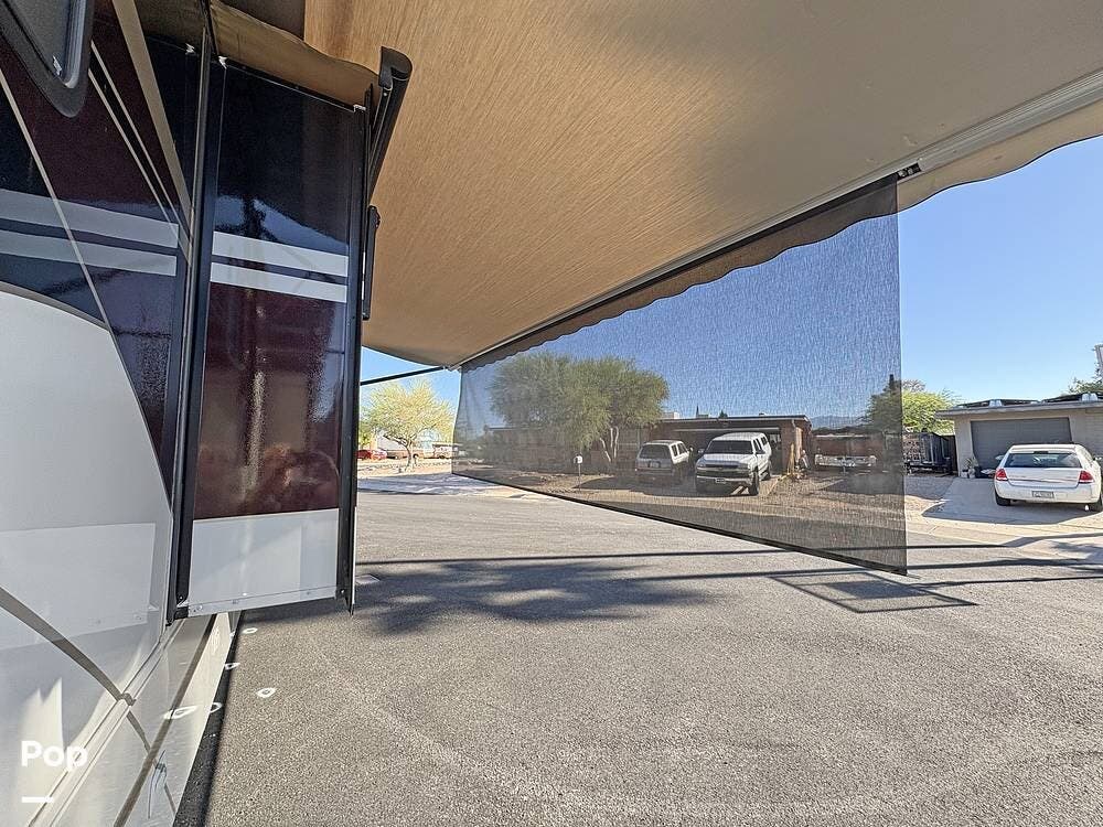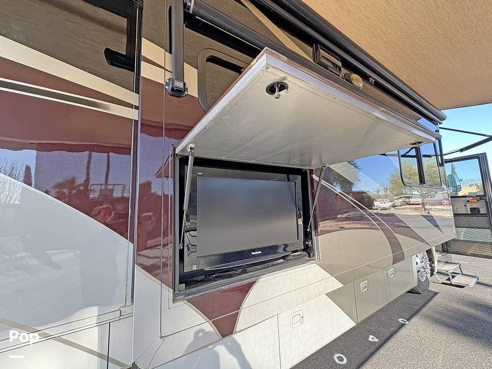 On the outside, the wide awning also features a retractable sun shade--so much the better for watching the game on the outdoor TV. With even more external storage, city water hookups, and a tow hitch, there's pretty much nothing this RV can't do.