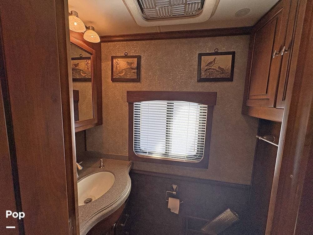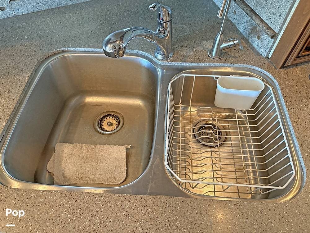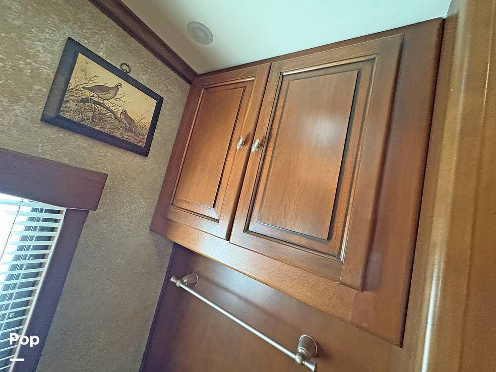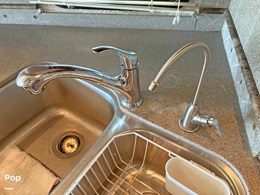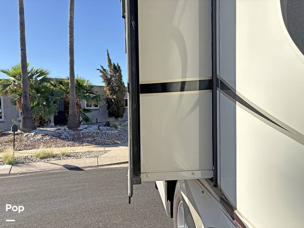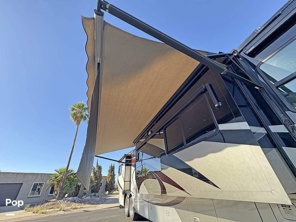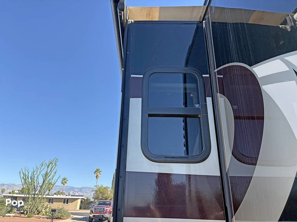 On the outside, the wide awning also features a retractable sun shade--so much the better for watching the game on the outdoor TV. With even more external storage, city water hookups, and a tow hitch, there's pretty much nothing this RV can't do.