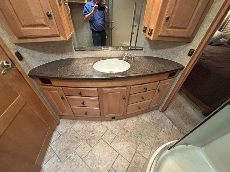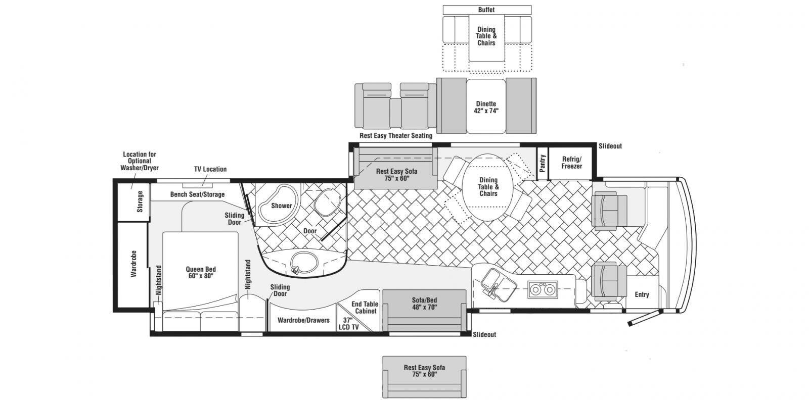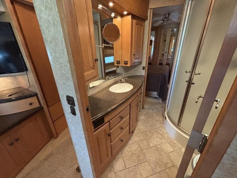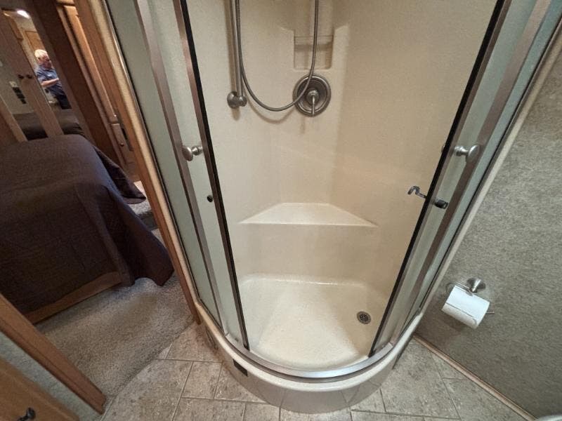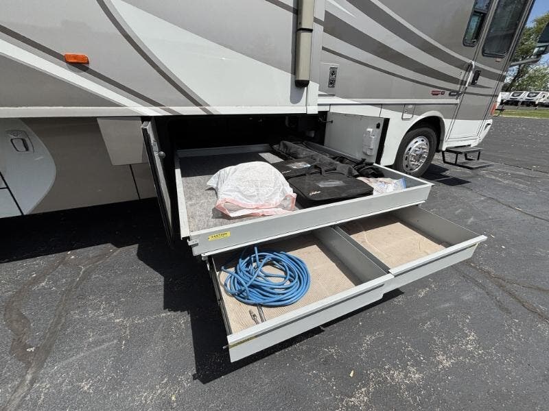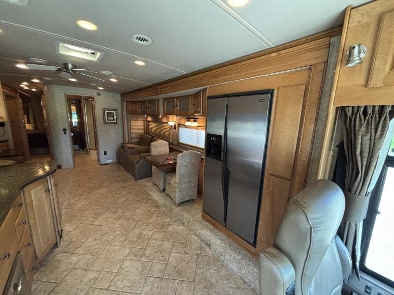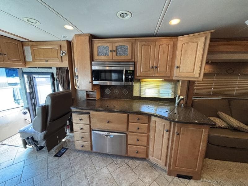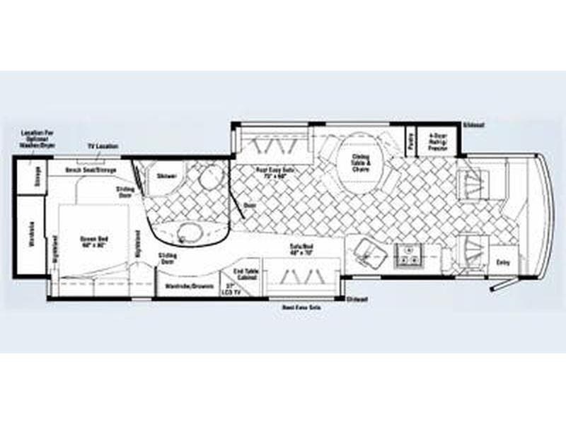 Features Include: Full-Body Paint, 425 HP, 160-Amp Alternator, Michelin Tires, Air Horn, Full-Width Mud Guard, Cab Features, Power Sunvisors, Passenger Footrest, Defroster Fans, AM FM CD Weather, Remotes, Touchpad Shifter, Cruise Control, Porch Light, KeyOne Lock System, Power Stepwell Cover, Carpeted, Ceramic Tile Floors, Dual-Glazed Windows, Entertainment Center, Overhead Cabinets, Pantry, Galley Mini Blinds, Designer Backsplash, Stainless Steel Sink, Corian Sink Covers, Recessed Cooktop, Corian Cover, Amplified TV Antenna, LCD TV, CD DVD Receiver, AM FM CD Remote, TV-Jack Sleeping, Overbed Storage, Reading Lights, Nightstands, 26-inch LCD TV, Cedar-Lined Hamper, Drawers, Wardrobe, Ceiling Fan, Washer Dryer Prep, Bathroom, Medicine Cabinet, Linen Storage, Flexible Showerhead, 30-Gal LP Tank, 10-Gal Hot Water, Aluminum Framework, Pass-Through Storage, Storage Containers