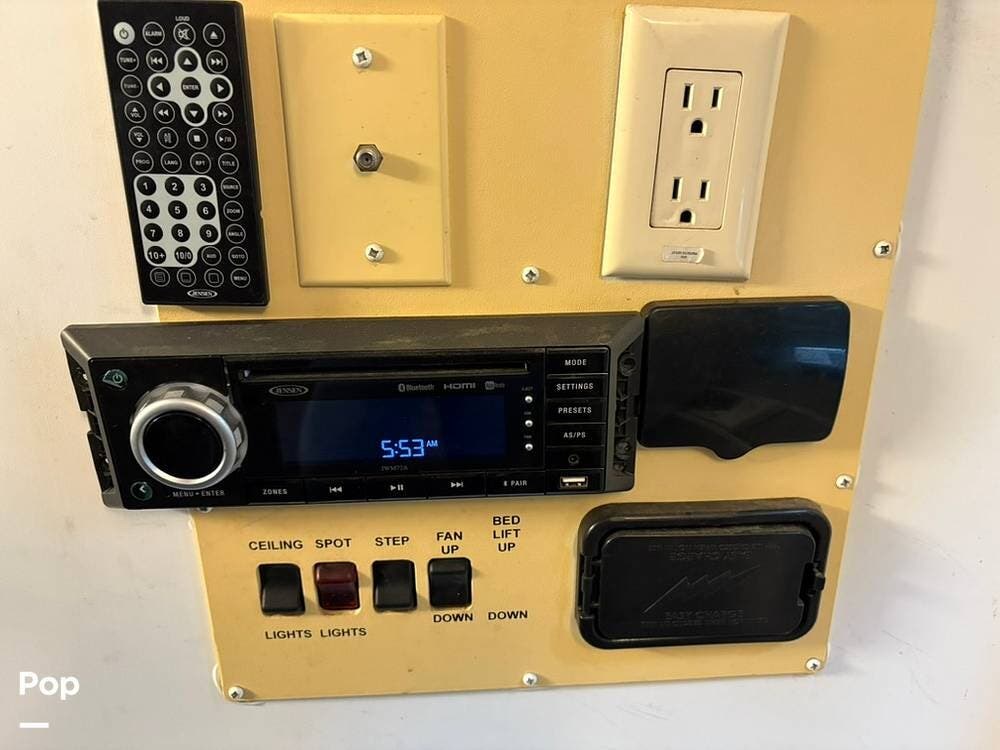Additional sleeping includes a bunk above the garage area and the convertible sofa, handy for kids or crew on group trips.