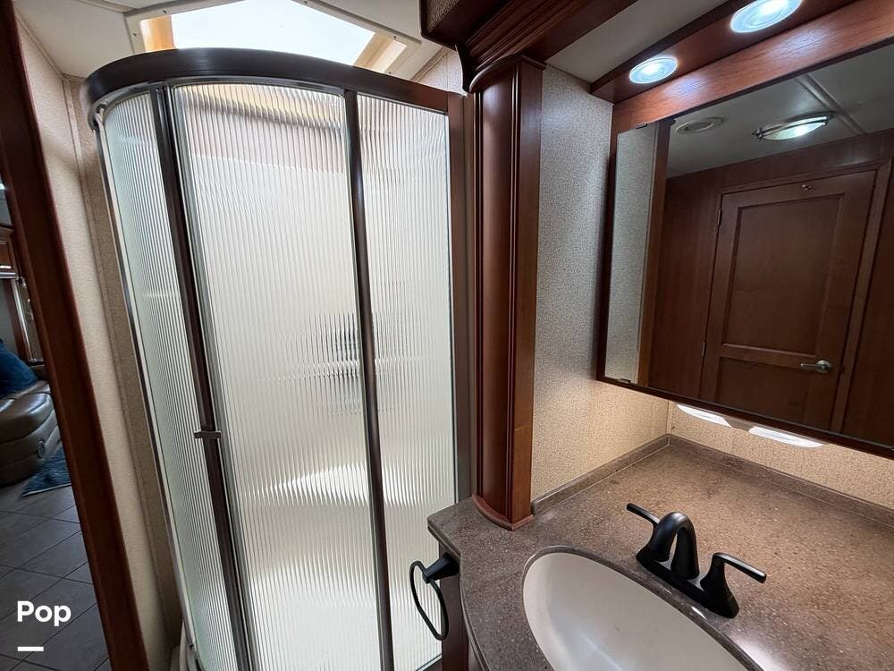 The DAMON TUSCANY is equipped with many luxury features, including an elegant master bathroom with a corner shower, and a separate area with a privacy door for the toilet.