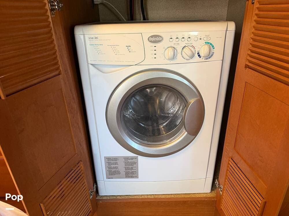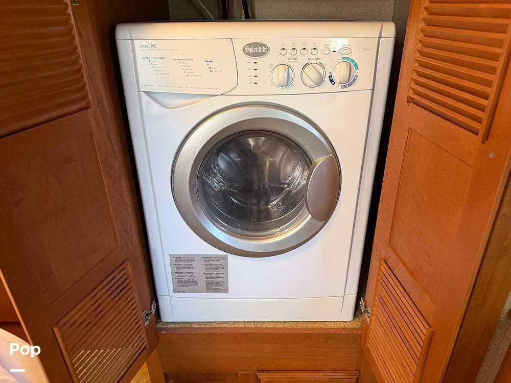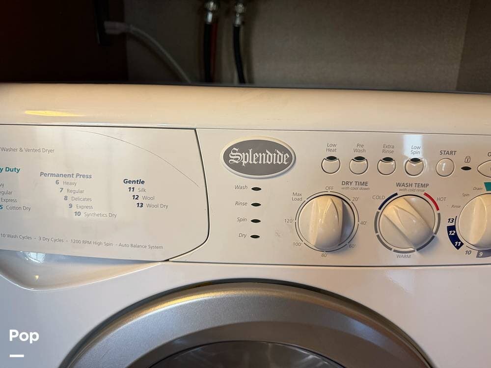 Inside, the opposing slides in the living and kitchen areas create a very large and open area. The slide in the master bedroom provides for a very spacious and comfortable room. The master bedroom has a queen-size mattress, abundant closets and storage places, and a flat-screen TV. This TUSCANY also has a SPLENDIDE washer/dryer Combo in a a bedroom cabinet.