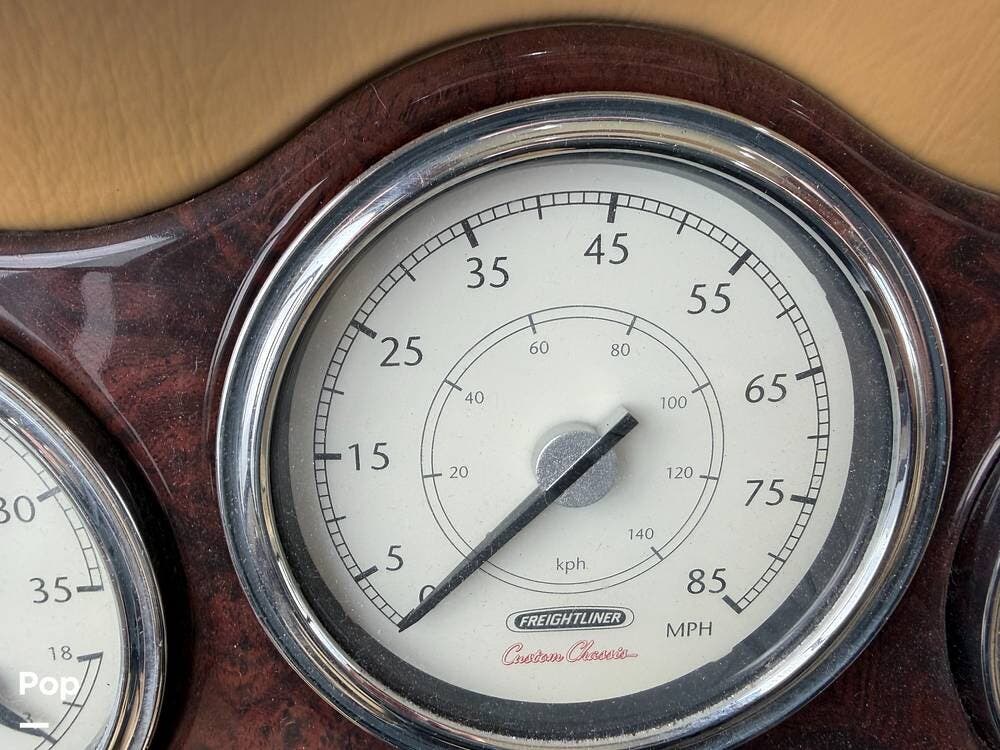 Beneath its immaculate full-body paint, this coach sits proudly on a Freightliner Raised Rail Chassis, powered by a pre-DEF 8.3L Cummins engine delivering 360hp through an Allison 3000-series 6-speed automatic transmission. With air-ride suspension and hydraulic auto-leveling jacks, every mile feels smooth and effortless.