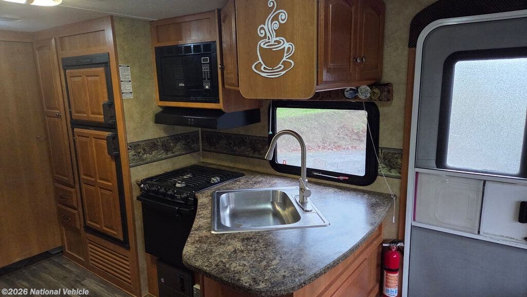 Step inside and enjoy a bright, open living space featuring a slide-out that expands the main area for added comfort. The rear living layout creates generous room for relaxing with family and friends, complete with cozy seating and an entertainment center for movie nights or game day. Large windows fill the interior with natural light and bring the beauty of your surroundings right inside.