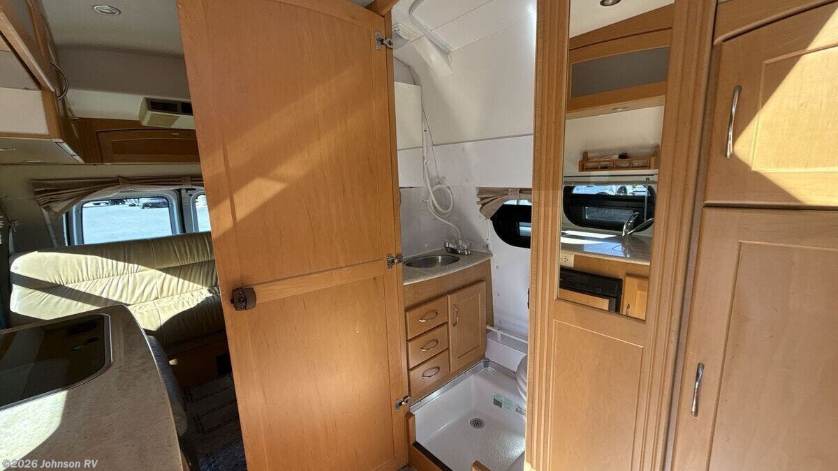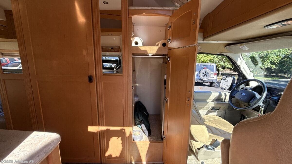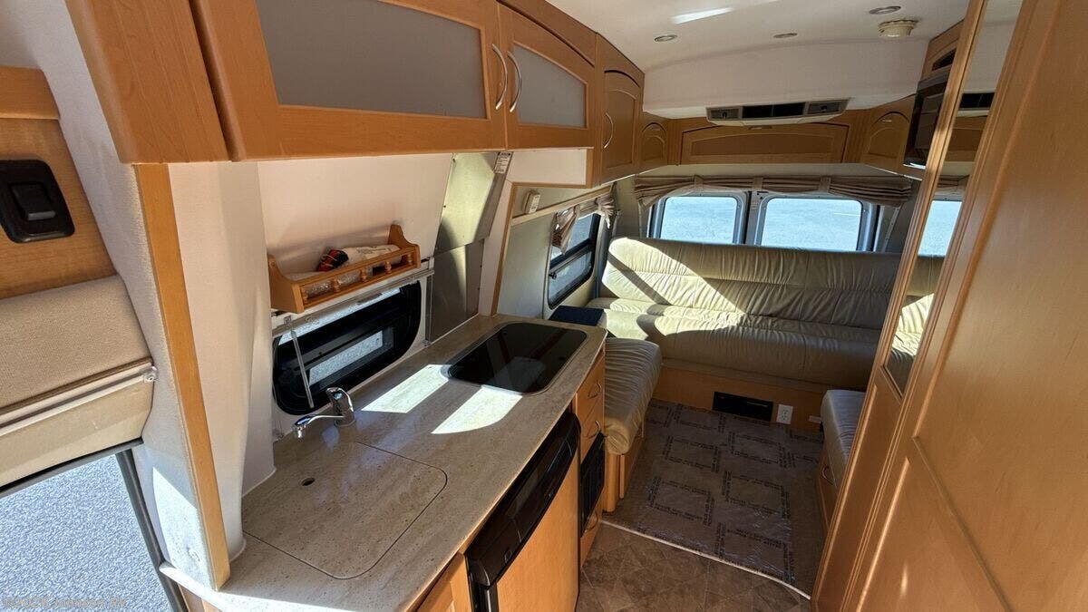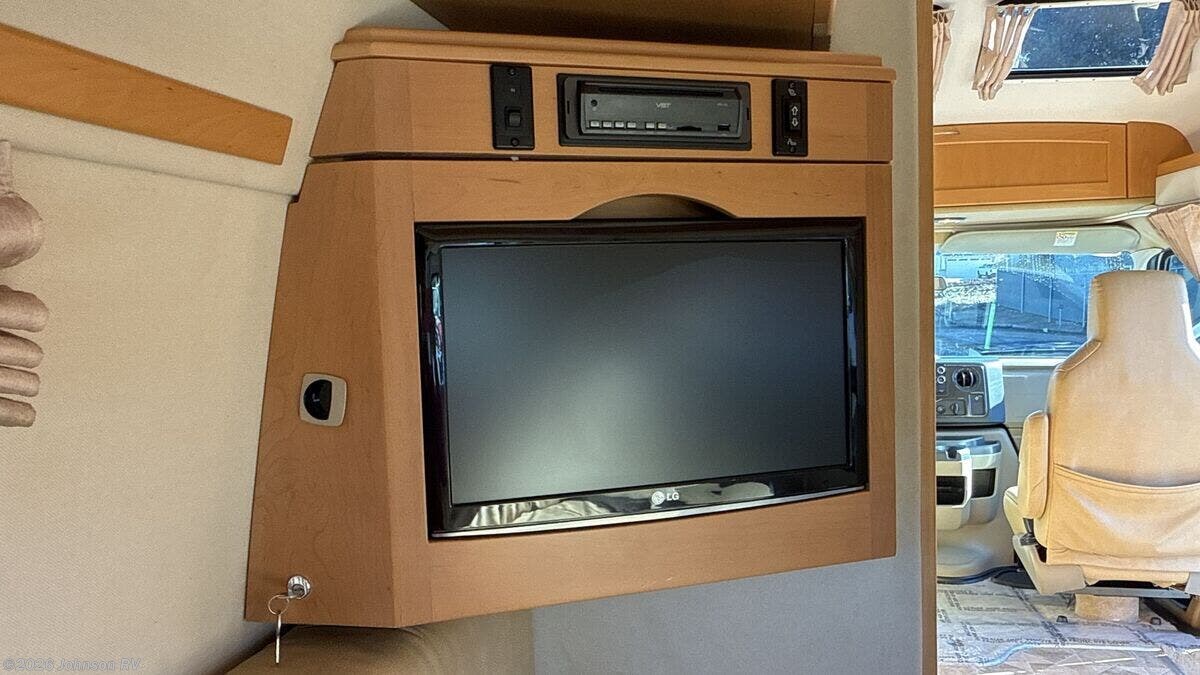 The 2010 Pleasure-Way Excel TS is a versatile and compact Class B RV, perfect for those seeking adventure on the open road. Built on a sturdy Ford E350 chassis with a 138-inch wheelbase, this vehicle combines the reliability of a Triton 5.4L V8 gas engine with 255 horsepower and 350 ft-lb of torque. The 4-speed automatic transmission ensures smooth driving, while the Ride Rite Air Helper Springs and RCS Roll Stability Control provide enhanced stability and comfort. Safety and convenience are prioritized with features such as 4-wheel ABS disc brakes, a tire pressure monitoring system, and a 3500-pound tow capacity. The aluminum wheels and steel wheel spare tire add to the vehicle's durability, while the LT 245/75/R16 all-season tires ensure a reliable grip on various terrains. Cab features include: - Remote keyless entry - Power door locks and windows - Power side-mirrors - Swivel cab seats - Cab air conditioning - Cruise control - Driver and passenger airbags The living space inside the Pleasure-Way Excel TS is designed for comfort and functionality. An 11-foot Fiamma awning provides shade and shelter outside, while LED interior lights create a warm ambiance. The built-in TV cabinet and power rear sofa, upholstered in ultra-leather fabric, offer relaxation and entertainment options. The maple cabinetry adds a touch of elegance to the interior. Dining amenities include: - Corian countertops with a flip-up counter extension - Stainless steel sink - 3-way 3.8 cubic foot Dometic refrigerator - 2-burner cooktop - Microwave oven For electronics, the RV is equipped with a systems center, LP CO and smoke detectors, cable TV hookup, Winegard directional TV antenna, and an antenna signal booster. Sleeping arrangements are made comfortable with a power rear sofa that converts into a bed with memory foam cushions, ensuring a restful night's sleep. The bathroom is well-appointed with: - A medicine cabinet - Vanity stainless steel sink - Linen storage - Shower - Thetford porcelain toilet Mechanical features include a slide-out coach battery, 8-gallon LP tank, 45-amp converter, Charge Wizard, generator prep, 11k Penguin roof AC, 16k furnace, 6-gallon hot water heater, and a water heater bypass. An outdoor shower adds to the convenience for those who enjoy outdoor activities. The coach build features pass-through rear storage and rear loose lay carpet, providing ample space for storing gear and personal items. Overall, the 2010 Pleasure-Way Excel TS is a well-equipped and comfortable RV, ideal for both short getaways and extended road trips. With its combination of practicality and luxury, it offers a delightful travel experience for adventurers and explorers alike. ???