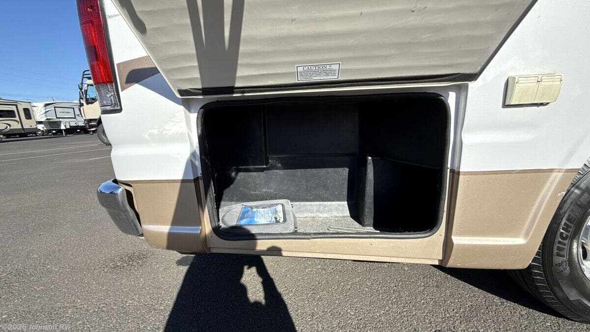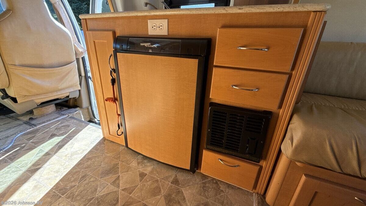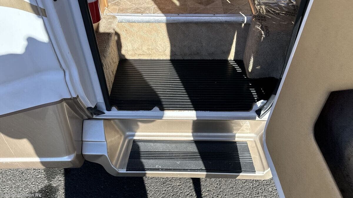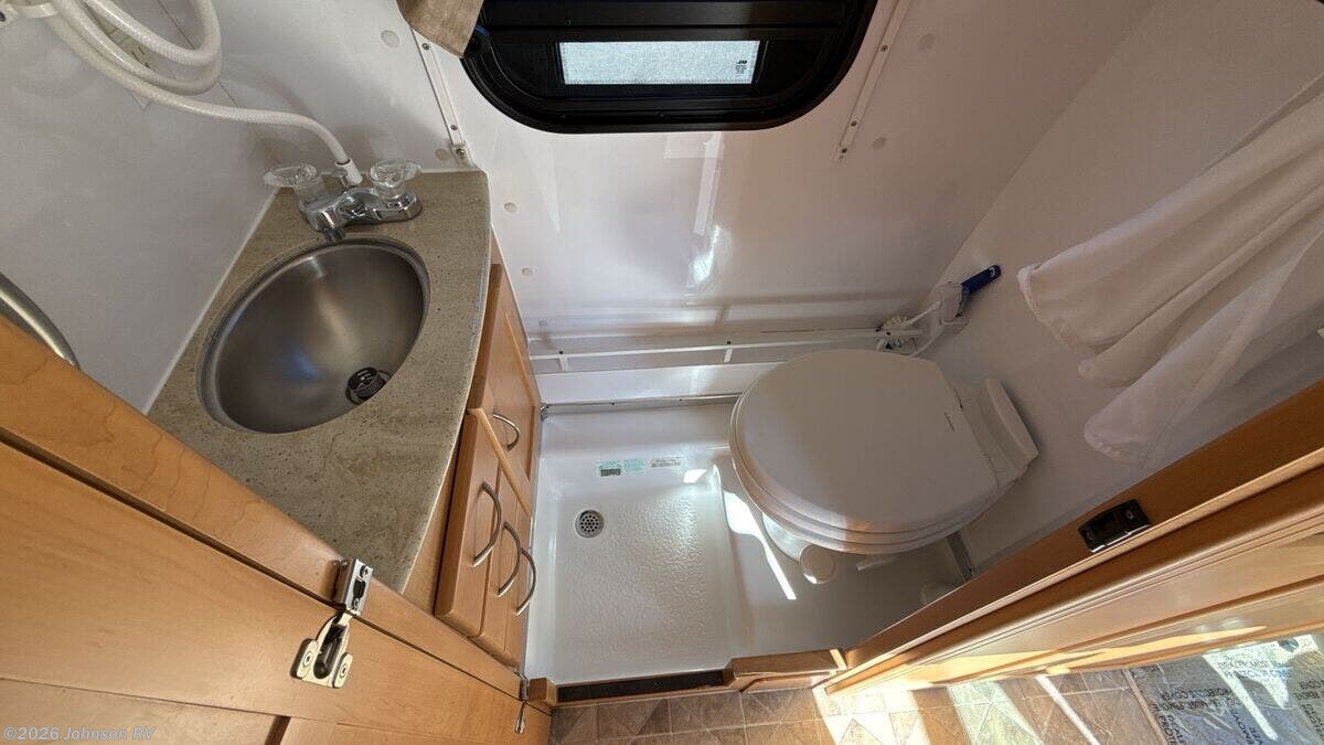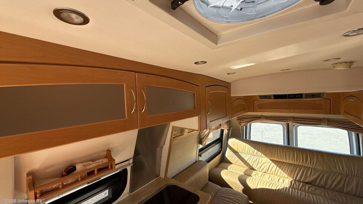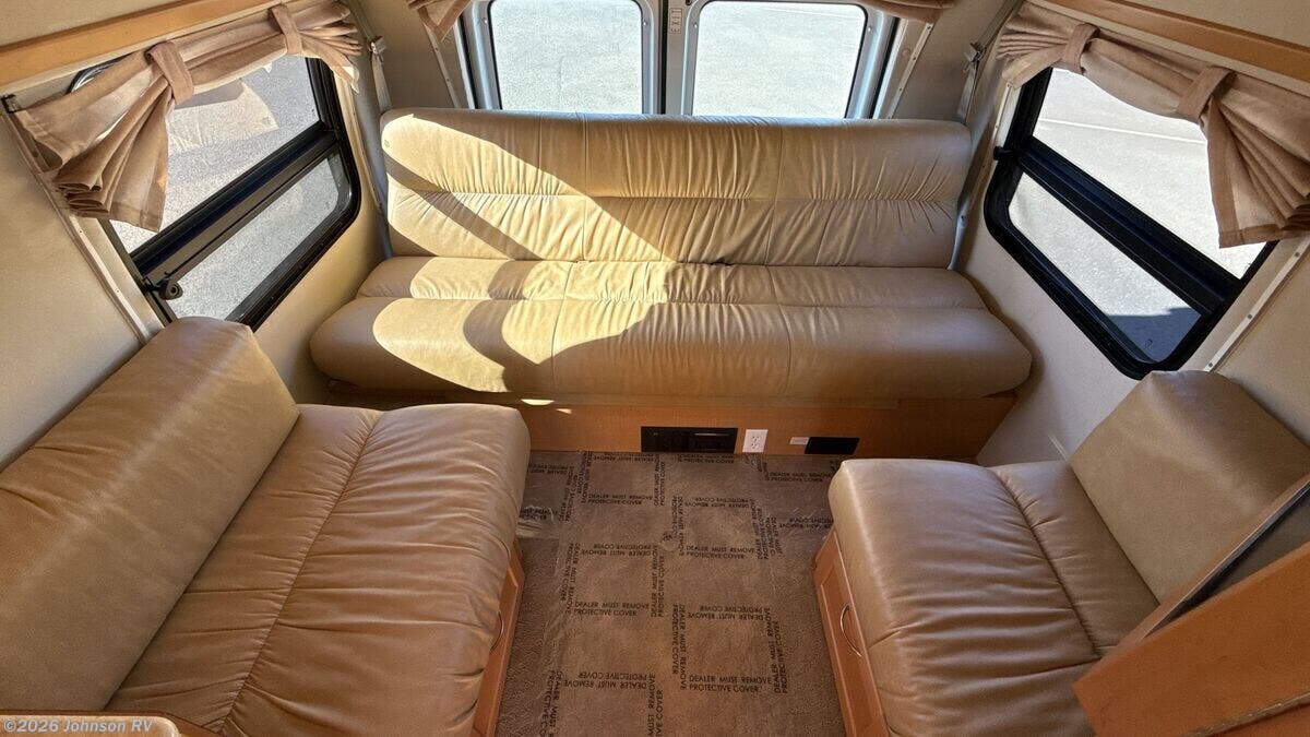 Features Include: 138-inch Wheelbase, Aluminum Wheels, Remote Keyless Entry, Power Door Locks, Power Windows, Power Side-Mirrors, Swivel Cab Seats, Cab AC, Cruise Control, Living Spaces, LED Interior Lights, Built-in TV Cabinet, Power Rear Sofa, Ultra Leather Fabric, Corian Countertops, Stainless Steel Sink, 2-Burner Cooktop, Systems Center, Cable TV Hookup, Power Rear Sofa, Medicine Cabinet, Linen Storage, Shower, 8-Gal LP Tank, 45-Amp Converter, Charge Wizard, Generator Prep, 11k Penguin Roof AC, 16k Furnace, 6-Gal Hot Water, Water Heater Bypass