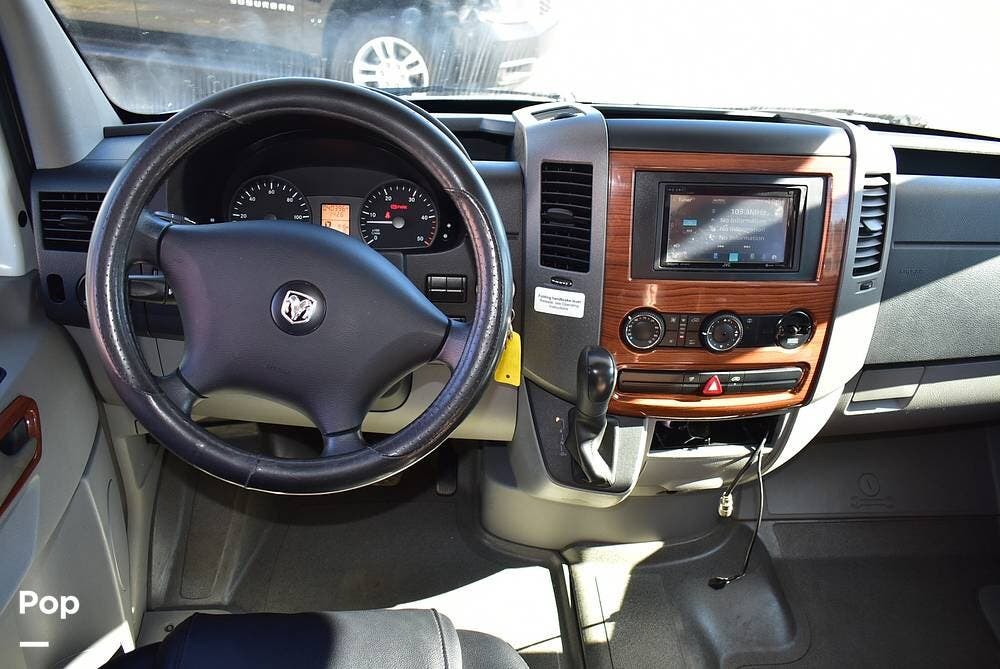 Additionally, the motorhome includes backup camera systems integrated into a touchscreen dashboard for safe and easy driving.