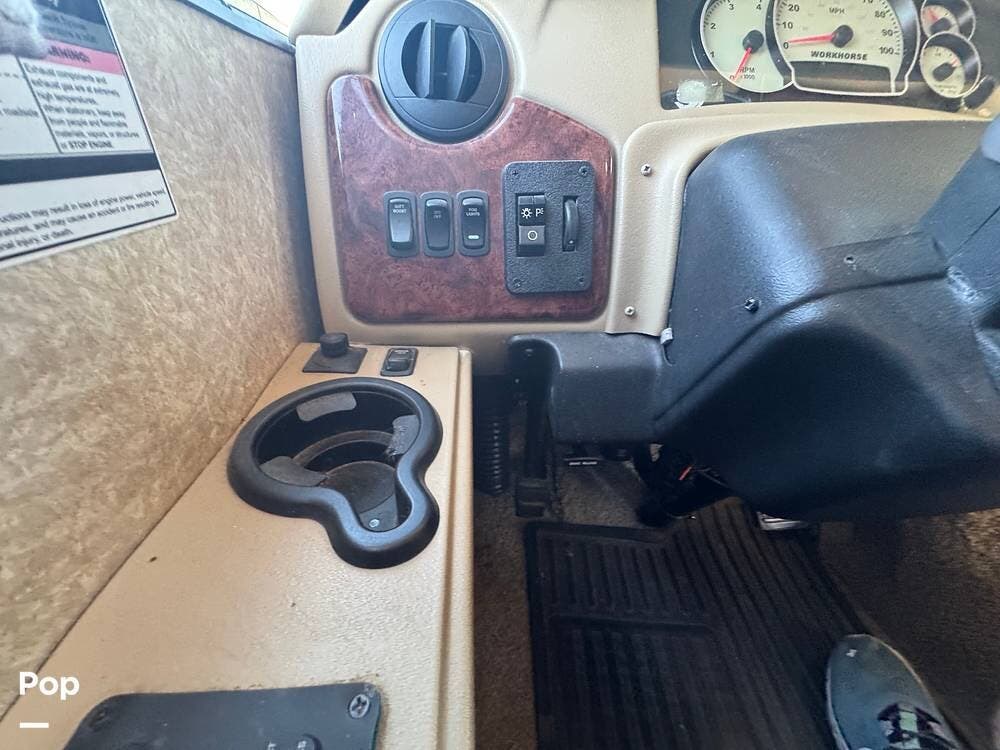 You'll hit the road in a diesel-powered Class A built on the Workhorse W‑Series chassis, with a 6.4 L V8 MaxxForce engine producing about 230 bhp, mated to an automatic transmission.