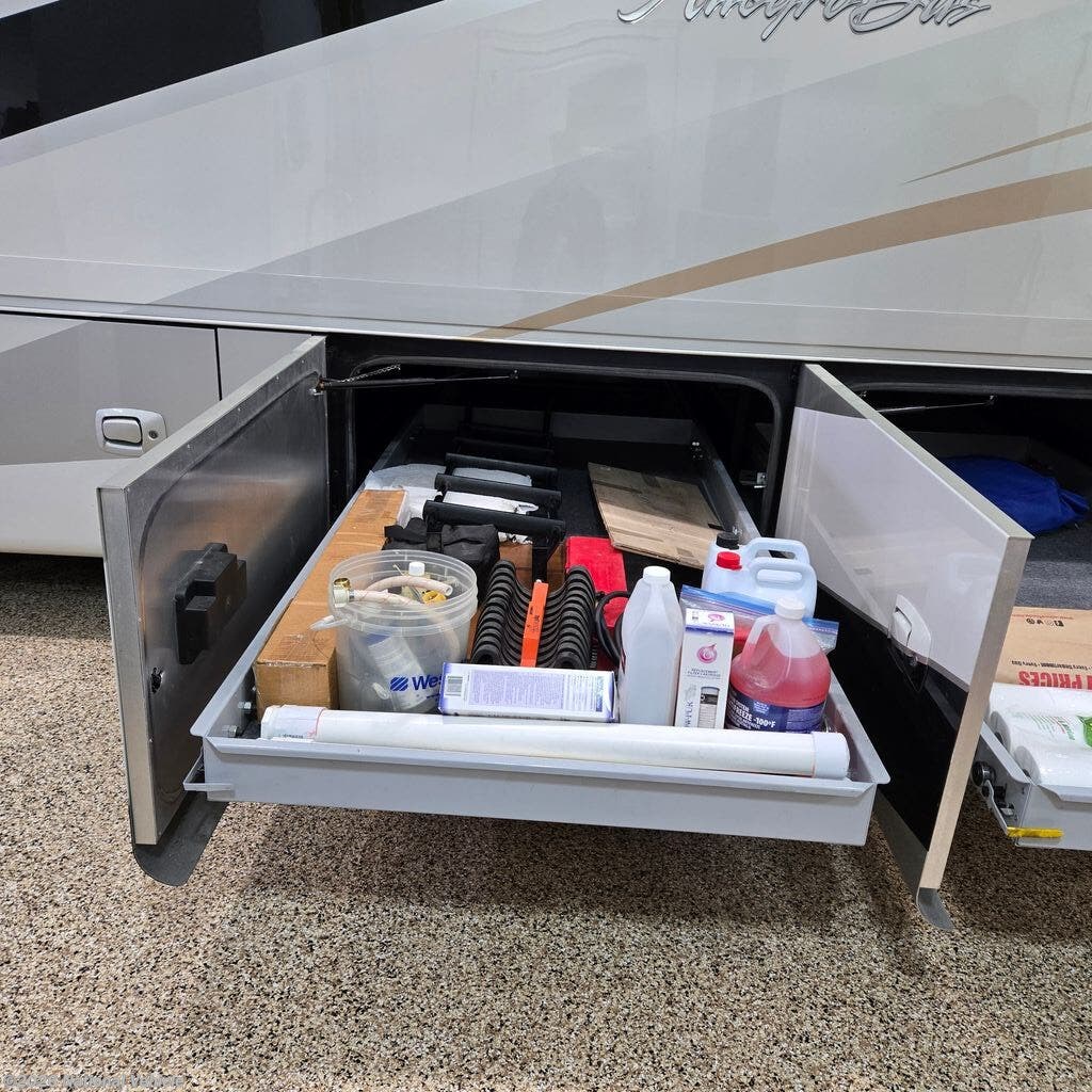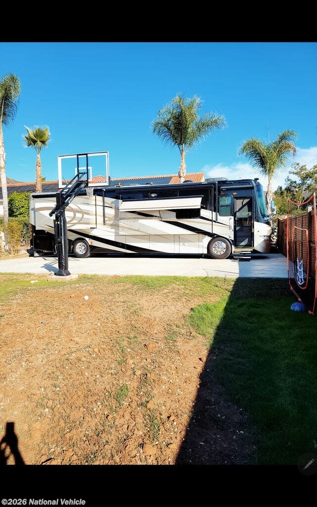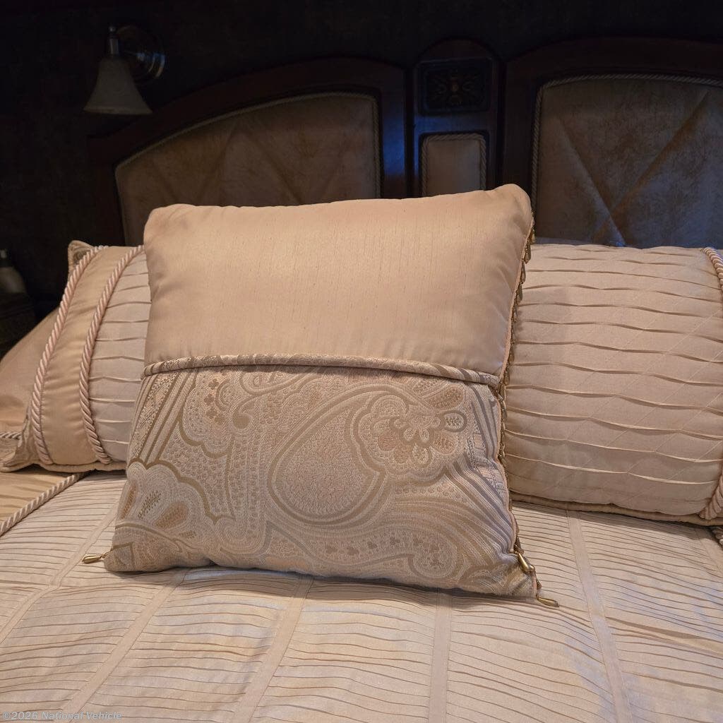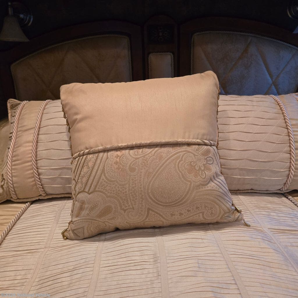 Comfort is top-tier with three A/C units with heat pumps and the highly desirable Aqua-Hot hydronic heating system, providing quiet, even heat and continuous hot water. Entertainment is fully covered with multiple TVs (living room, bedroom, overhead, and exterior), along with satellite, auto-seek antenna, and full audio system.