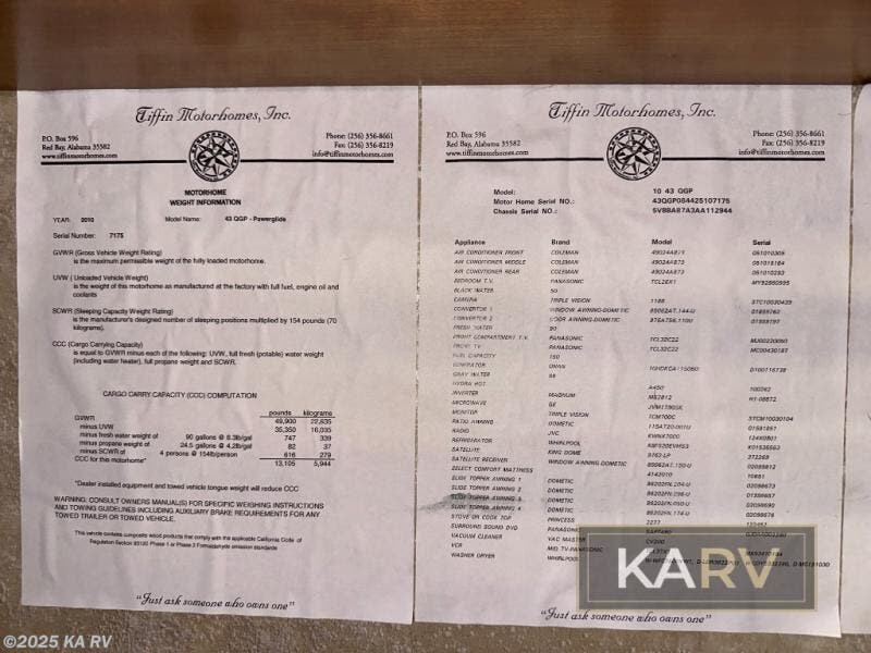 Request More Info on this 2010 Tiffin Allegro Bus 43 QGP Offered for sale by KA RV